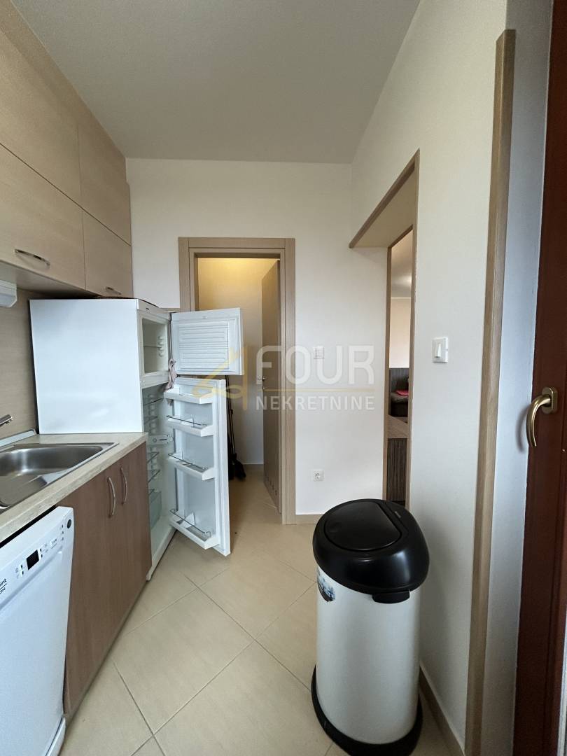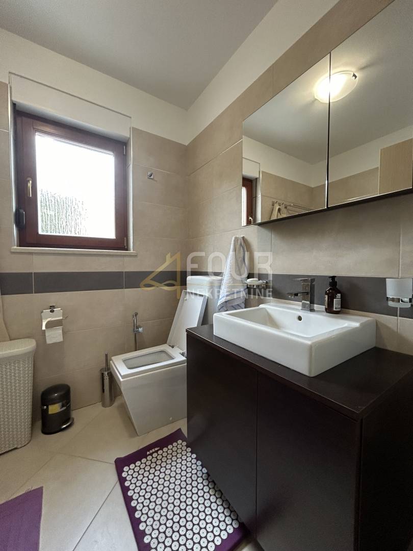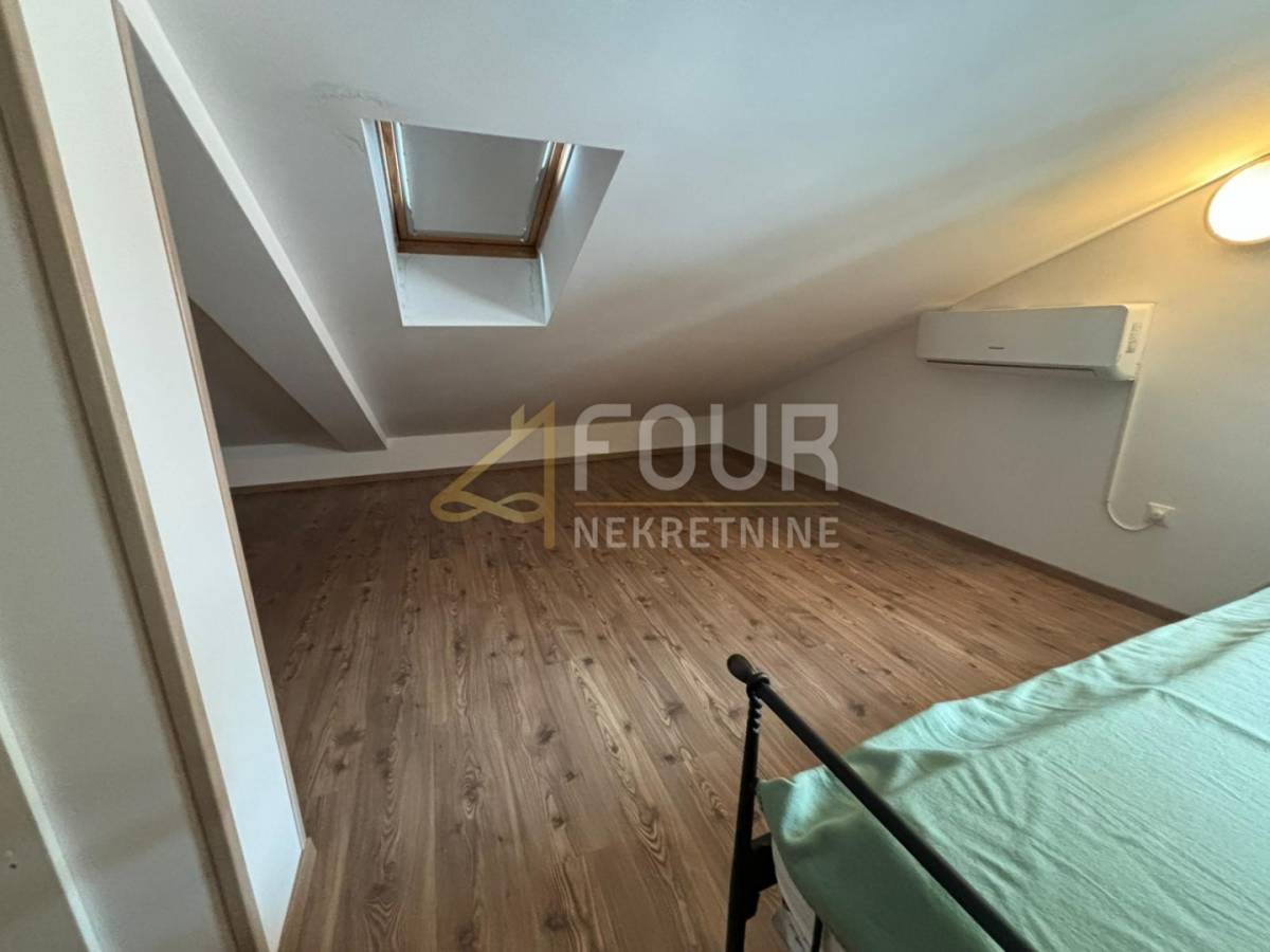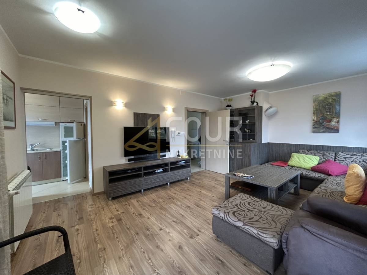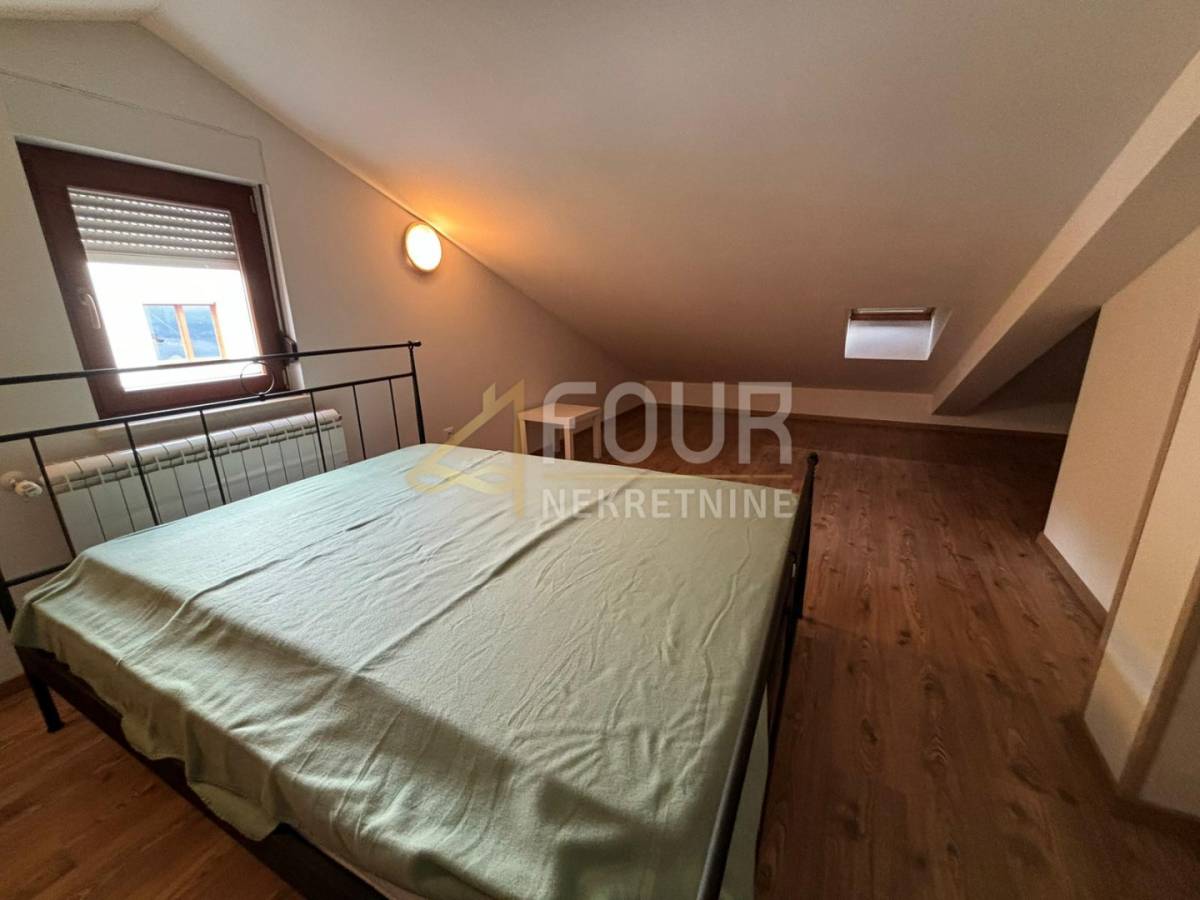 Stan se sastoji od ulaznog hodnika, tri sobe, dnevnog boravka, kuhinje, kupaonice, dodatne tuš kupaonice, izbe te lođe, s pripadajućim dijelovima balkonom i tavanom, čime ukupna površina iznosi 127,71 m2. Prostor je ugodan za boravak, potpuno namješten i spreman za useljenje, a dodatnu udobnost osiguravaju centralno grijanje i klima uređaj.