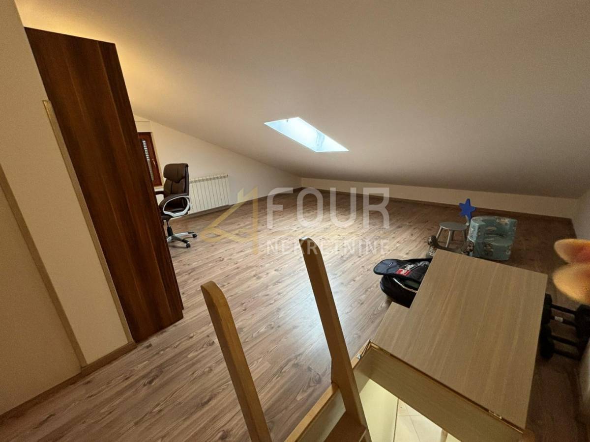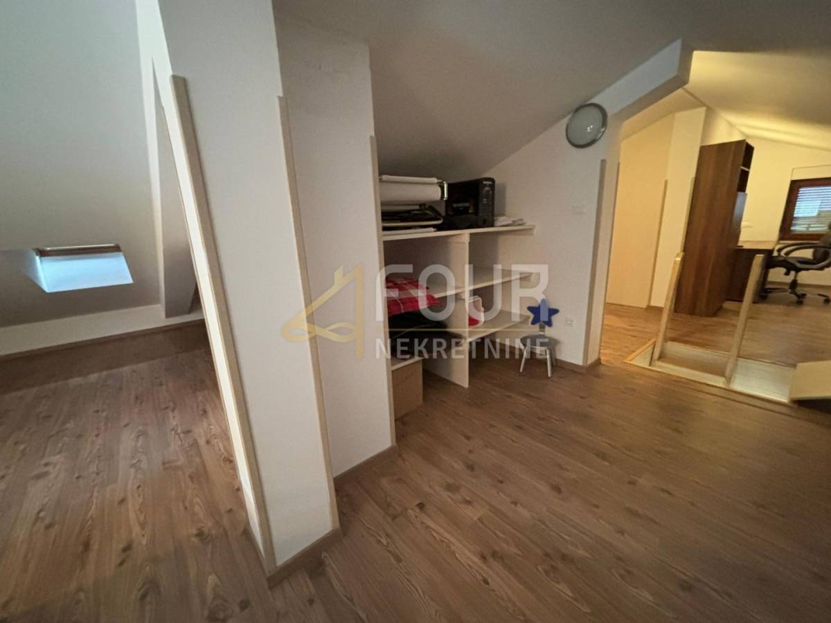 Na atraktivnoj lokaciji s ugodnim okruženjem, prodaje se prostran i funkcionalan stan ukupne površine 127,71 m2 koji se prostire na dvije etaže. Smješten na prvom katu stambene zgrade, ovaj stan u naravi funkcionira kao četverosoban s dnevnim boravkom, iako se u vlasničkom listu vodi kao trosoban s dnevnim boravkom. Posebnu vrijednost daje tavanski prostor koji je uređen i koristi se kao dodatna, četvrta soba.