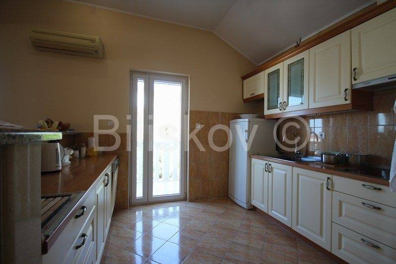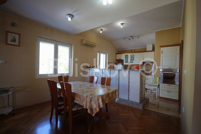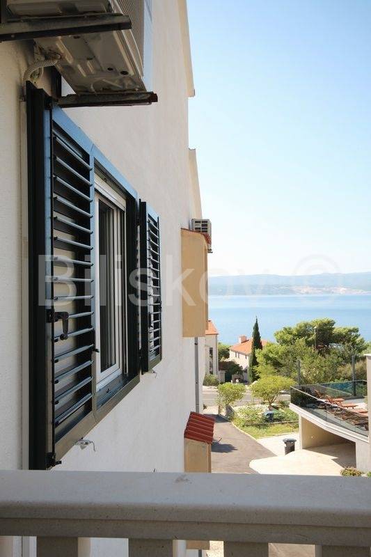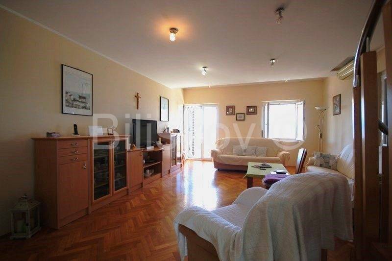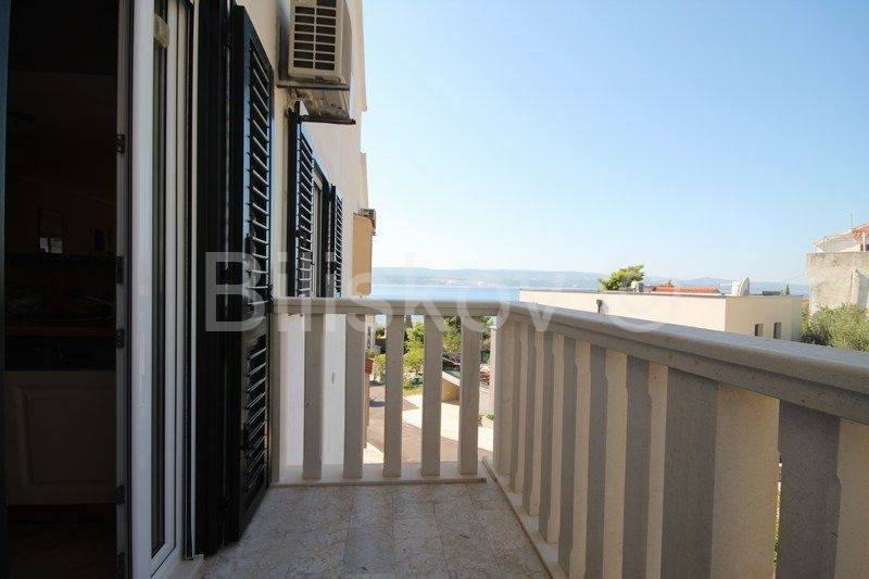 1.kat: trosoban komforan stan površine cca 139m2 koji ima 3 spavaće sobe, dnevni boravak s kuhinjom i blagavaonicom, WC i kupaonicu te prostranu lođu s pogledom na more.