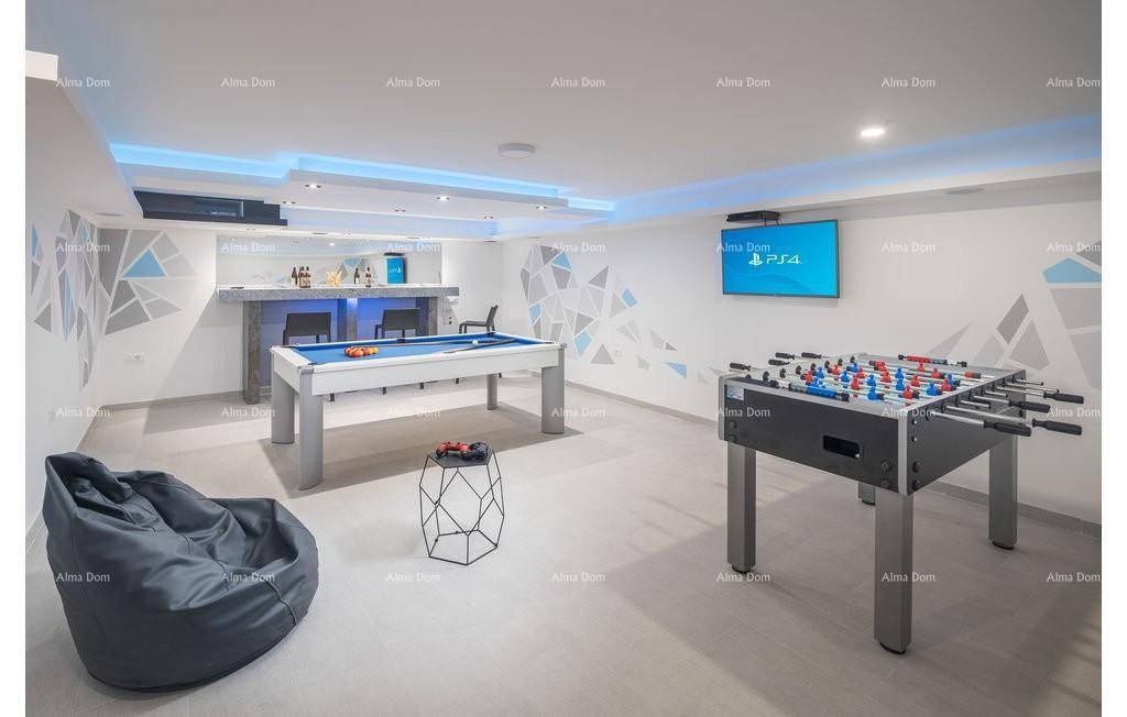 Kuća se sastoji od podruma gdje se nalaze sadržaji za djecu, biljar,stolni tenis i razne igre za zabavu.