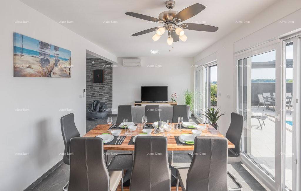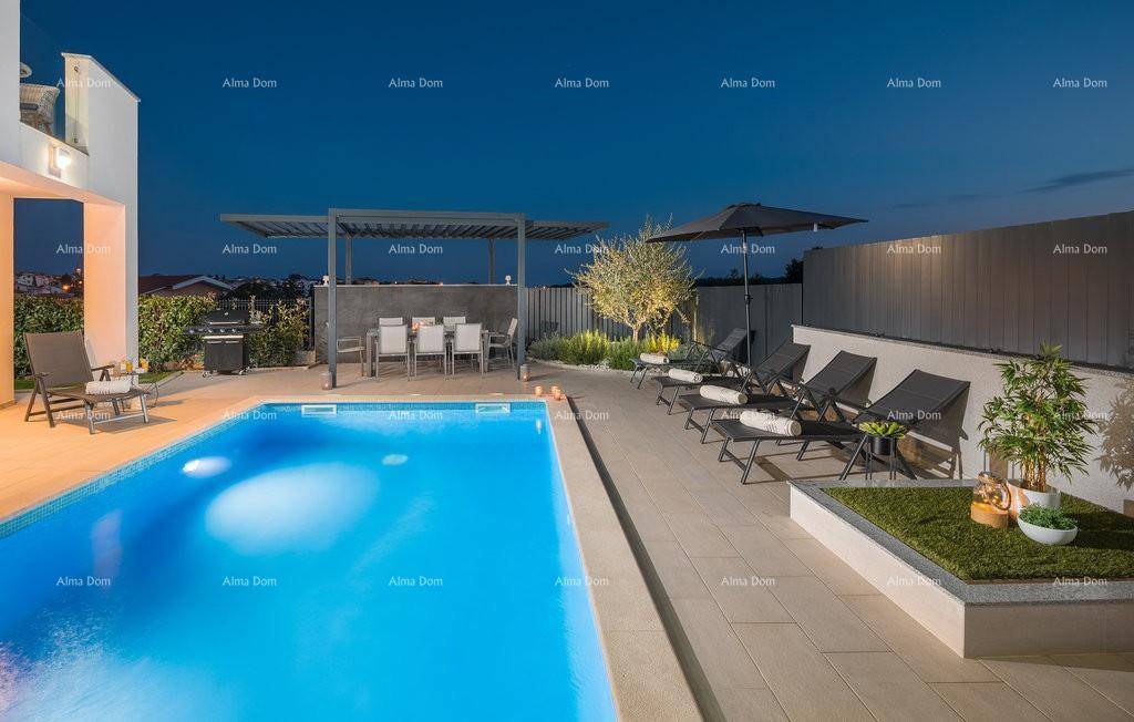 Luksuzna vila u Medulinu sa pogledom na more i bazenom! Kuća ima 4 spavaćih soba i 4 kupaonica, 260 m2 stambene površine i zemljište od 570 m2.