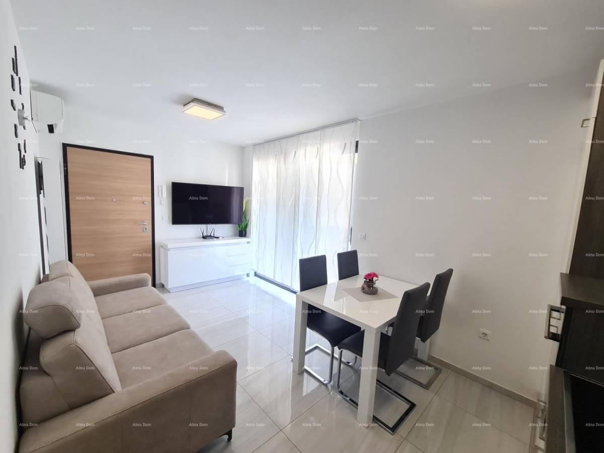Stan se nalazi na 1. katu novoizgrađene stambene zgrade. Sastoji se od dnevnog boravka s blagavaonicom te kuhinjom, terase, dvije spavaće sobe i kupaonice.