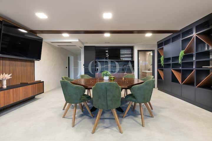 Podrum je koncipiran kao veliki prostor za druženje,sa kuhinjom i mokrim čvorom.