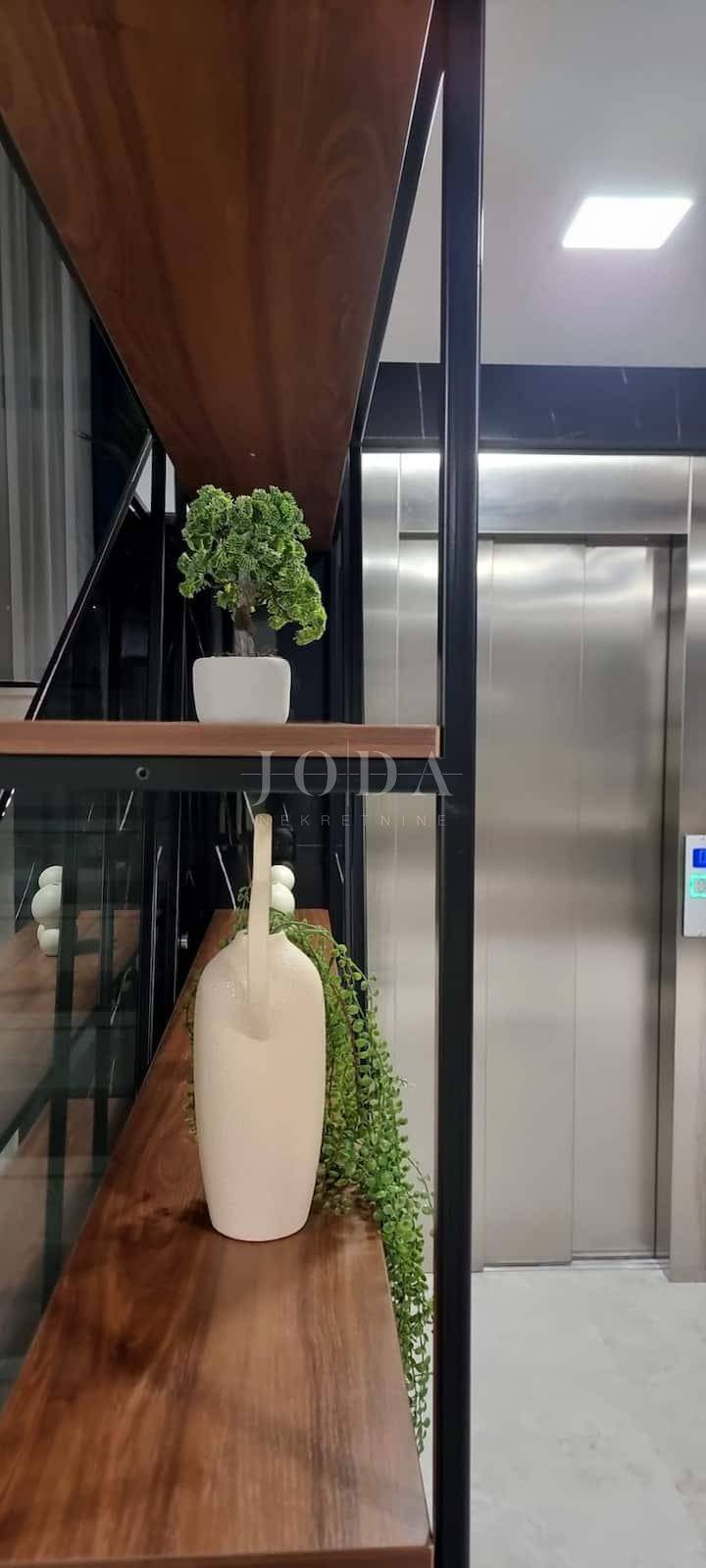 Sama kuća se sastoji od 4 etaže povezane stubištem te panoramskim liftom.
