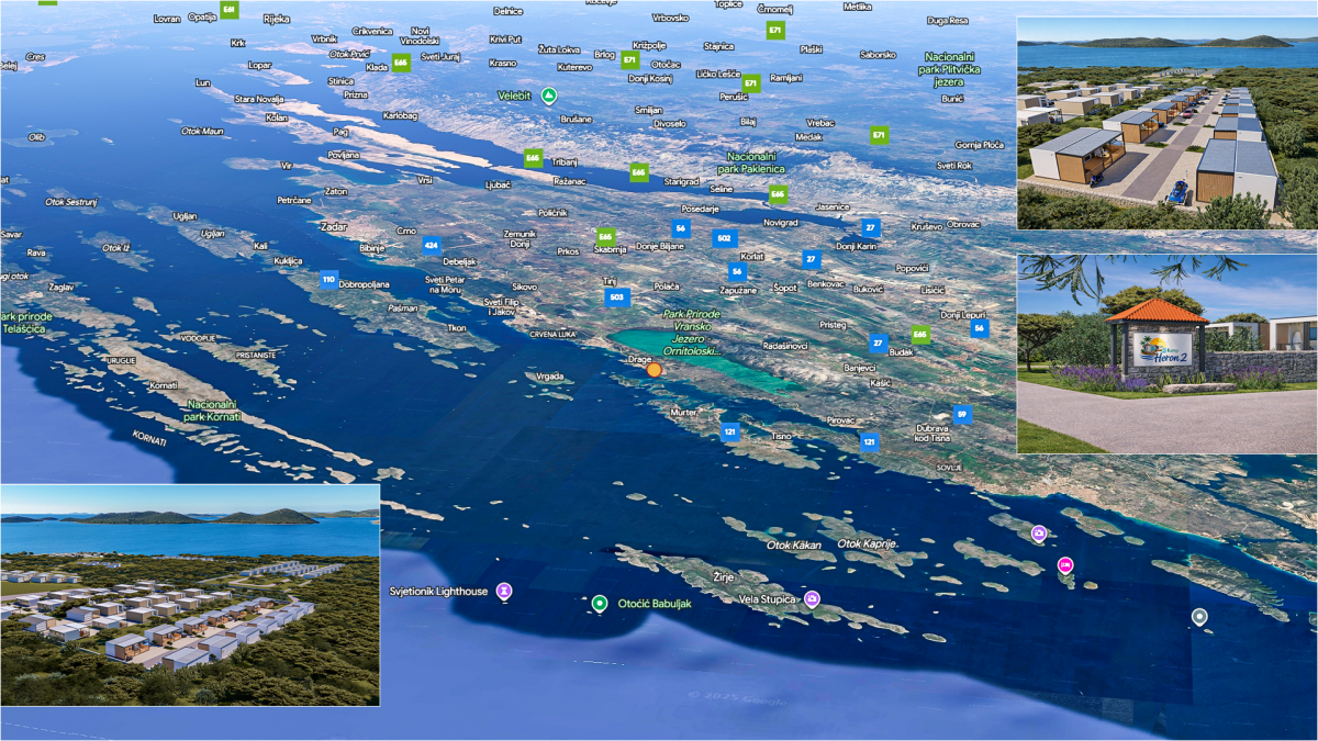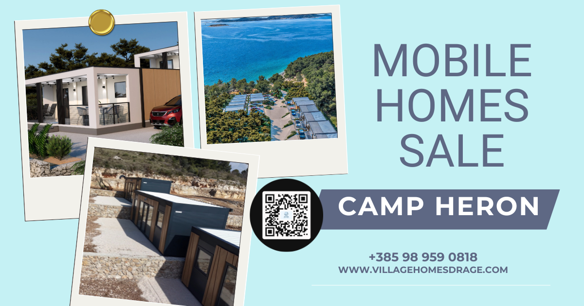 Na prodaju su potpuno opremljene mobilne kućice u kampu Heron, smještenom u obalnom mjestu Drage. Kamp se nalazi svega 160 metara od mora, pružajući idealan spoj mirne lokacije, dobre dostupnosti i izvrsnog potencijala za najam.