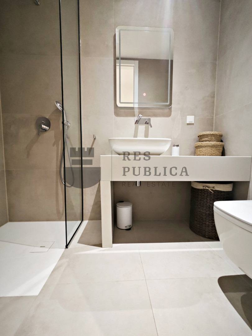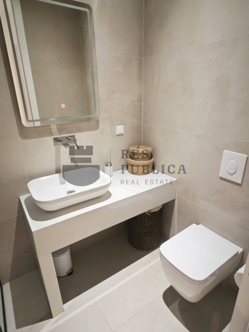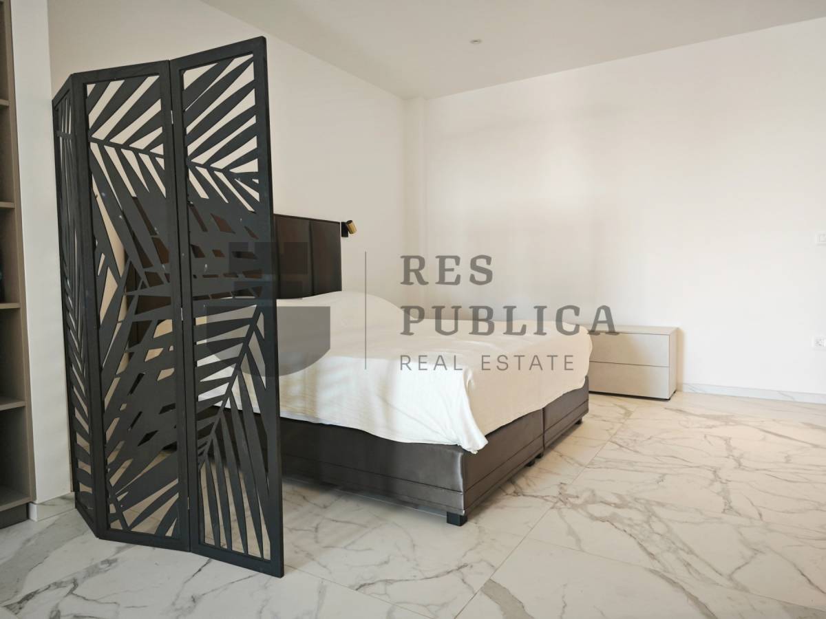 Apartman ima loggiu od 9,21 m² s koje se pruža otvoren pogled na more, a uz stan dolazi i vlastito parkirno mjesto. Prostor je moderno organiziran kao open space koji uključuje kuhinju, blagovaonicu, dnevni boravak i spavaći dio u jednoj cjelini, dok je kupaonica odvojena i opremljena podnim grijanjem.