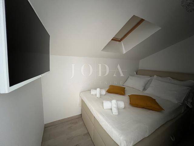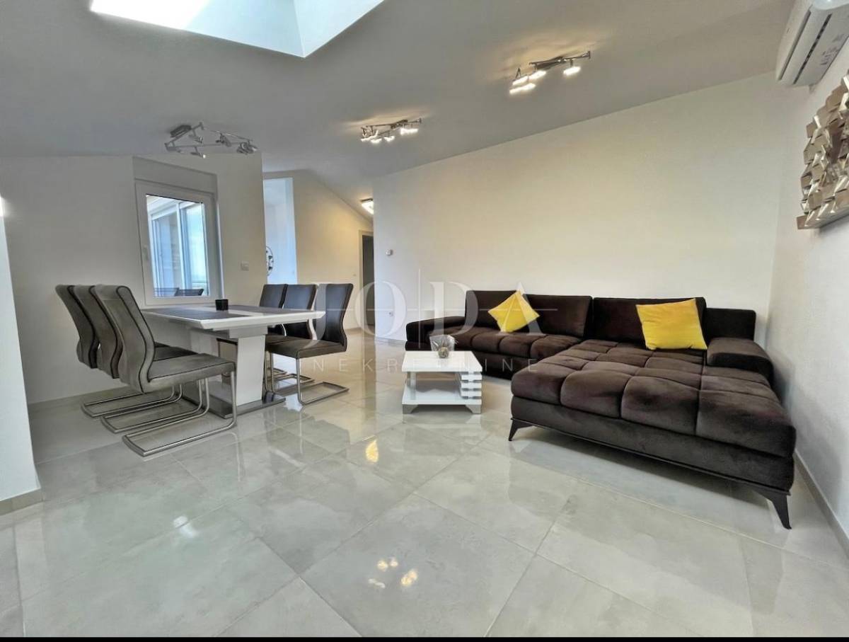 Stan je opremljen podnim grijanjem i klima uređajem, što osigurava udoban boravak tijekom cijele godine. Dodatna pogodnost su dva parkirna mjesta u okućnici zgrade.