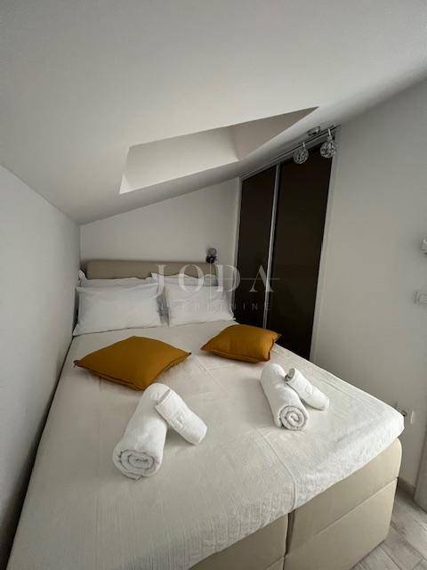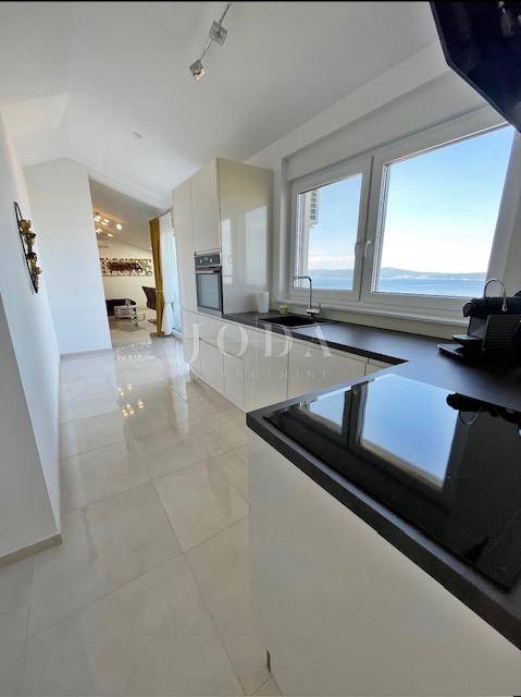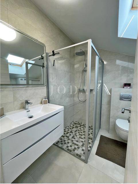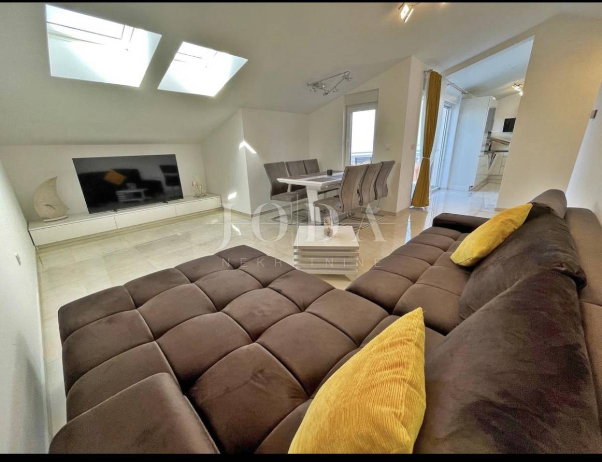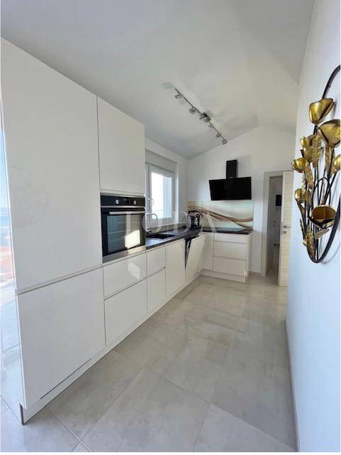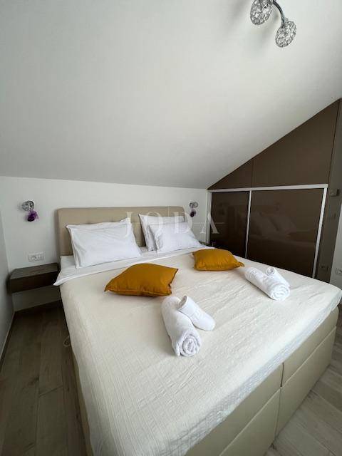 Posredujemo u prodaji modernog stana u Crikvenici, smještenog u visokom potkrovlju zgrade izgrađene 2020. godine. Sastoji se od ulaznog hodnika, kupaonice, dvije spavaće sobe, funkcionalne kuhinje s blagovaonicom, prostranog dnevnog boravka te terase s koje se pruža očaravajući pogled na more.
