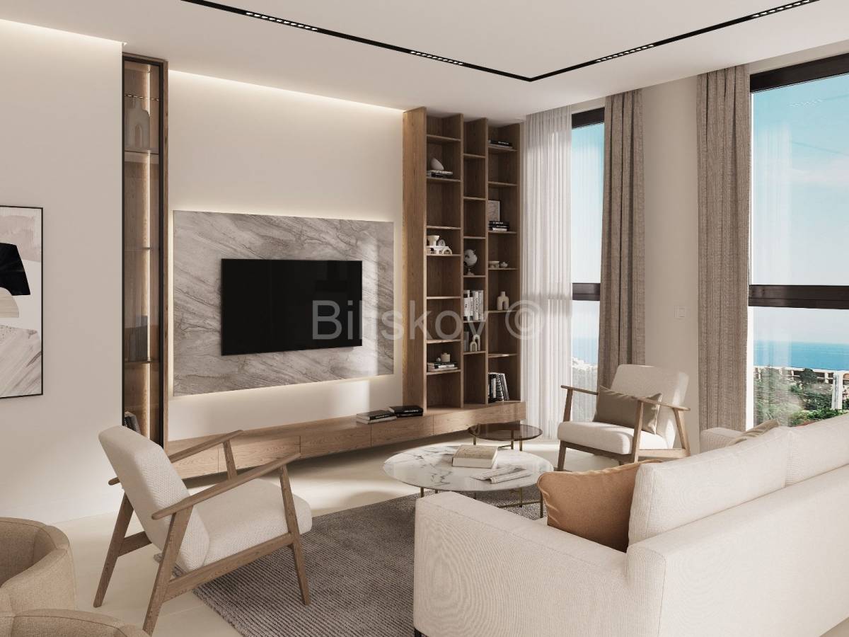 Stan uključuje kuhinju, blagovaonicu i dnevni boravak od 35,21 m², dvije udobne spavaće sobe (13,13 m² i 12,59 m²), modernu kupaonicu (4,27 m²), odvojeni WC (1,69 m²), praonicu/vešeraj (1,94 m²) te funkcionalan hodnik (6,31 m²) koji povezuje sve prostorije. Posebnu vrijednost daje prostrana lođa s koje se pruža očaravajući pogled na Trogirski zaljev – savršeno mjesto za jutarnju kavu ili večernje opuštanje uz zalazak sunca. Zgrada ima lift, a stanu pripada zajednički vrt.