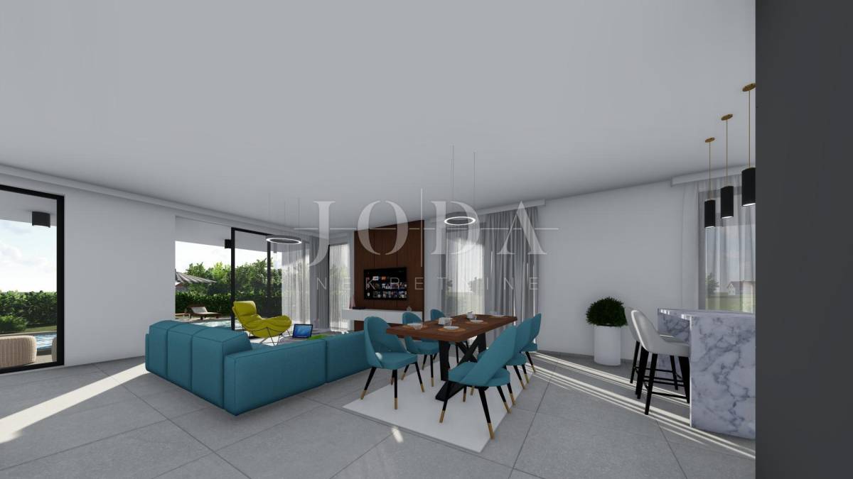 Villa je površine 185 m2 i sastoji se od prizemlja i kata. U prizemlju je open space dnevni boravak s kuhinjom i blagovaonicom, kupaonica te izlaz na terasu i okućnicu gdje su bazen, sunčalište te mjesto za druženje s obitelji i prijateljima. Na prvom katu su četiri spavaće sobe i tri kupaonice, od kojih dvije spavaće sobe imaju i garderobu te izlaze na balkone. U izgradnji se koriste najkvalitetniji materijali i sanitarije, sve prostorije će biti klimatizirane i bit će postavljena PVC stolarija. Moderan dizajn i tlocrt nekretnine čine ju posebnom. Villi pripadaju i tri parkirna mjesta. Useljenje se očekuje krajem 2022. godine.