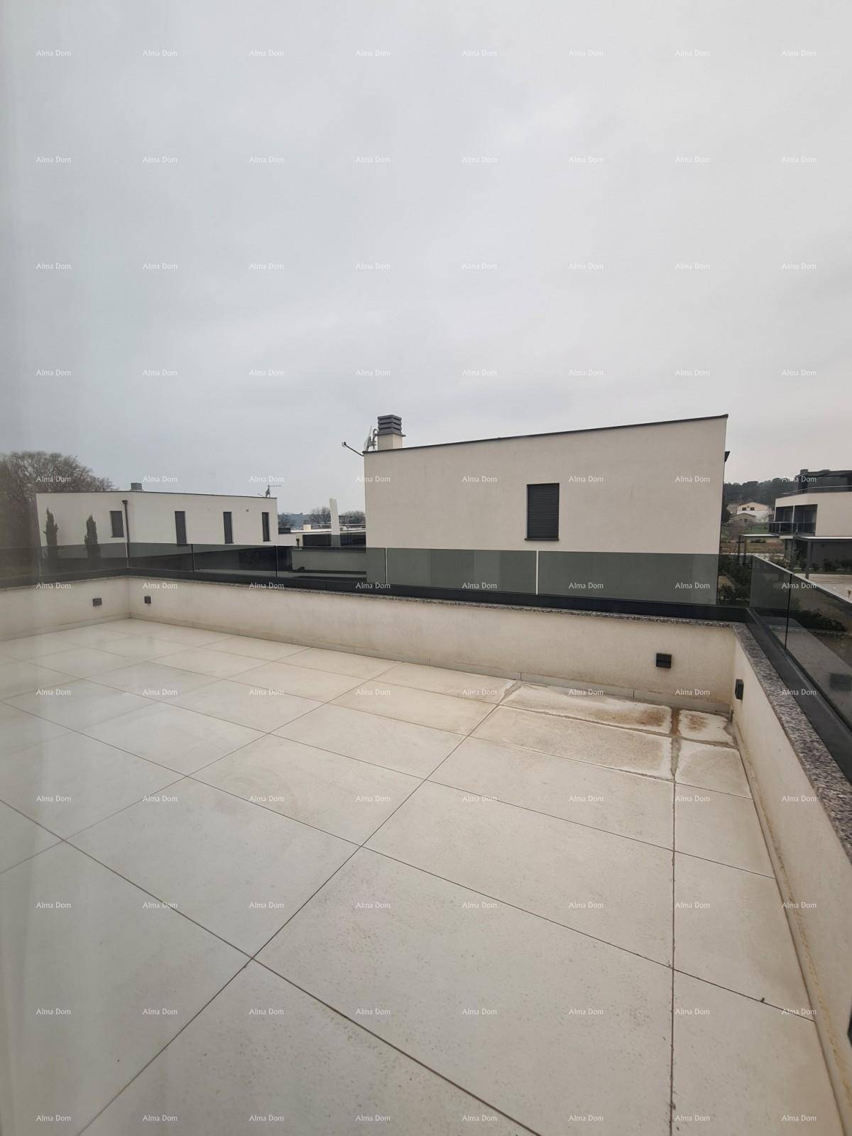 Unutarnje stepenice vode na kat gdje se nalazi vešeraj, dvije manje spavaće sobe s terasama koje dijele kupaonicu te master spavaće sobe s prostranom kupaonicom s kadom u tuš kadom.