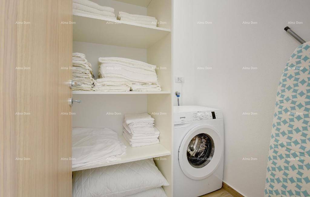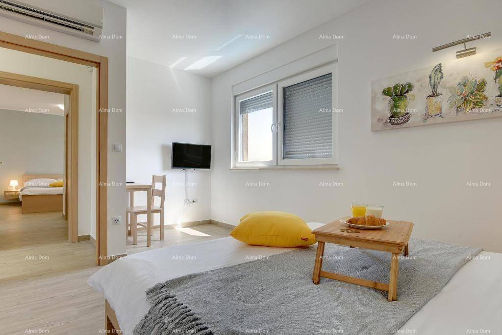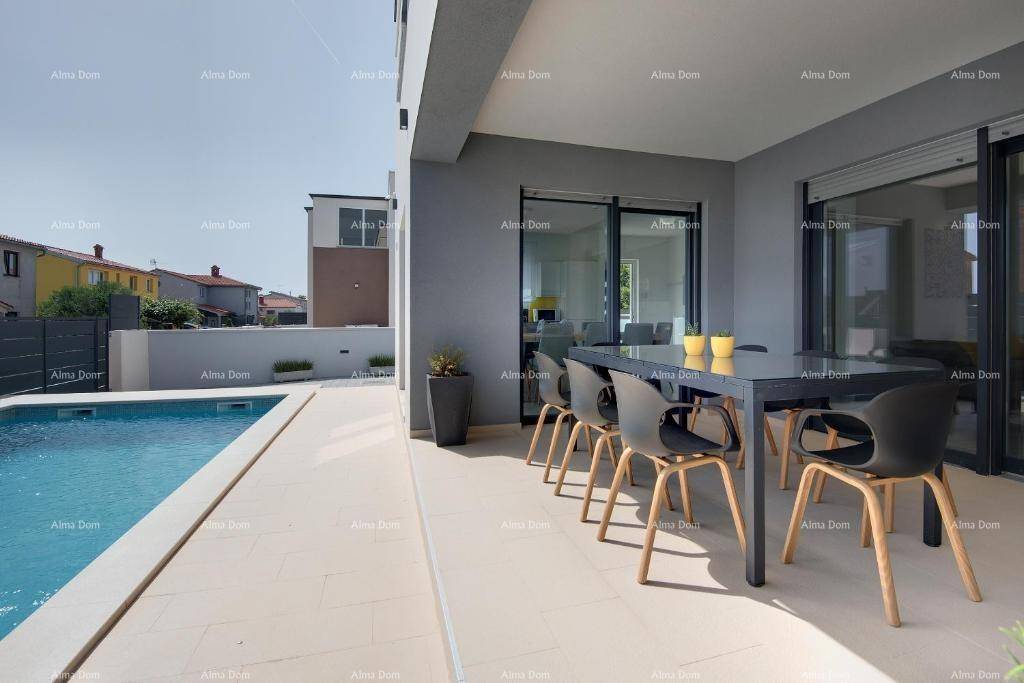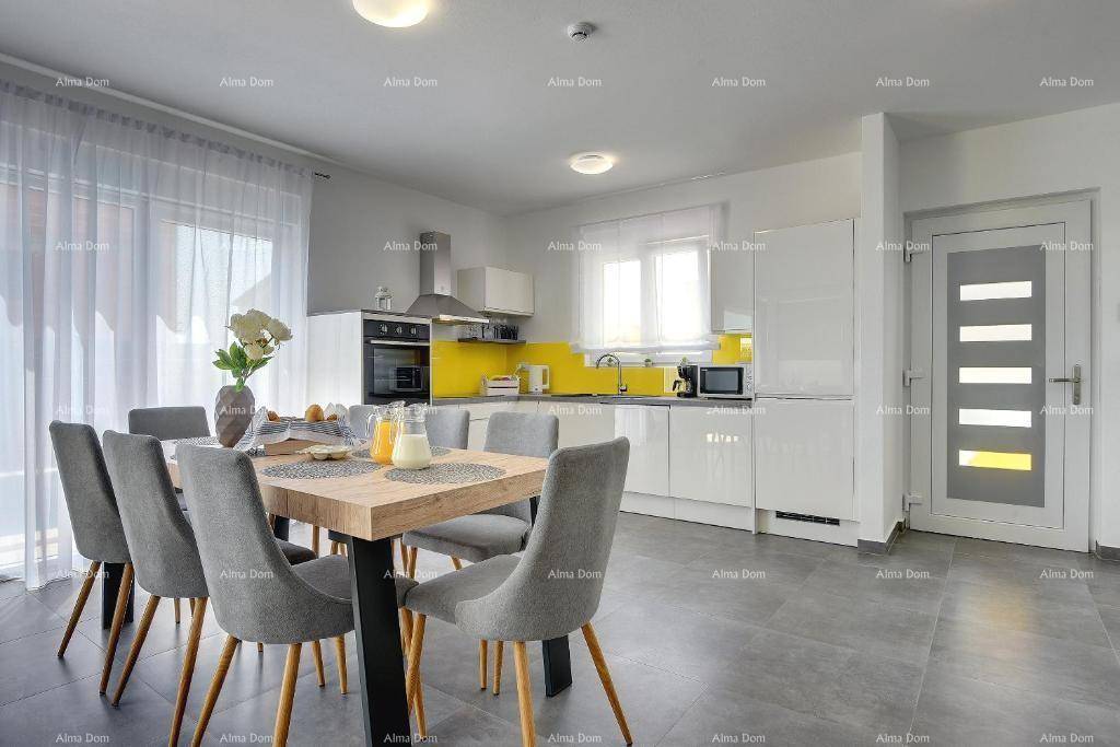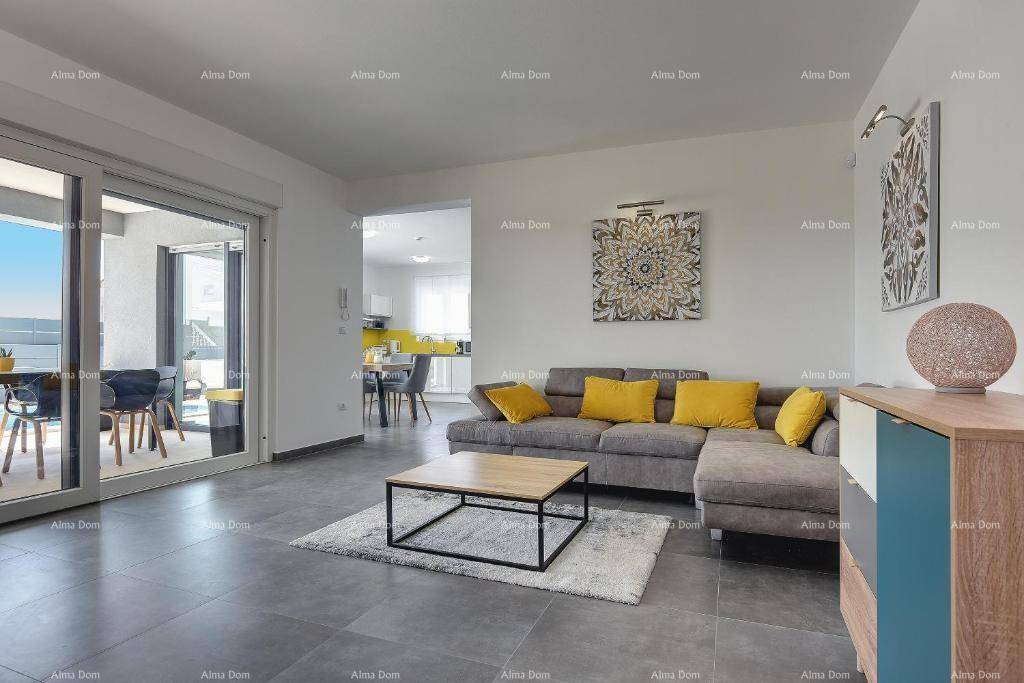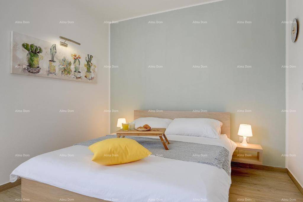 Sastoji se od prizemlja i kata. U prizemlju se nalazi ulazni hodnik, kupaonica, prostrani dnevni boravak te kuhinja s blagavaonciom. Iz dnevnog boravka se izlazi na prostranu terasu gdje se nalazi veliki stol te ljetna kuhinja, te vrt gdje se nalazi sunčakište te bazen veličine 4 x 8 metara. Na katu kuće se nalaze 3 spavaće sobe s kupaonicama.