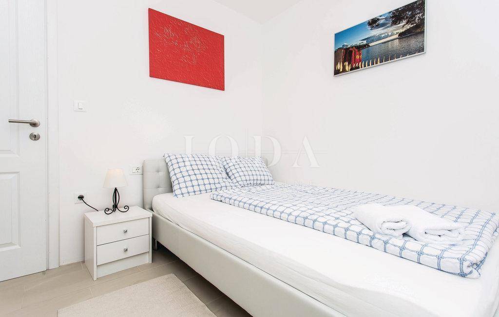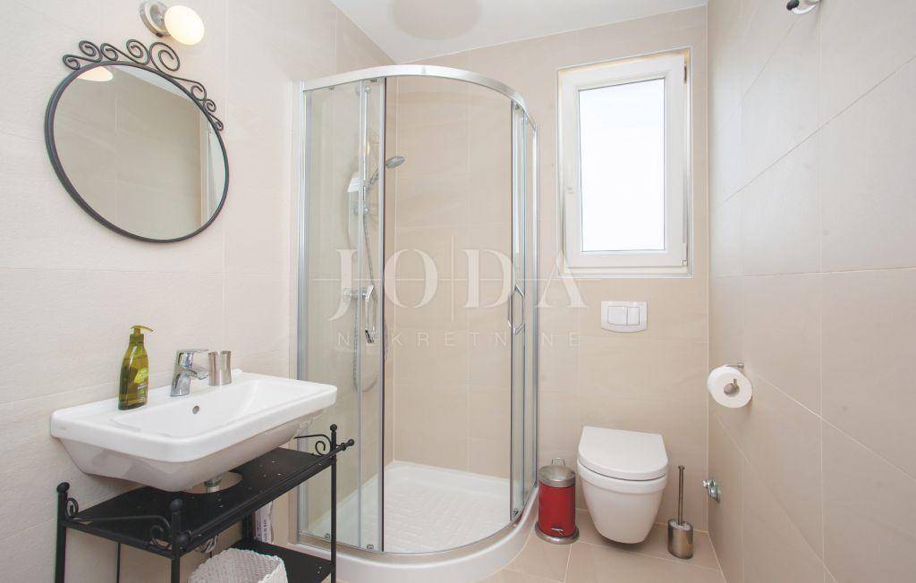 Okućnici ove nekretnine na moru pripada i prekrasan veliki bazen površine 24 m2 te 7 parkirnih mjesta za vlasnika, njegovu obitelj i njegove goste.