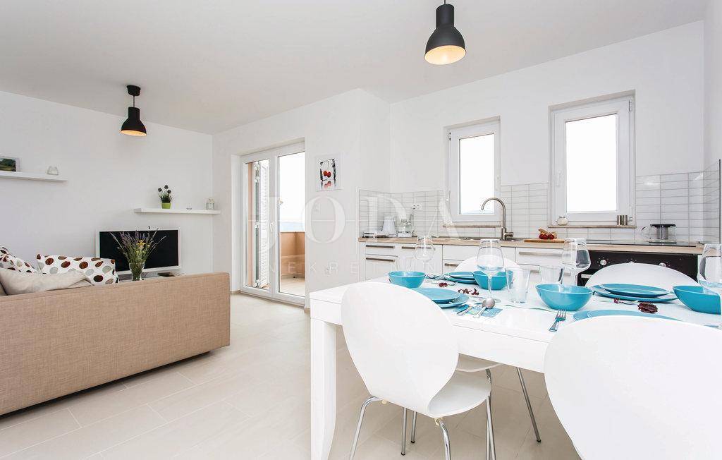 Na svakoj etaži ima terase, a s terase se pruža otvoreni pogled na more.