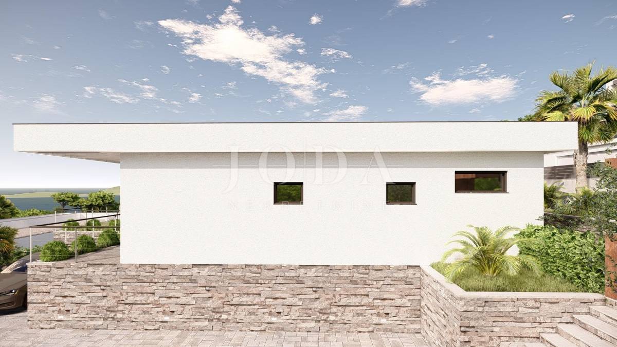 Iz cijelog prizemlja (što uključuje i bazen), a pogotovo sa kata, će se pružati panoramski pogled na grad, more i otok Krk koji nikada neće biti zaklonjen!
