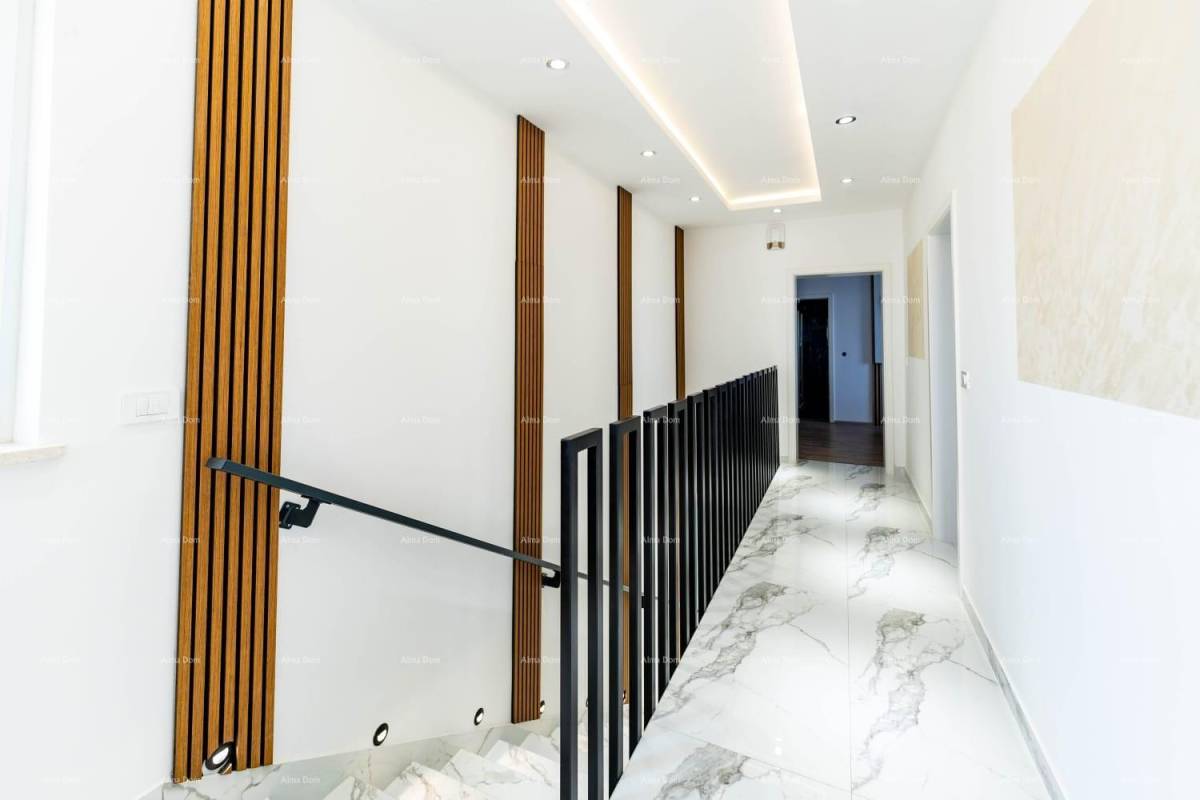 Kuća se sastoji od velikog dnevnog boravka sa kuhinjom i blagovaonicom, kupatila za goste i ostave u prizemlju te tri spavaće sobe, svaka sa svojim kupatilom i izlazom na terasu na katu kuće.