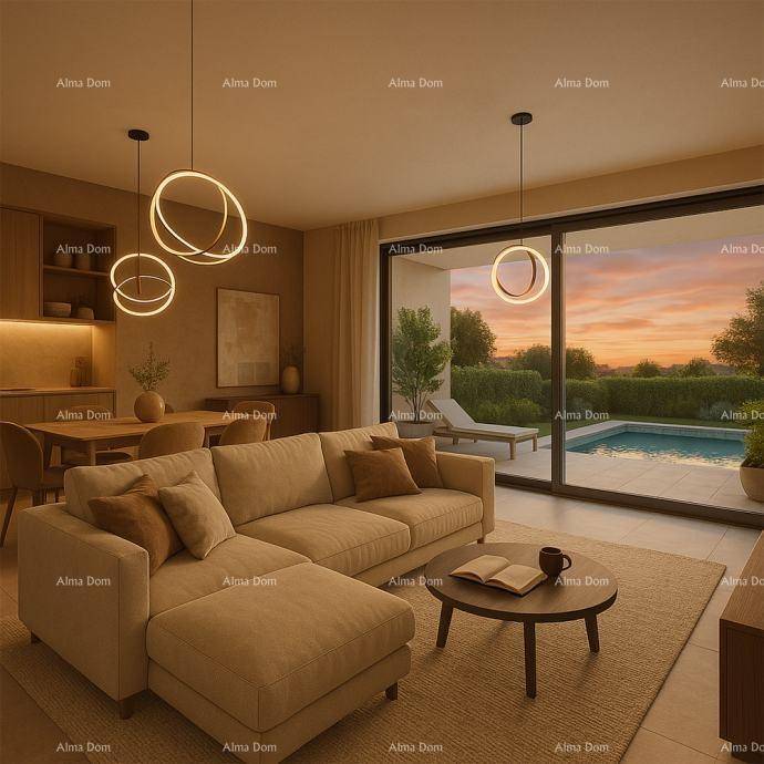 Na prodaju je moderna novogradnja u naselju Žbandaj, svega nekoliko minuta vožnje od Poreča. Smještena u mirnom i zelenilom okruženom dijelu naselja, ova nekretnina pruža potpunu privatnost, prekrasan pogled na more i funkcionalan raspored, idealan za obiteljski život, više generacija ili turistički najam.