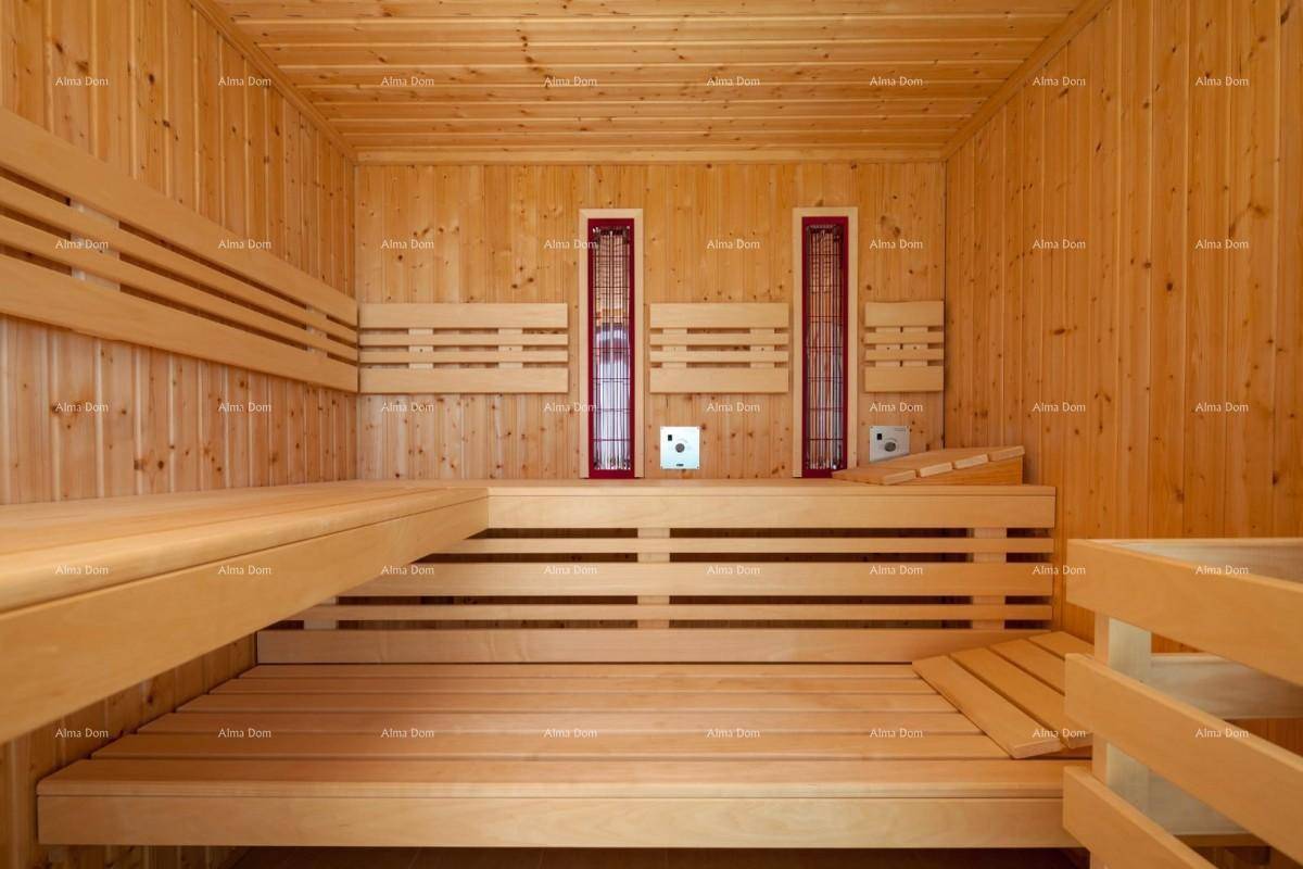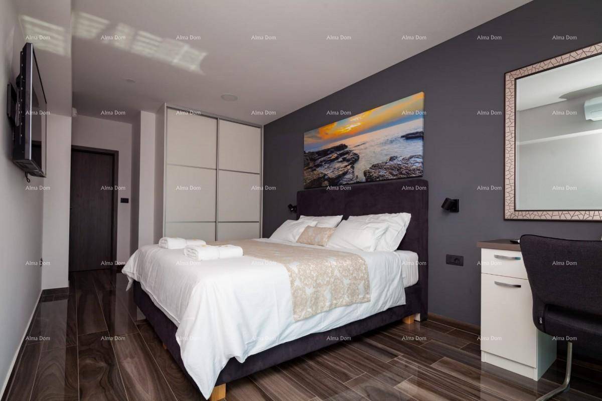 Stambena površina 480m2. U prizemlju se nalazi dnevni boravak, kuhinja, sala za bilijar, gostinjski toalet. Na 1. katu su četiri spavaćih soba, svaka soba ima svoje kupatilo i pogled na more. Iz svake sobe izlaz na veliku terasu. Na 2.katu je još jedna spavaća soba s pogledom na more, teretana, jacuzzi, sauna, velika terasa.