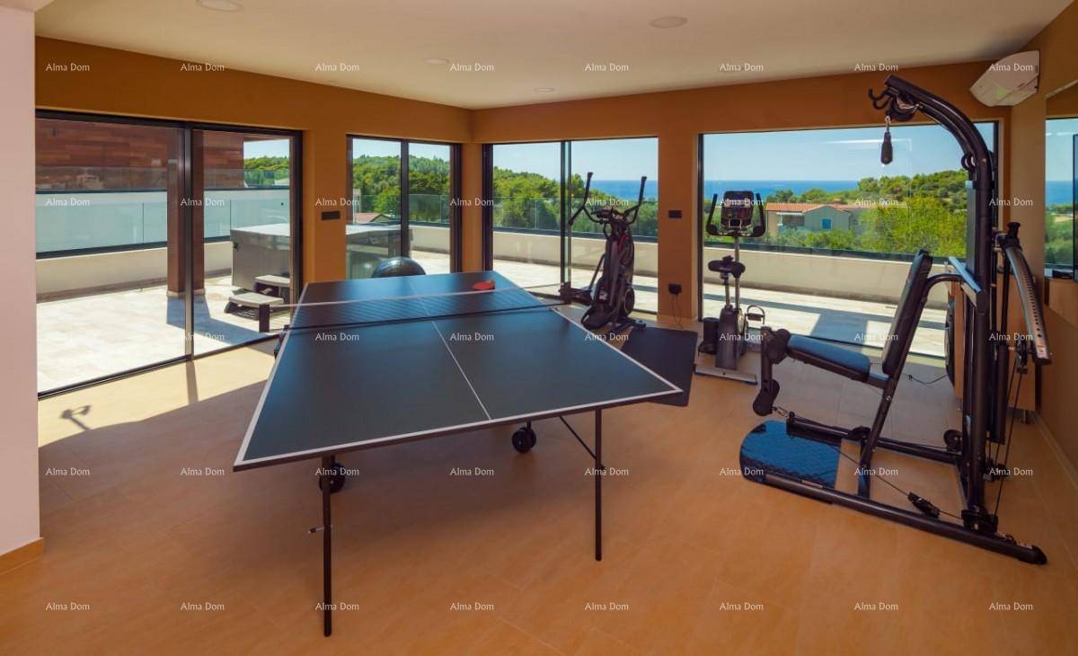 Stambena površina 480m2. U prizemlju se nalazi dnevni boravak, kuhinja, sala za bilijar, gostinjski toalet. Na 1. katu su četiri spavaćih soba, svaka soba ima svoje kupatilo i pogled na more. Iz svake sobe izlaz na veliku terasu. Na 2.katu je još jedna spavaća soba s pogledom na more, teretana, jacuzzi, sauna, velika terasa.