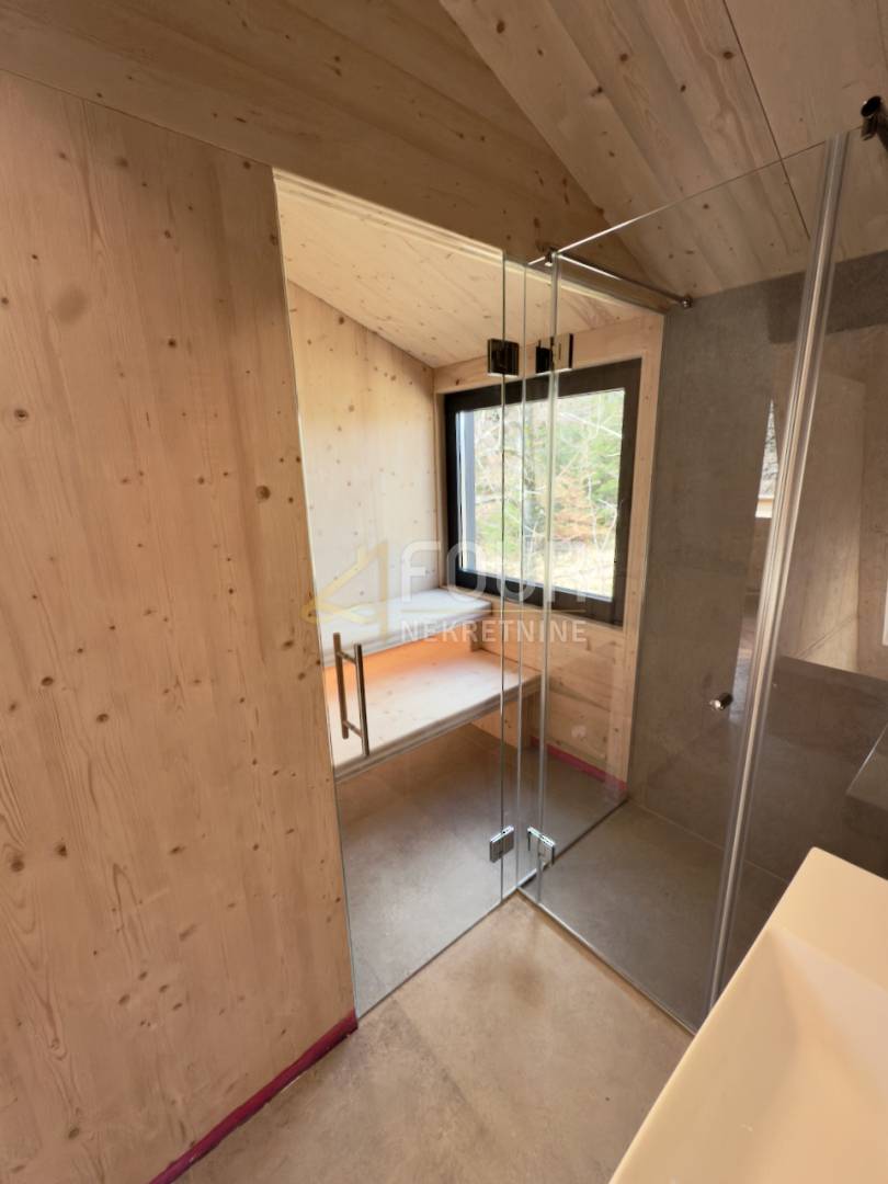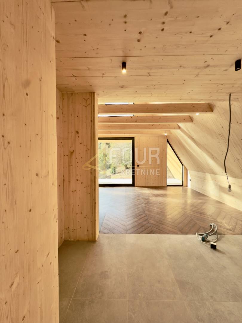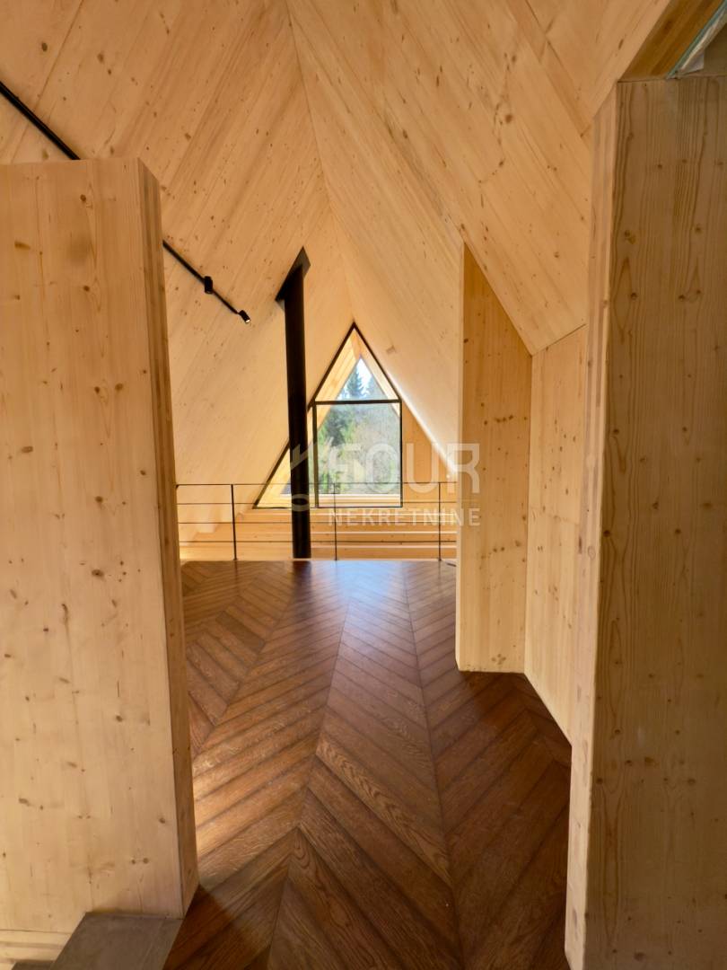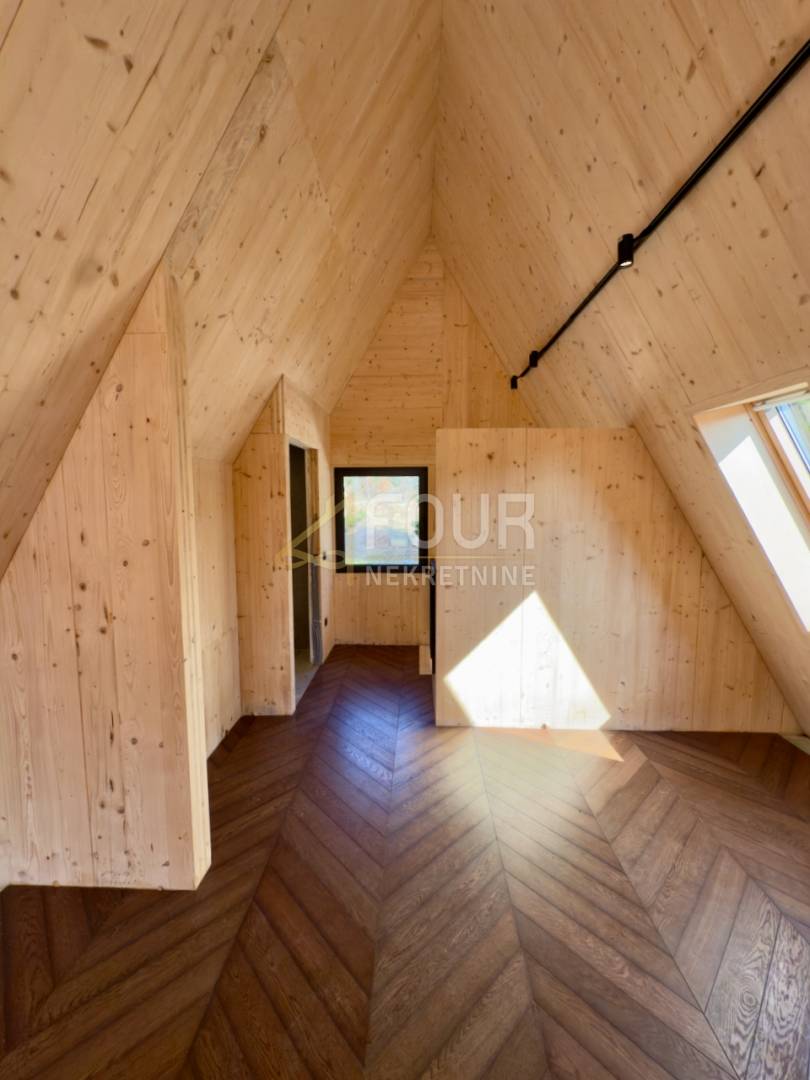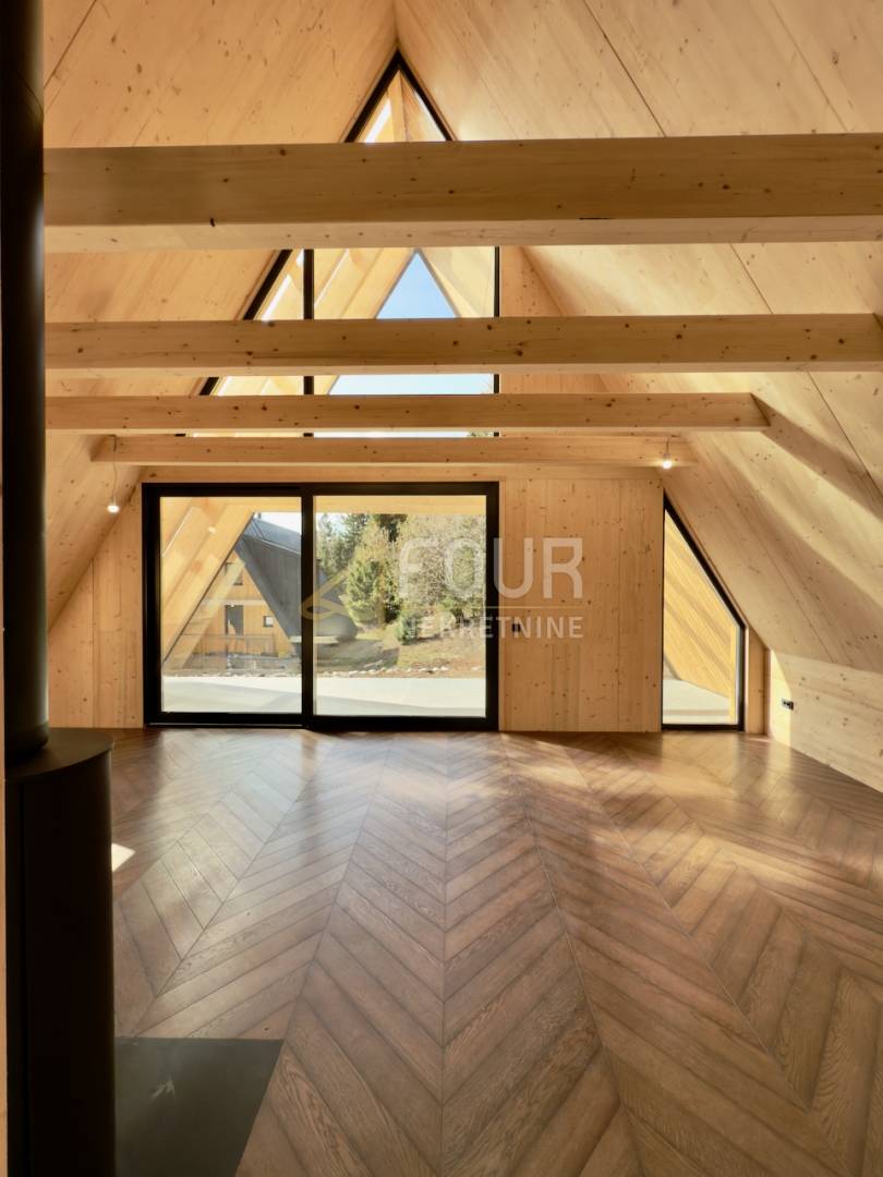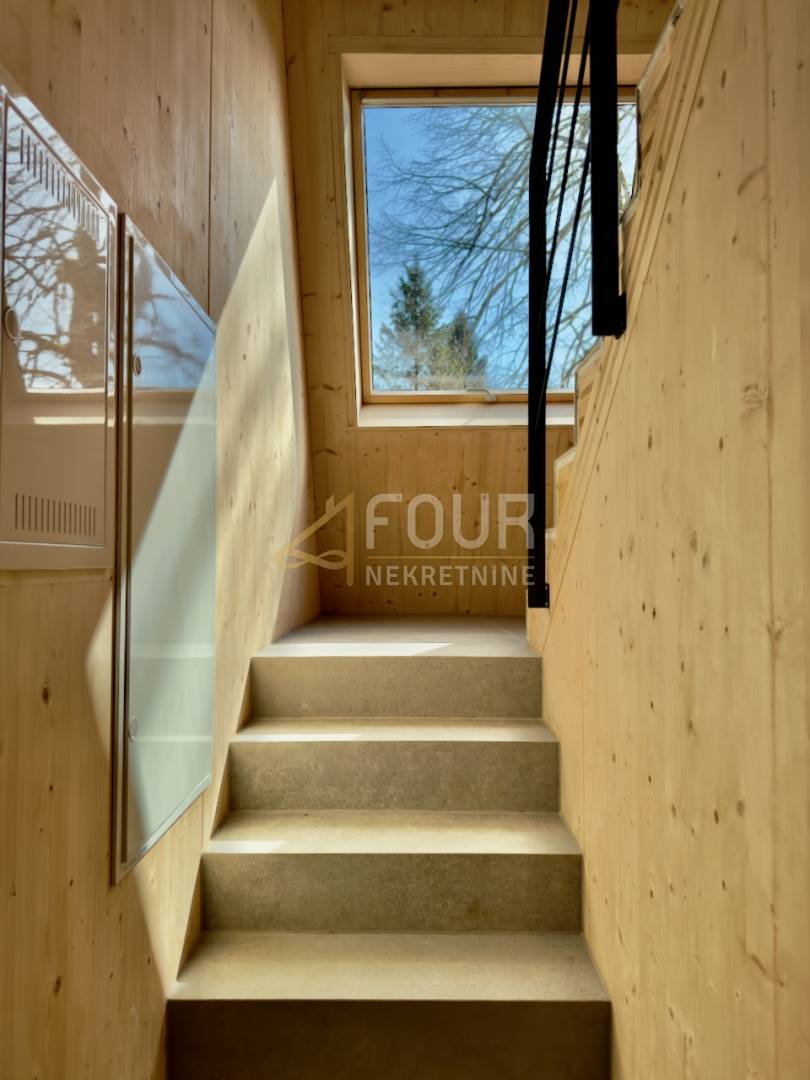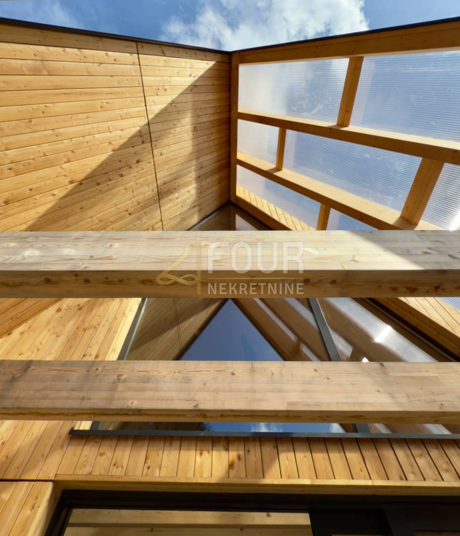 Kuća je opremljena drvenim VELUX krovnim prozorima s električnim roletama koje osiguravaju regulaciju svjetla i zaštitu od snijega i sunca.