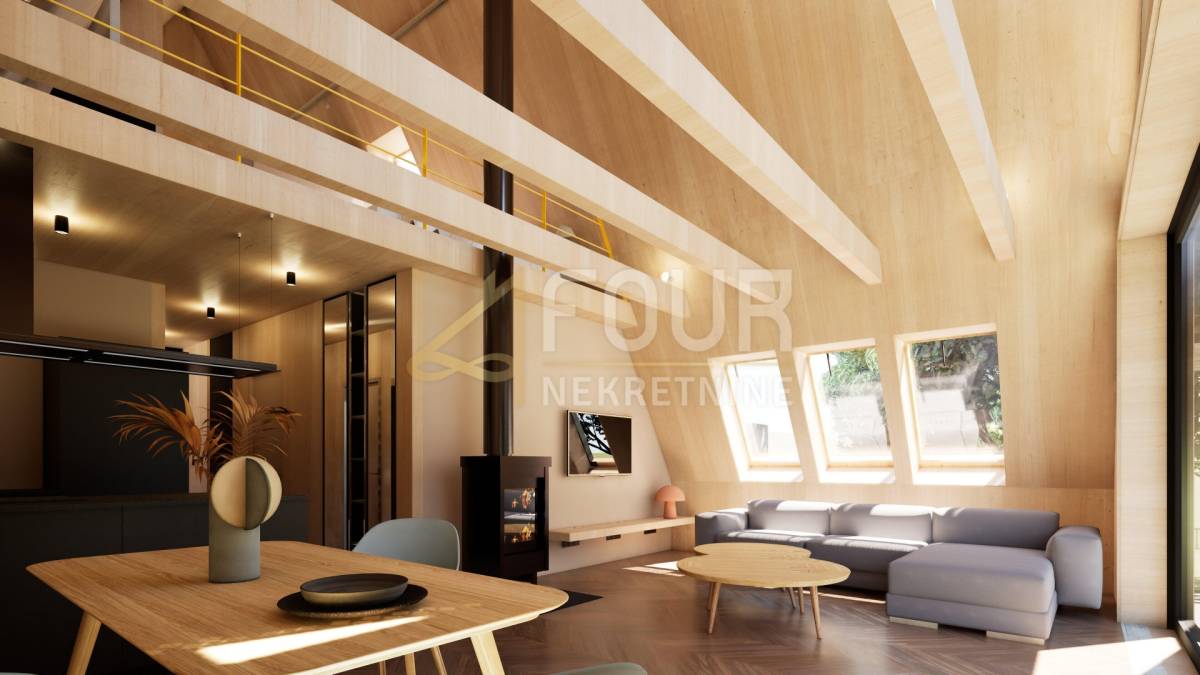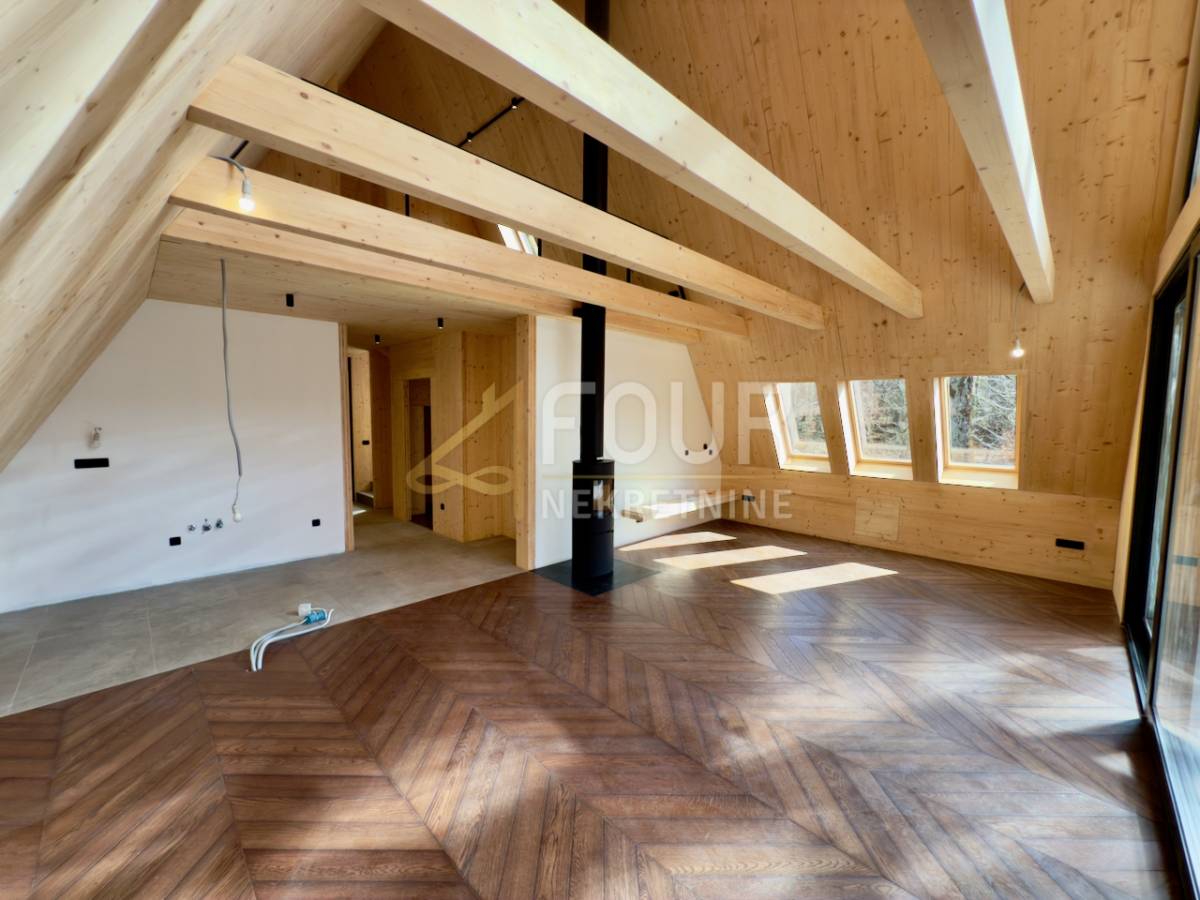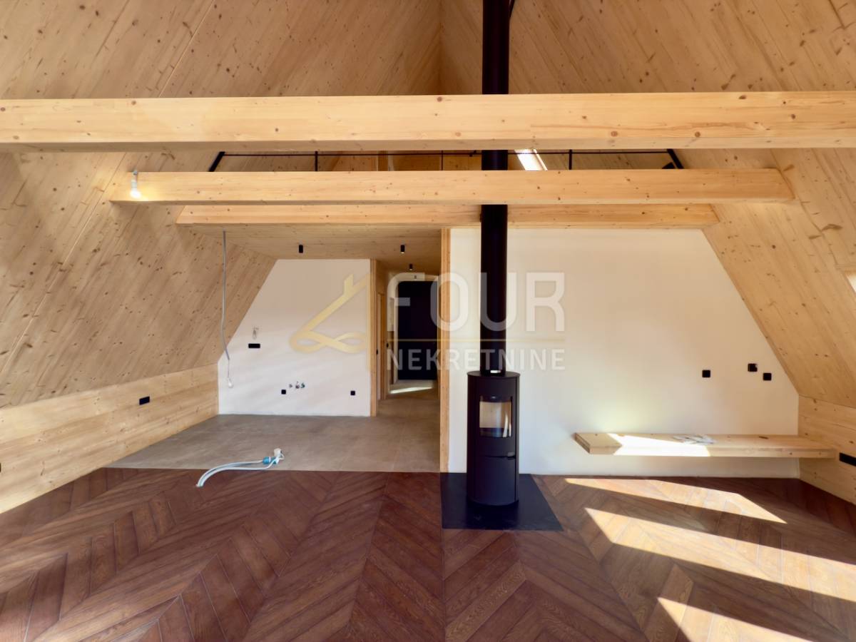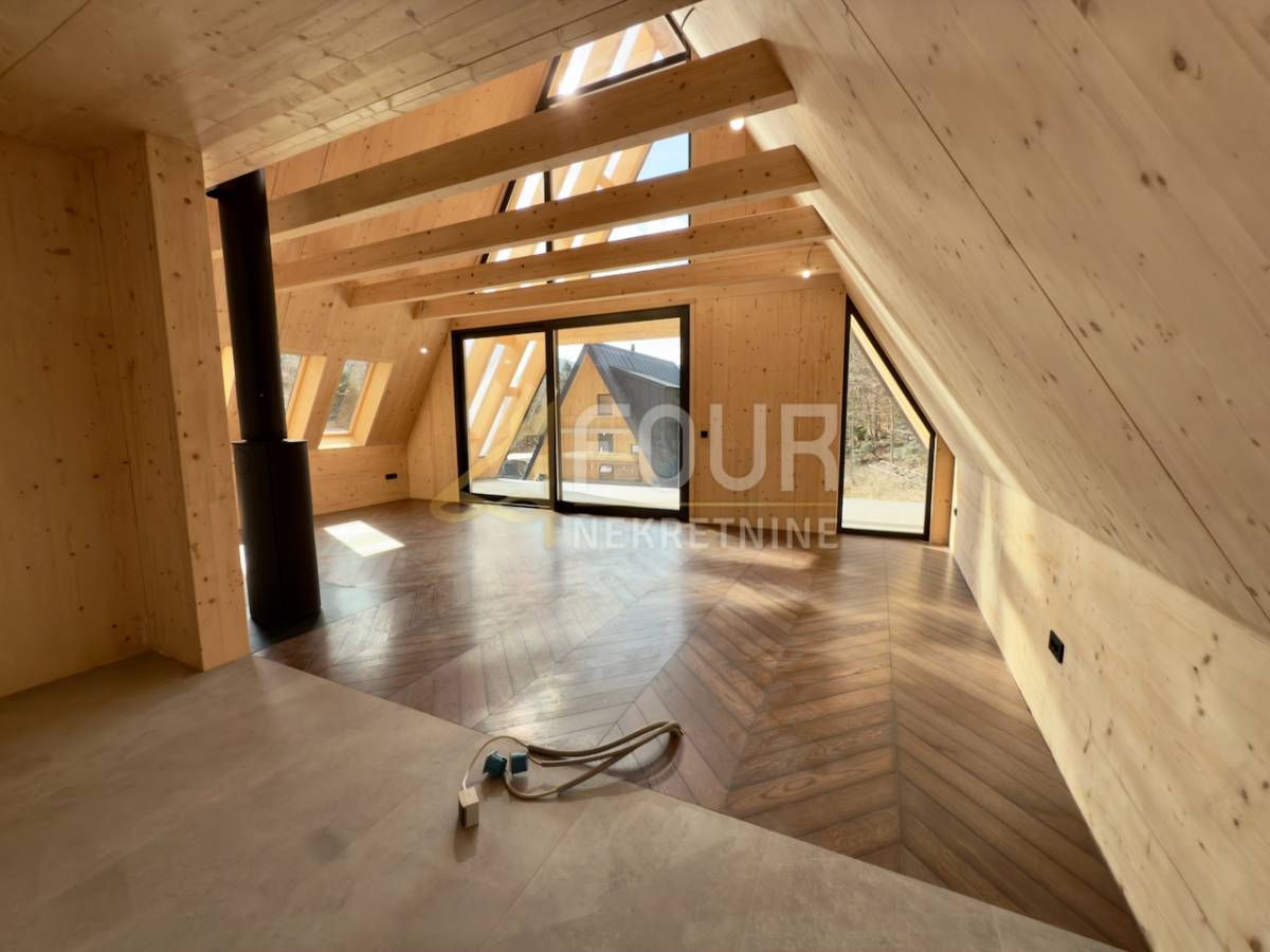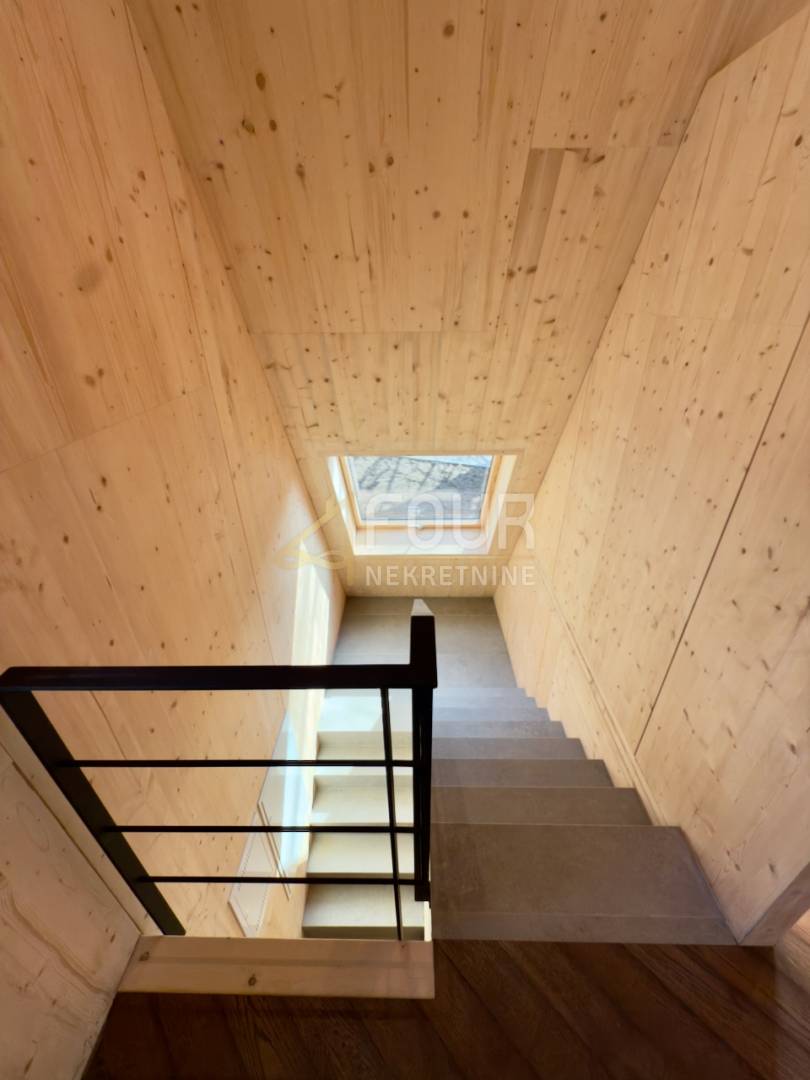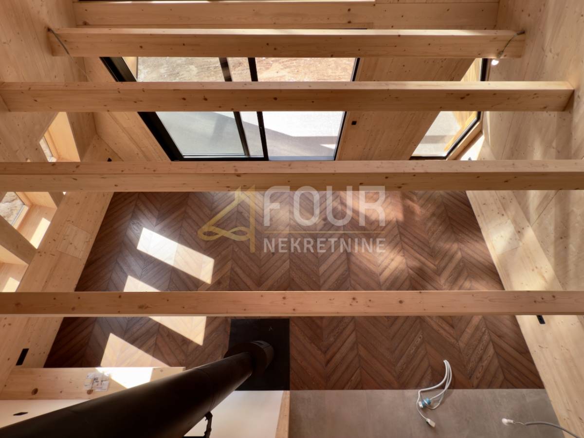 Kuća je opremljena drvenim VELUX krovnim prozorima s električnim roletama koje osiguravaju regulaciju svjetla i zaštitu od snijega i sunca.