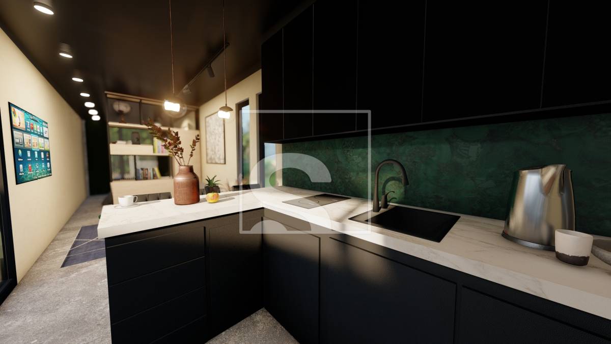 Kuća je ukupne neto stambene površine 27m2 te se sastoji od jedinstvene cjeline u vidu open space sistema. Ulaskom se ulazi u predsoblje/dnevni boravak koji nastavlja s kuhinjom u nizu te se na kraju nalazi kupaonica. S druge strane nalazimo spavaću sobu, odlično izmaknutu od dnevnog dijela visokim ormarima kao pregradu za odvajanje prostora te tako iskoristivši maksimalno svaki dio prostora. S obzirom na to da se radi o manjem objektu svaki pedalj prostora je iskorišten te se ukupni dojam prostora u stvarnosti dojma puno veći. Ispred same kuće nalazi se prostrana natkrivena terasa od ukupno 18m2 na kojoj se nalazi prostor za druženje s vanjskom ljetnom kuhinjom. U nastavku terase prelazimo na ne natkriveni dio terase koji je također popločen te tu počinje dio sunčališta i "plaže"bazena. Bazen je 12m2 površine te je i više nego dovoljan za osvježenje u toplim ljetnim mjesecima.