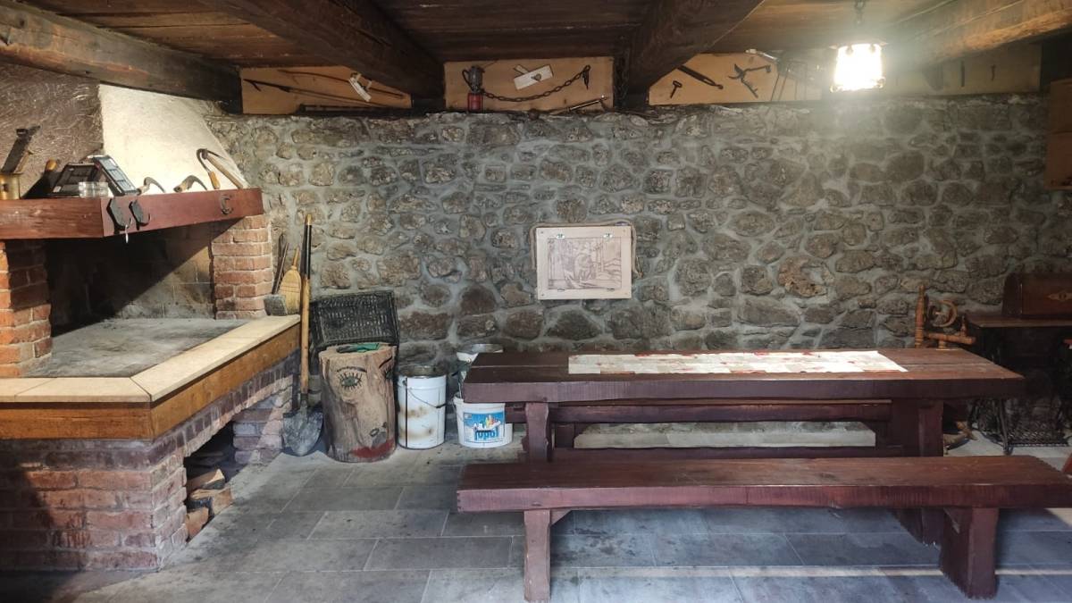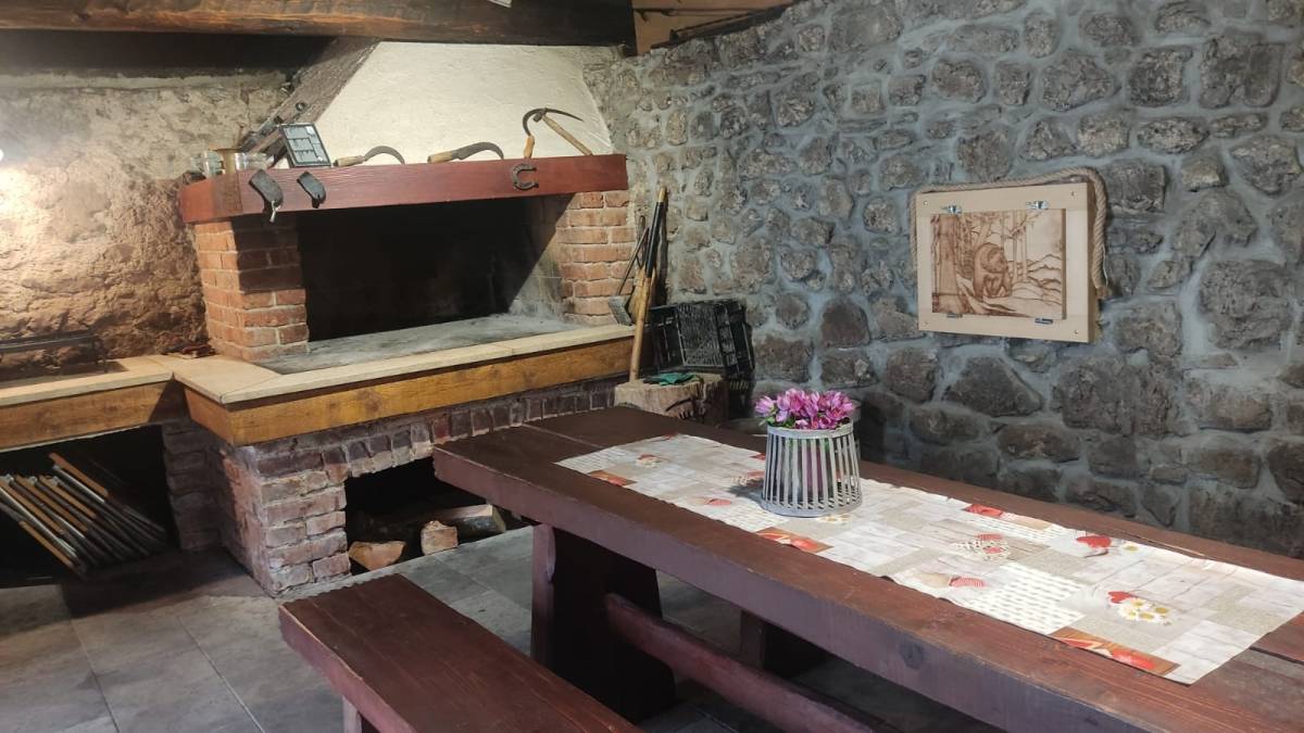 Na okućnici se nalazi kućica u kojoj je smješten kamin i prostor za druženje te popločana terasa za boravak na otvorenom.