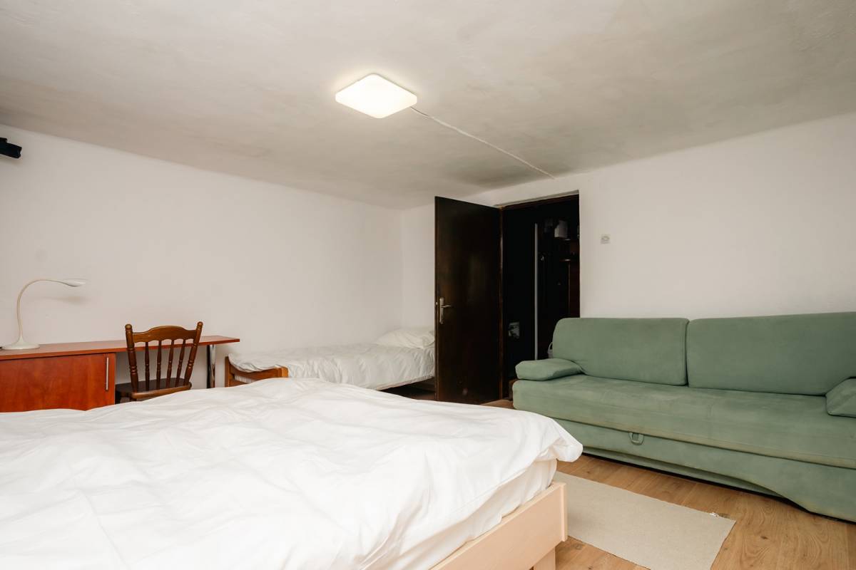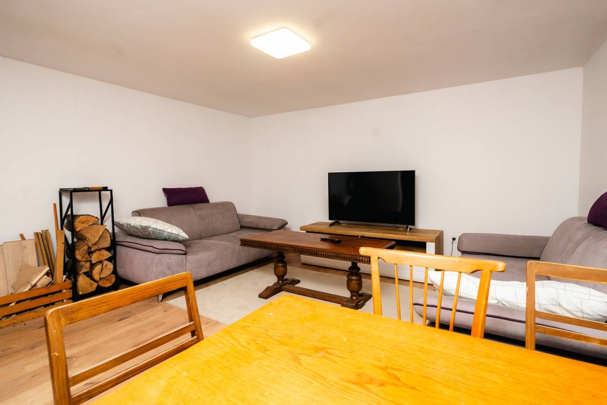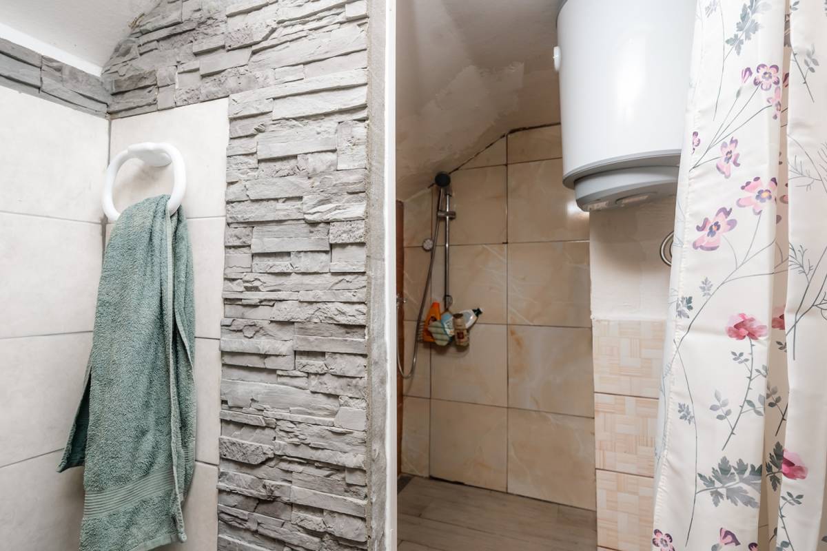 U prizemlju smješten je dnevni boravak povezan s kuhinjom i blagovaonicom, čime se stvara prozračan i funkcionalan prostor za svakodnevni život. Tu su i dvije spavaće sobe, savršene za članove obitelji ili goste.