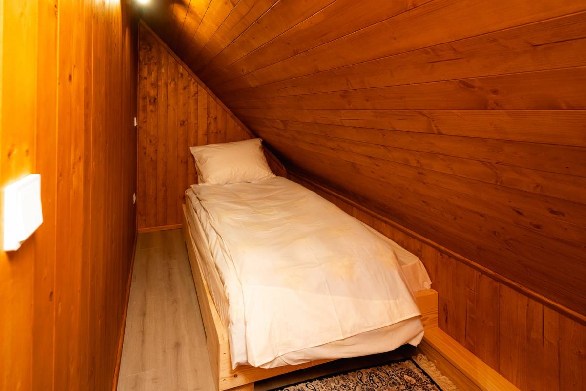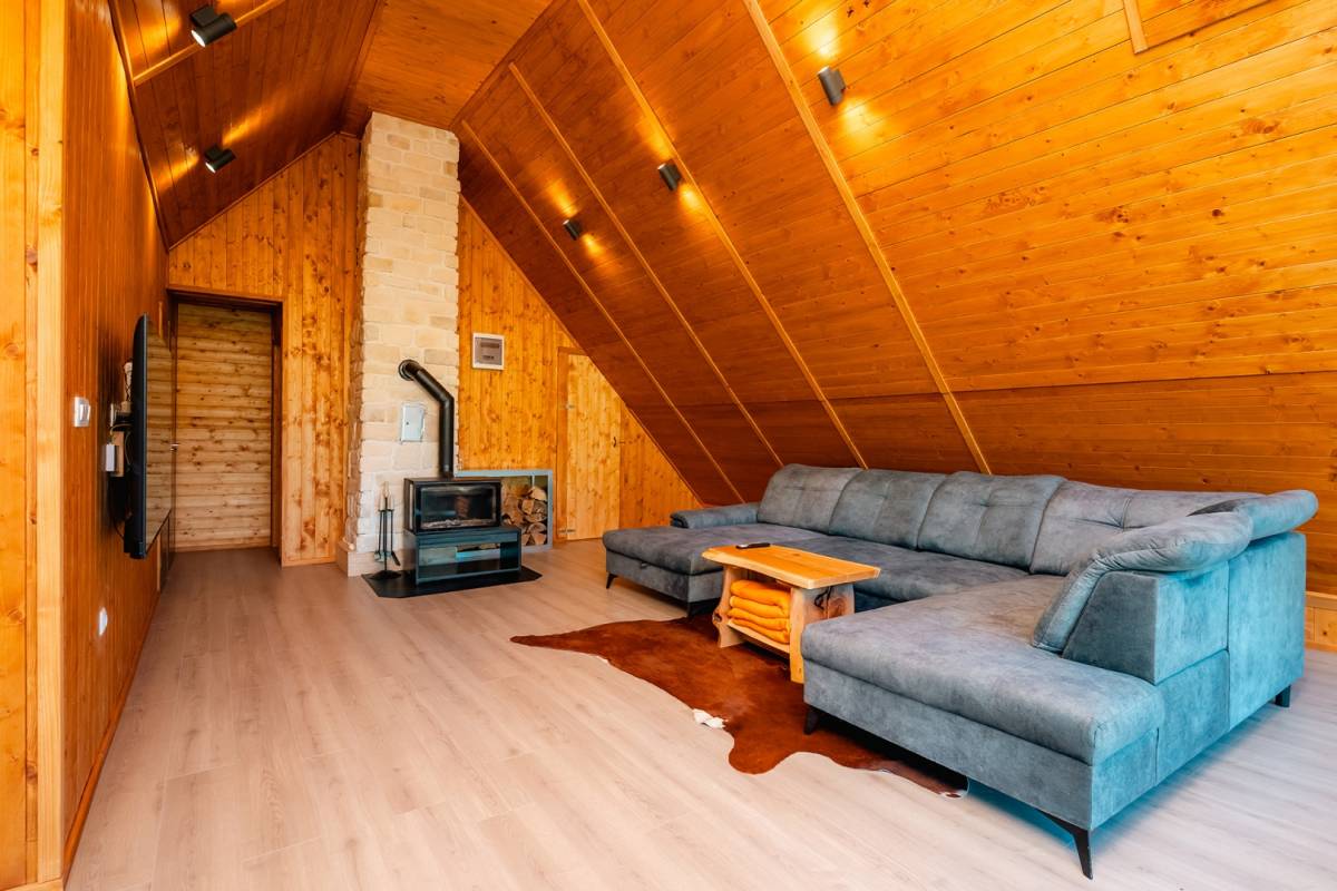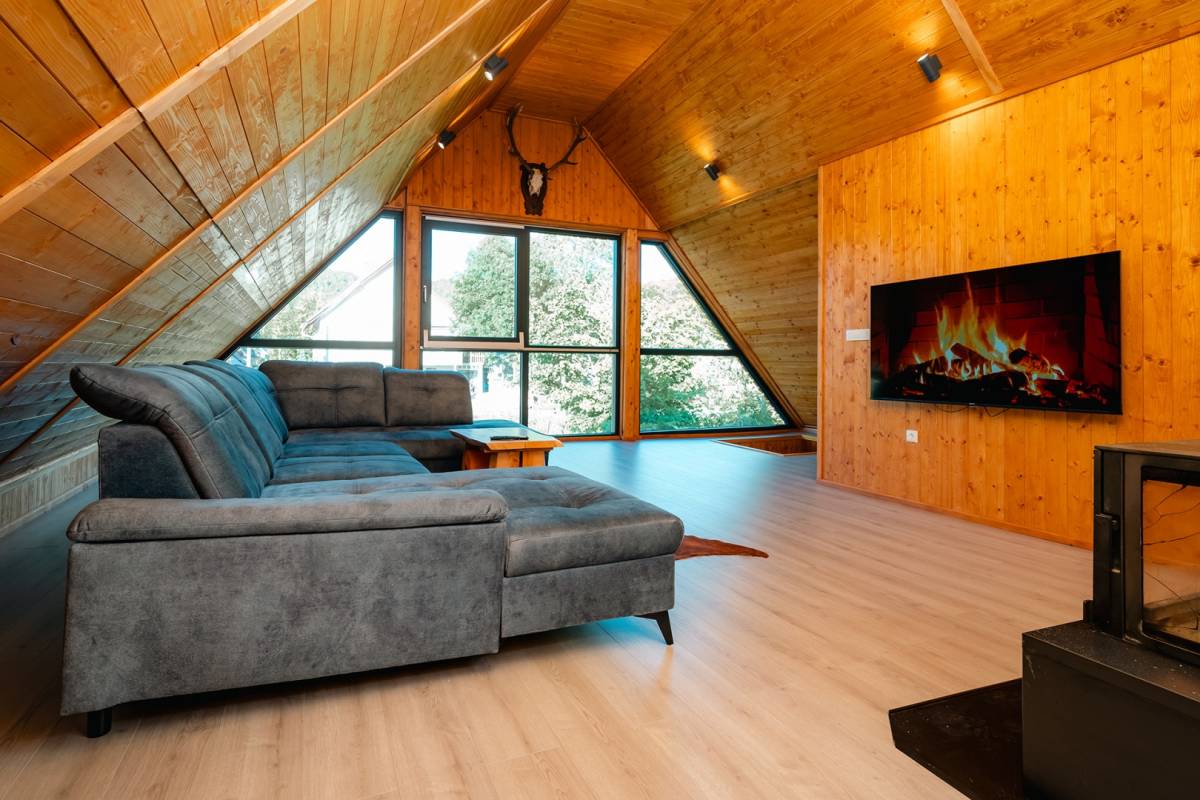 Visoko potkrovlje donosi dodatni dnevni prostor s posebnim ugođajem, toplo uređen boravak za opuštanje, tri dodatne spavaće sobe i ugodna čitaonica s pogledom na prirodu. Ova etaža stvara osjećaj privatnosti i odmora, idealna za večernja opuštanja ili rad od kuće.