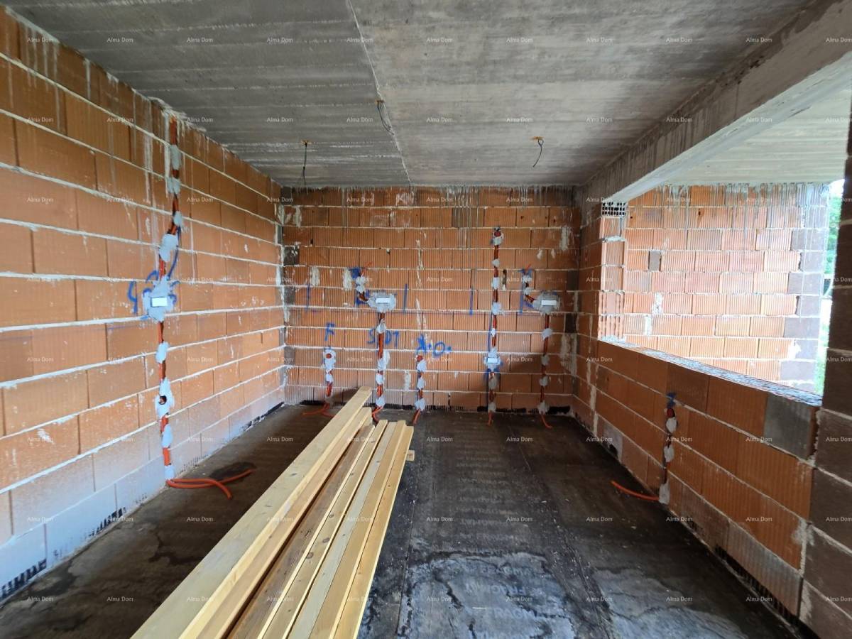 Prodaje se kuća u izgradnji smještena u mirnom naselju Muntić, nedaleko od Pule. Kuća ima ukupnu površinu od 150 m², a nalazi se na prostranoj parceli od 768 m².