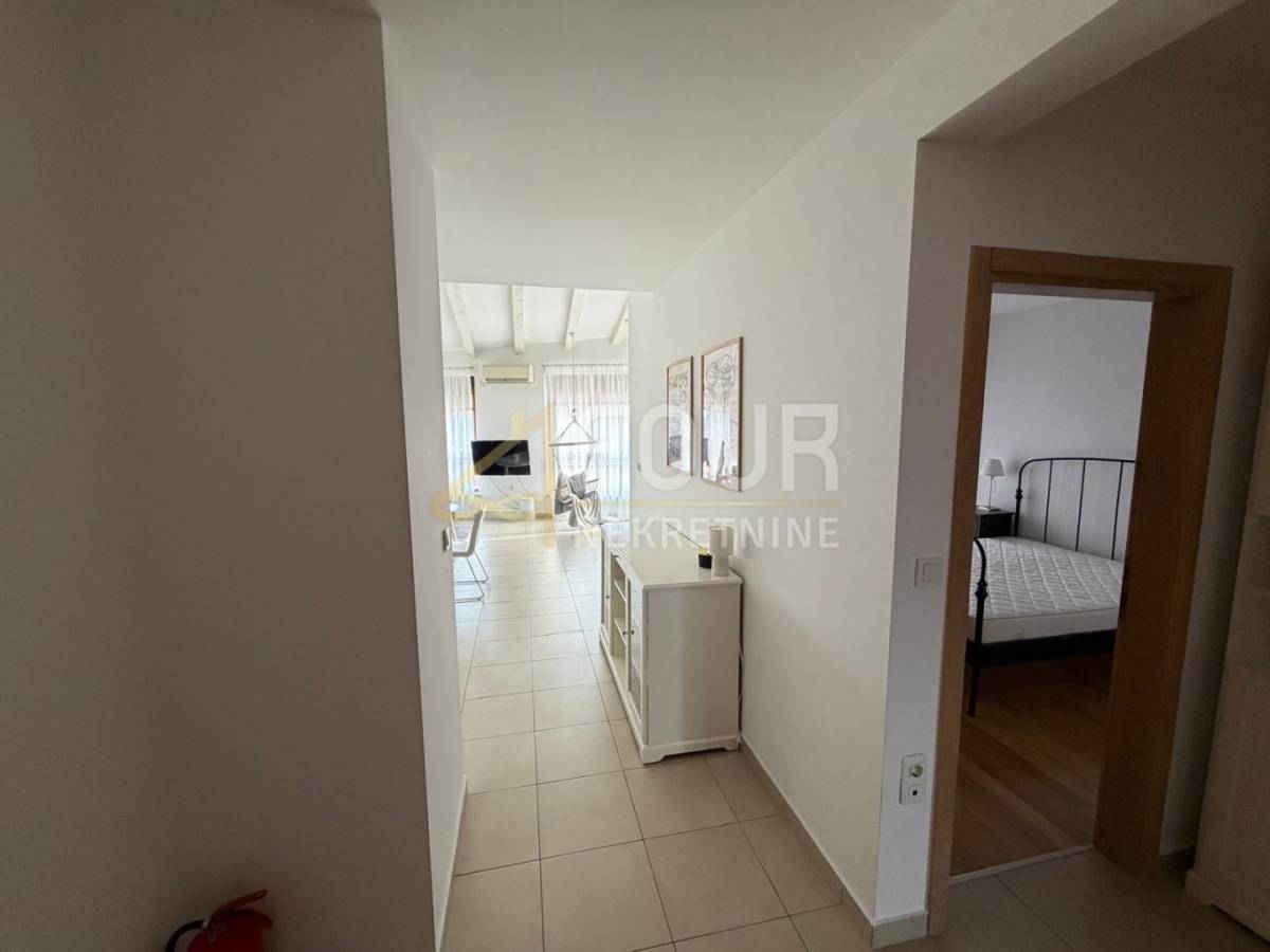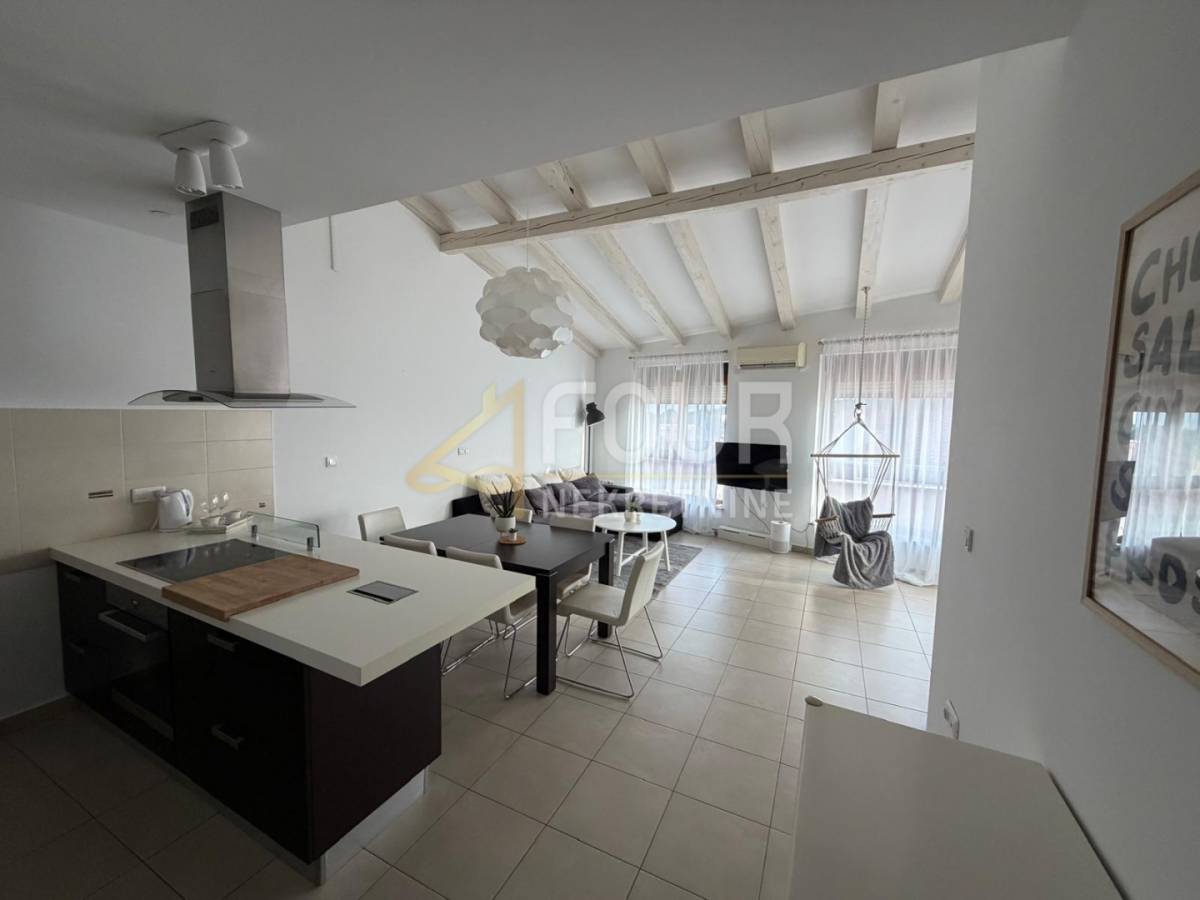 U Ližnjanu se iznajmljuje lijepa, potpuno namještena etaža stana smještena na drugom, ujedno i posljednjem katu zgrade novije gradnje. Stan odiše prozračnošću i dobrom organizacijom prostora: po ulasku se s desne strane nalaze dvije spavaće sobe, od kojih jedna ima vlastitu kupaonicu, dok je s lijeve strane smještena dodatna kupaonica. Centralni dio stana čini prostrani dnevni boravak povezan s kuhinjom i blagovaonicom, iz kojeg se izlazi na terasu s vrlo lijepim, otvorenim pogledom.