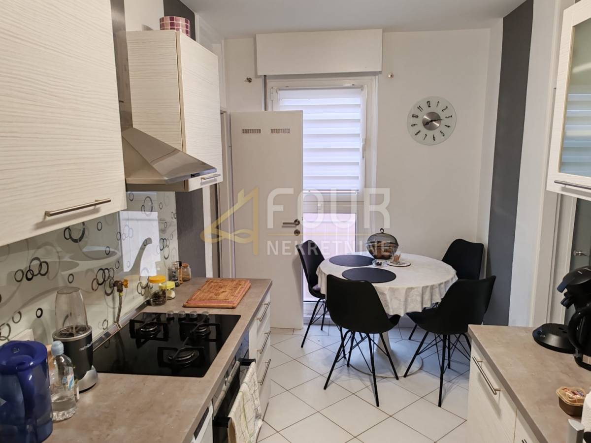 Adaptiran je 2022. godine i obuhvaća oko 60 m2 pažljivo uređenog prostora. Ulaz vodi u hodnik iz kojeg se dolazi do kupaonice te dvije spavaće sobe, od kojih jedna ima francuski balkon. Dnevni boravak pruža izlaz na zatvorenu lođu, dok kuhinja s blagovaonom također ima vlastiti francuski balkon. Opremljen je klimom i PVC stolarijom, a u okolici je dostupan besplatan javni parking.