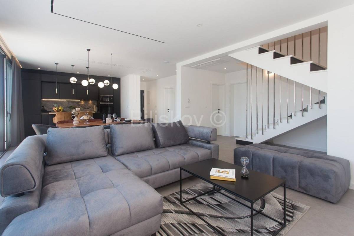 Na drugoj etaži nalaze se još dvije spavaće sobe, svaka ima svoje kupatilo te stepenice koje vode na terasu opremljene ležaljkama, idealna za nesmetane trenutke uživanja u suncu i pogledu na more.