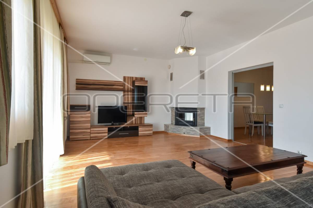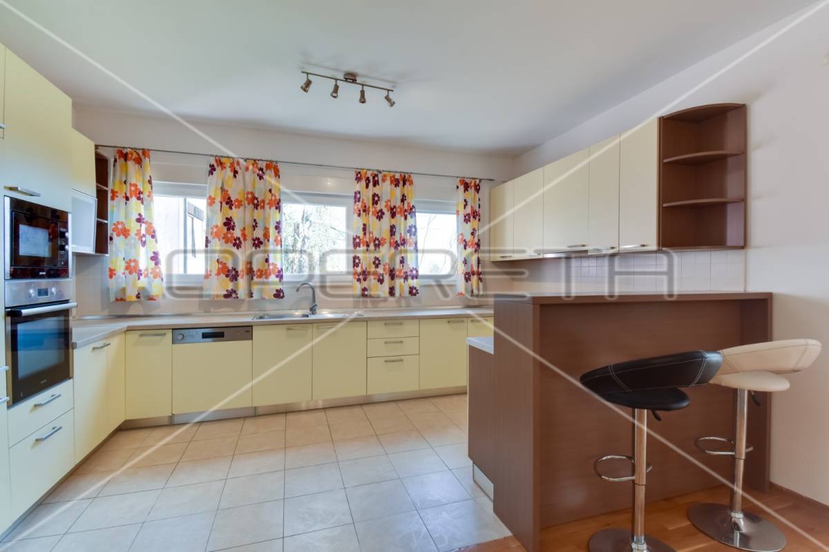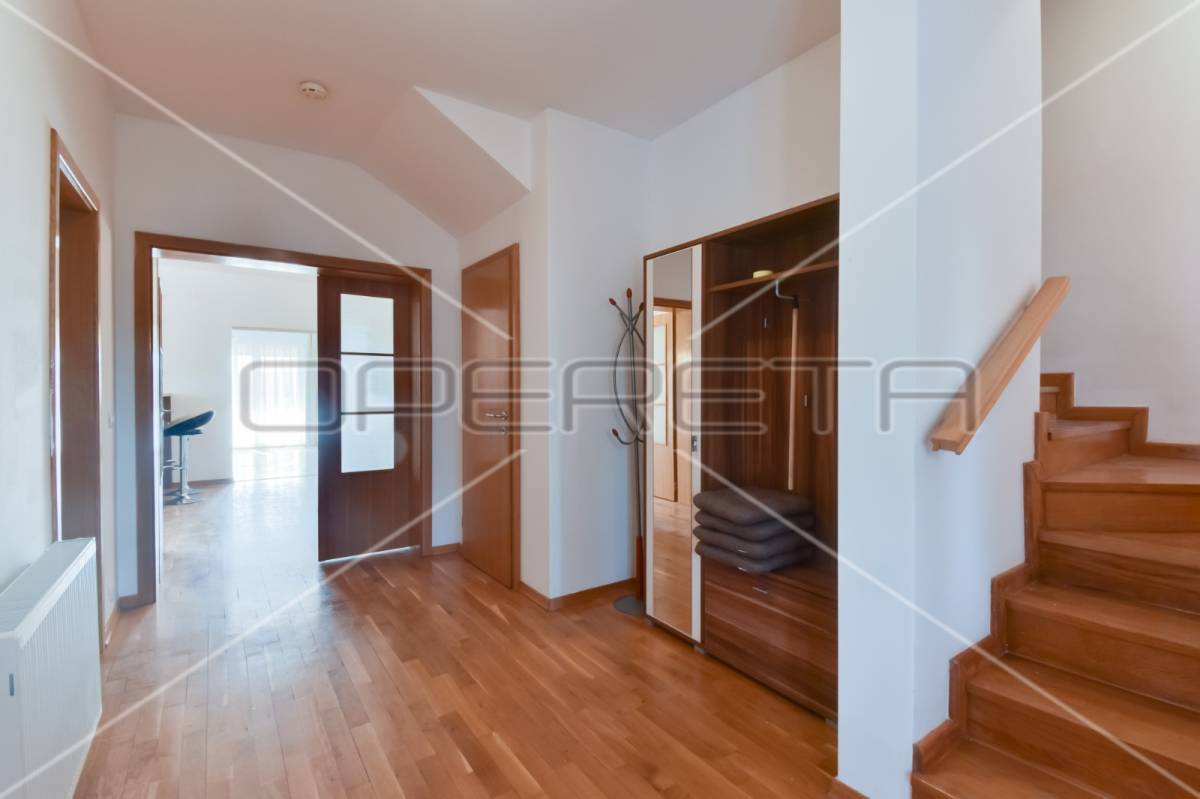 Iznajmljuje se prostrana, prekrasna kuća smještena na vrlo mirnoj i privatnoj lokaciji na zagrebačkom Maksimiru, u potpunosti okružena zelenilom i tišinom. Kuća, ukupne kvadrature 275 m2, smještena je na parceli od 1800 m2 sa bazenom i velikom terasom od 30 m2, a pripada joj i vrt od 700m2.