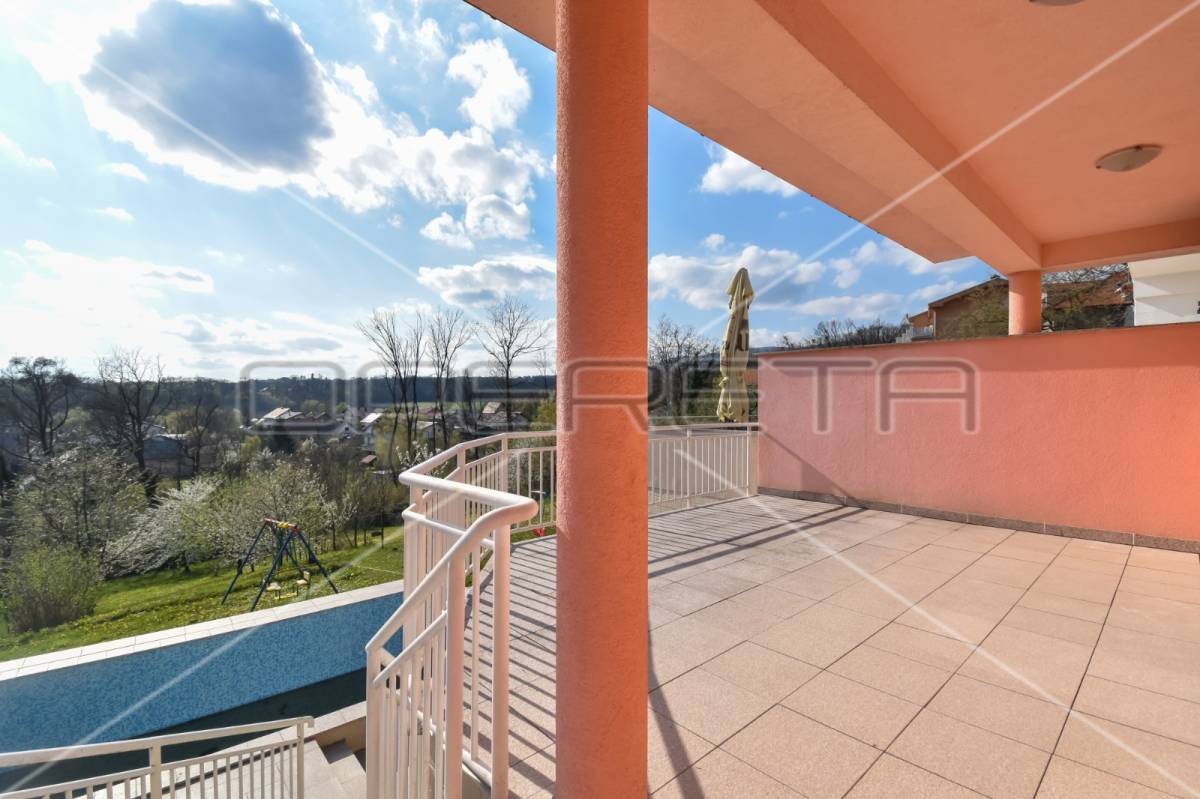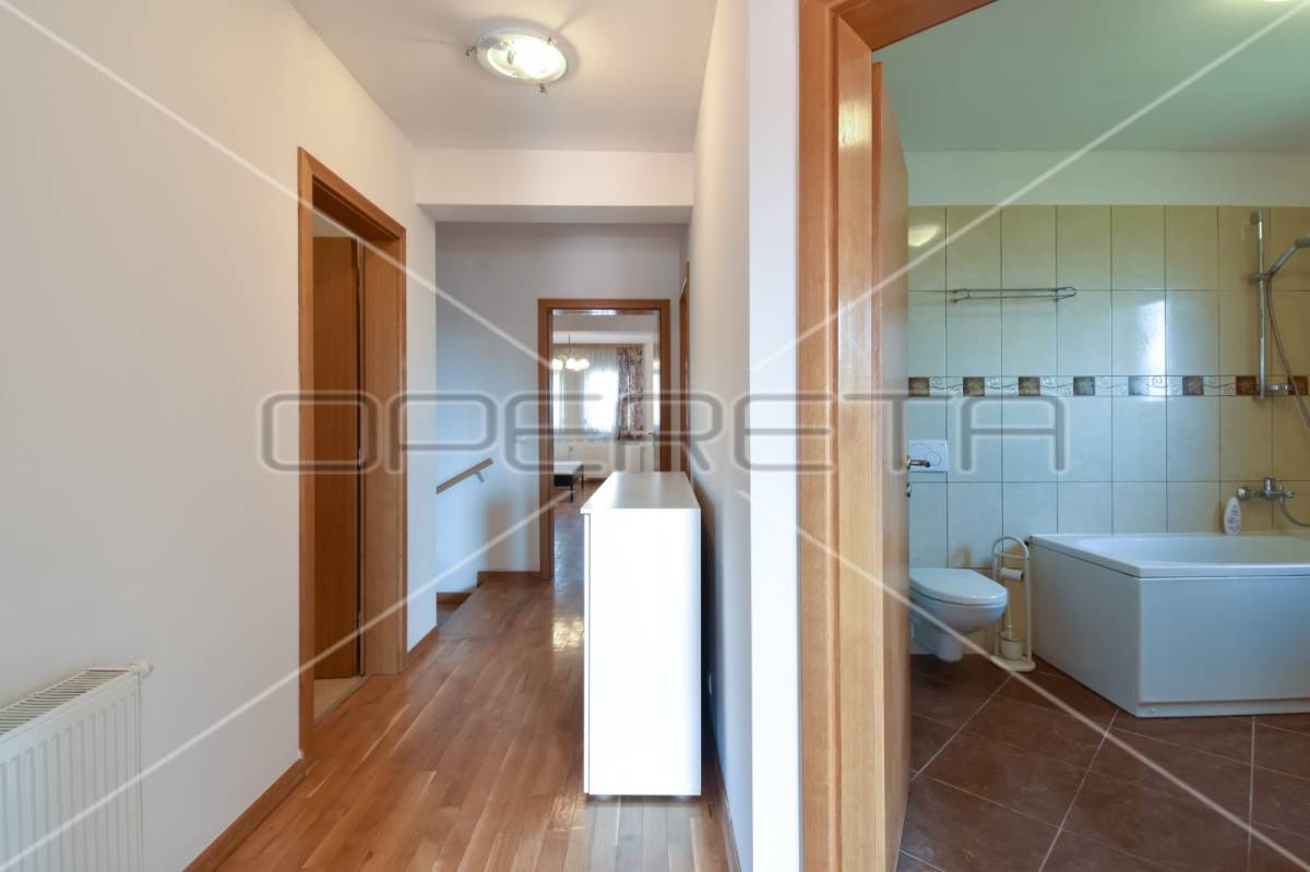 Na gornjoj etaži nalaze se 4 sobe te 2 kupaonice (jedna spavaća soba ima vlastitu kupaonicu).