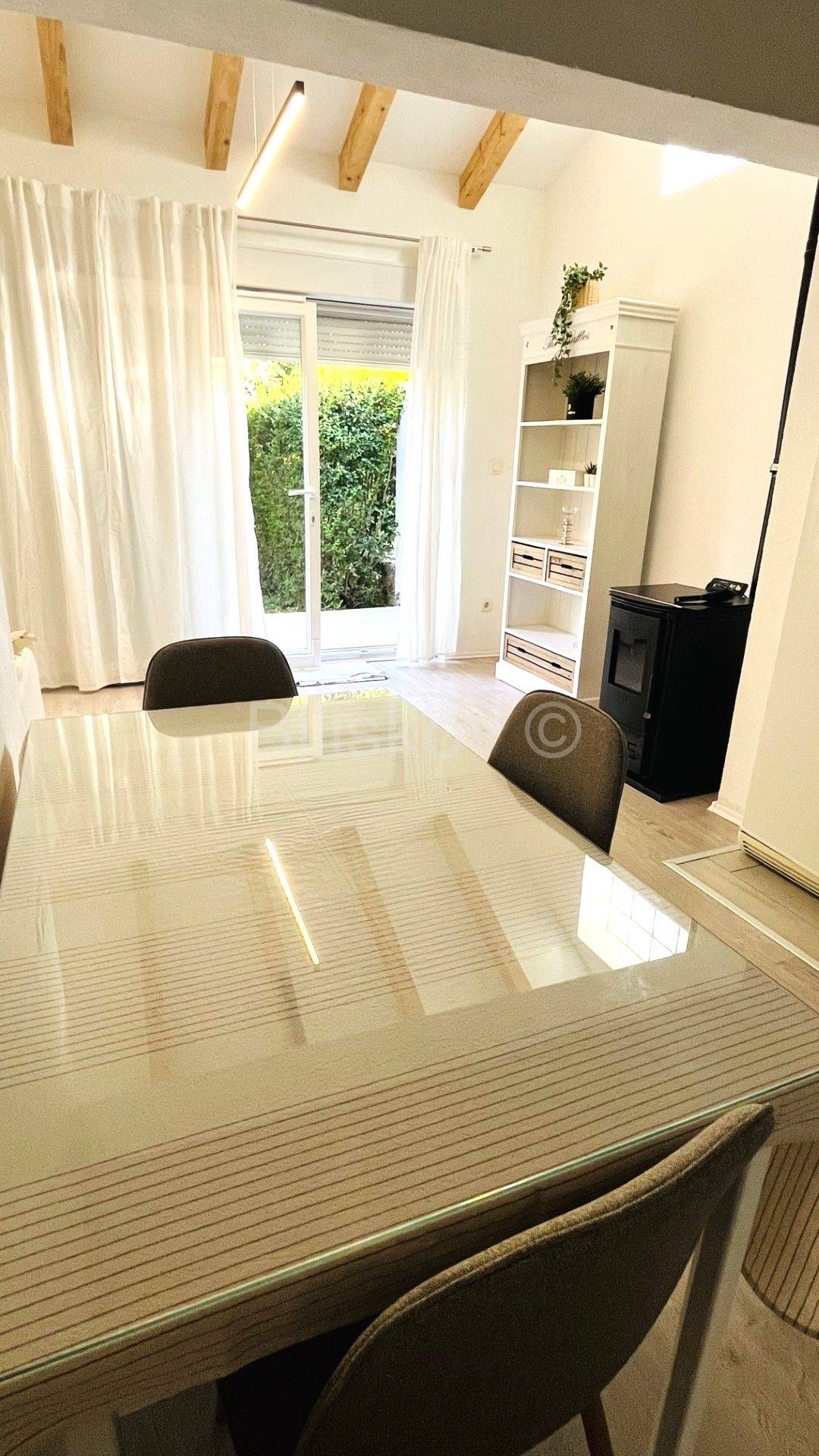 Terasa je okružena zelenilom, zaklonjena od pogleda te omogućava neometane trenutke opuštanja.
