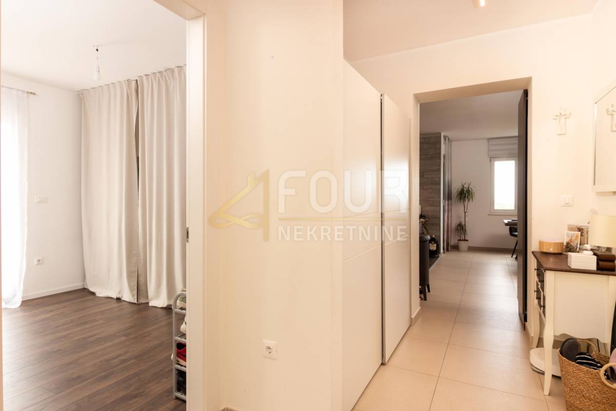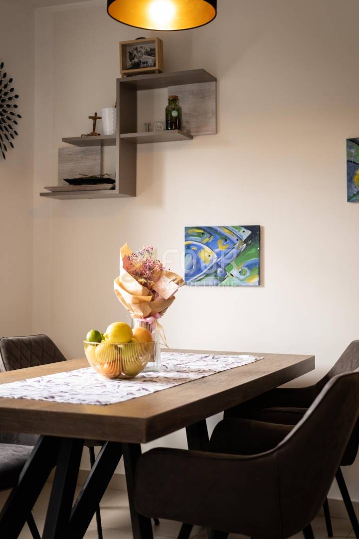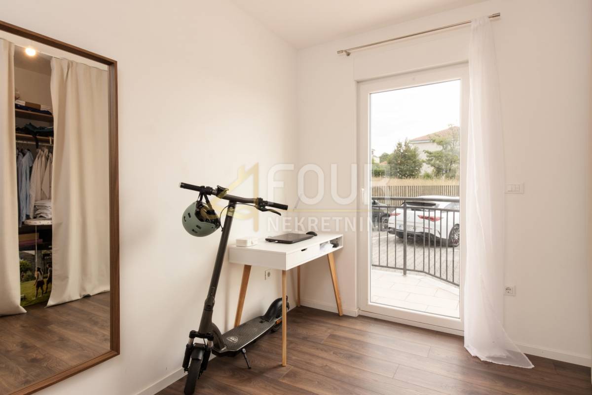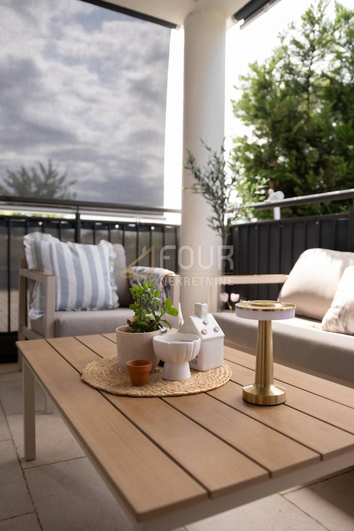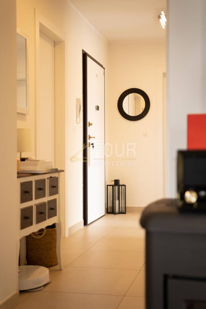 Sastoji se od hodnika, dvije komforne spavaće sobe sa zajedničkim balkonom, kupaonice s podnim grijanjem, ostave, kuhinje povezane s blagovaonicom i dnevnim boravkom, te izlazom na natkrivenu terasu s vertikalnim tendama koje osiguravaju dodatnu privatnost i zaštitu od sunca.