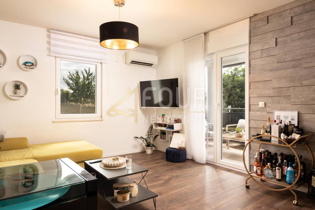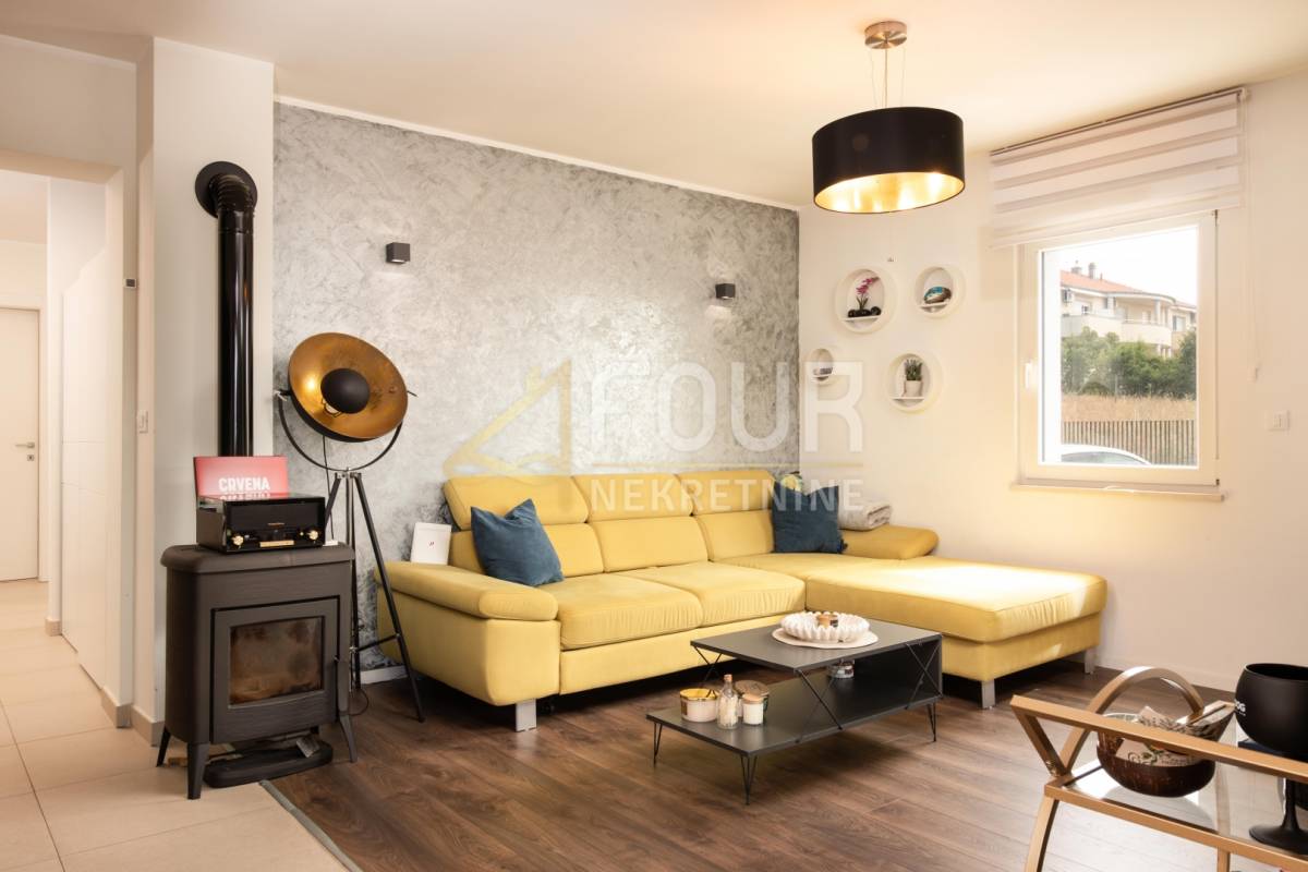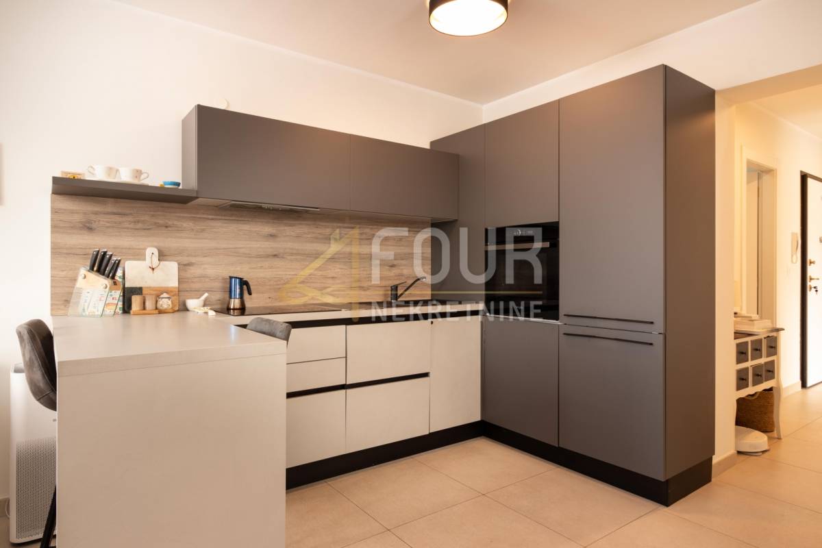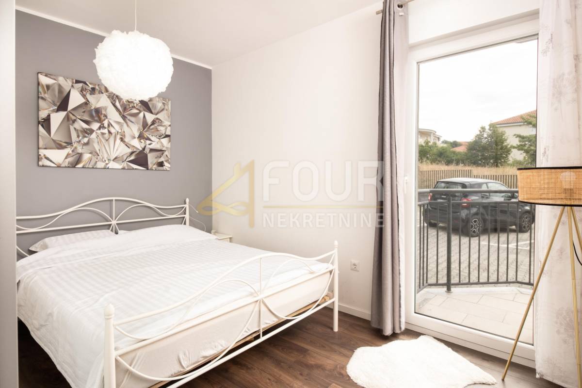Sastoji se od hodnika, dvije komforne spavaće sobe sa zajedničkim balkonom, kupaonice s podnim grijanjem, ostave, kuhinje povezane s blagovaonicom i dnevnim boravkom, te izlazom na natkrivenu terasu s vertikalnim tendama koje osiguravaju dodatnu privatnost i zaštitu od sunca.