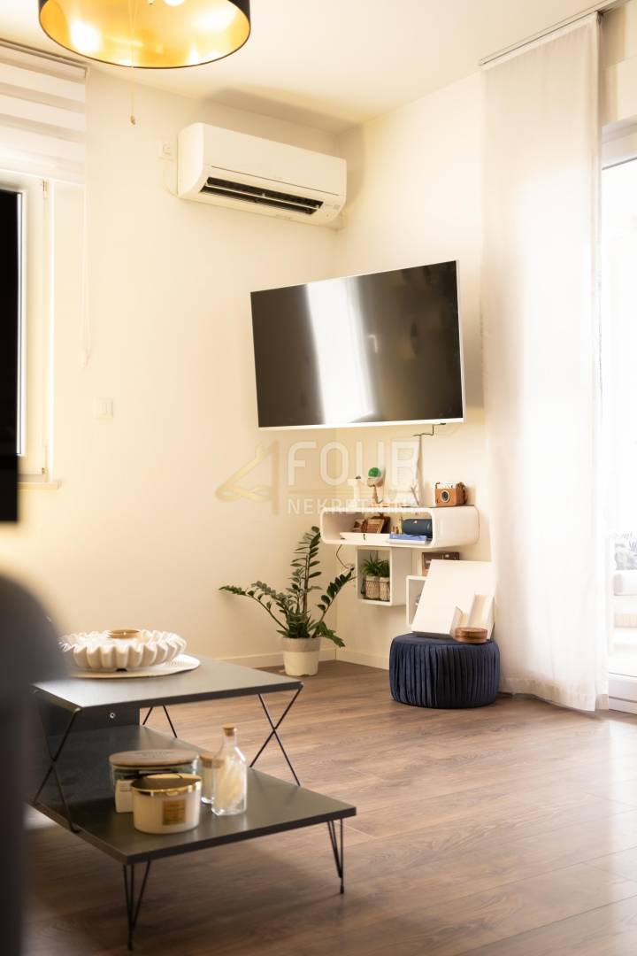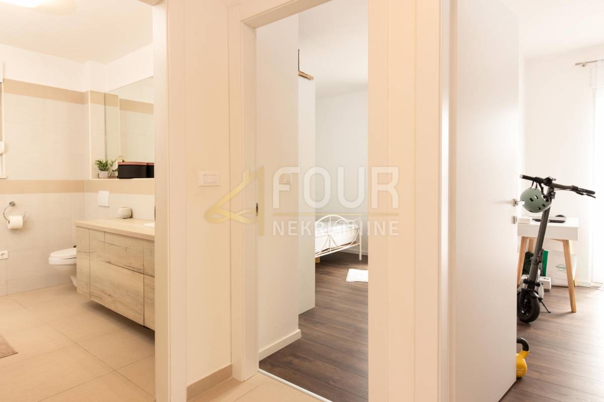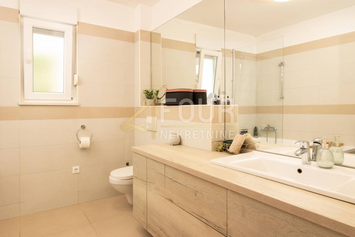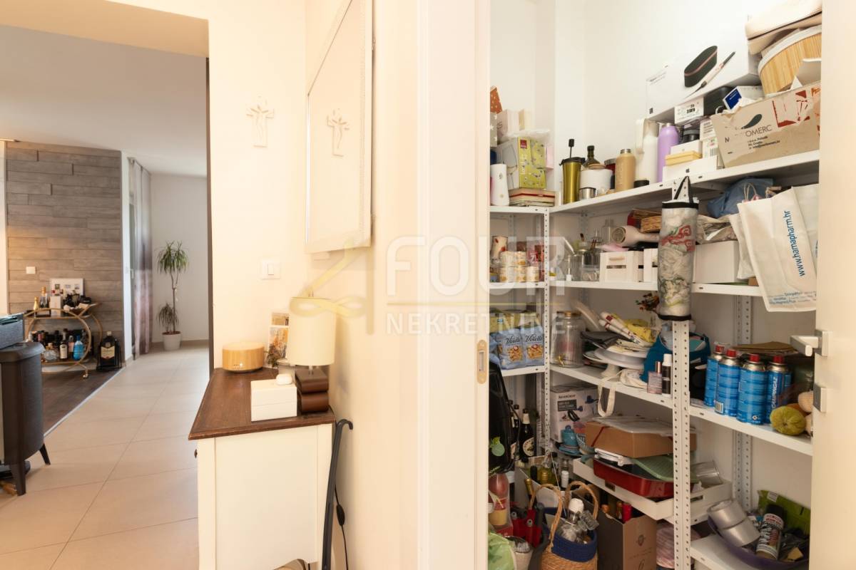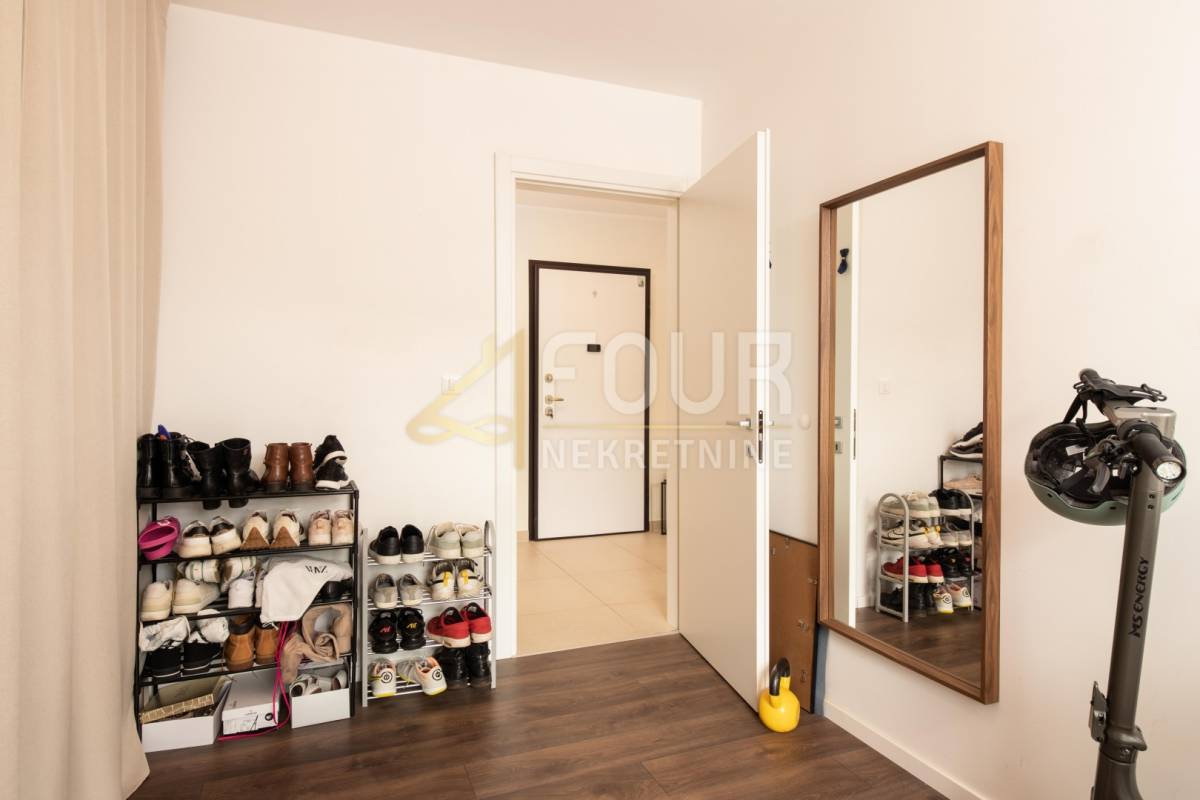 Sastoji se od hodnika, dvije komforne spavaće sobe sa zajedničkim balkonom, kupaonice s podnim grijanjem, ostave, kuhinje povezane s blagovaonicom i dnevnim boravkom, te izlazom na natkrivenu terasu s vertikalnim tendama koje osiguravaju dodatnu privatnost i zaštitu od sunca.