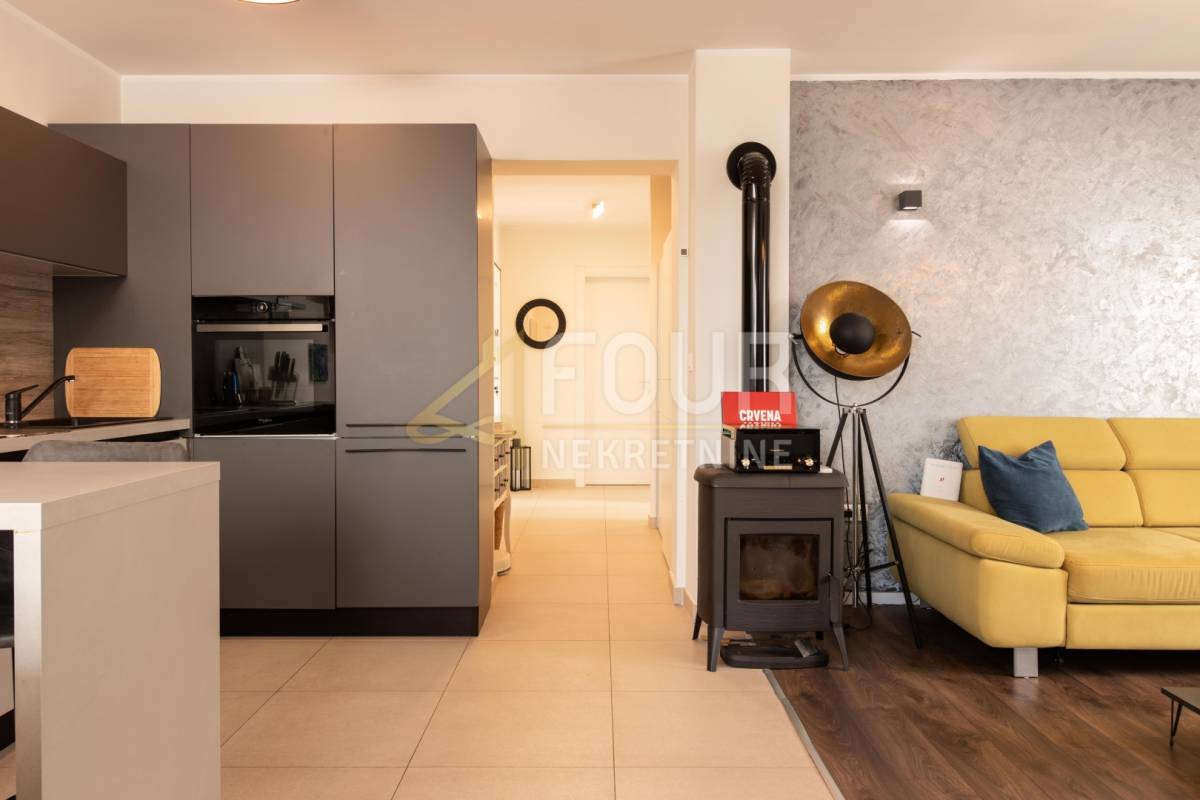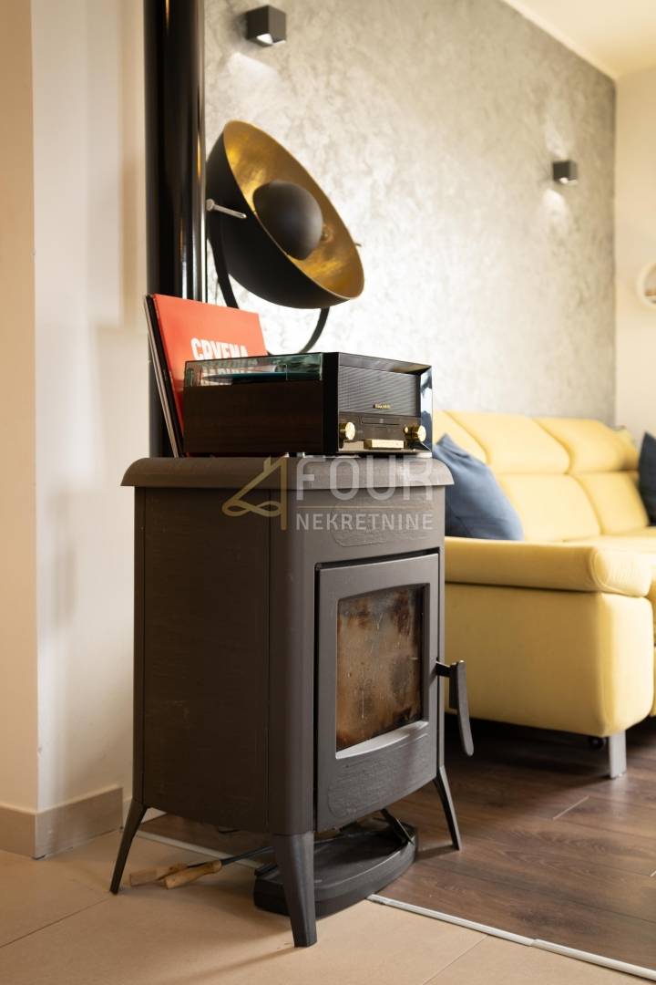U dnevnom boravku nalazi se peć na drva za dodatni ugođaj tijekom zimskih mjeseci, a ugrađen je i klima inverter uređaj za hlađenje i grijanje.