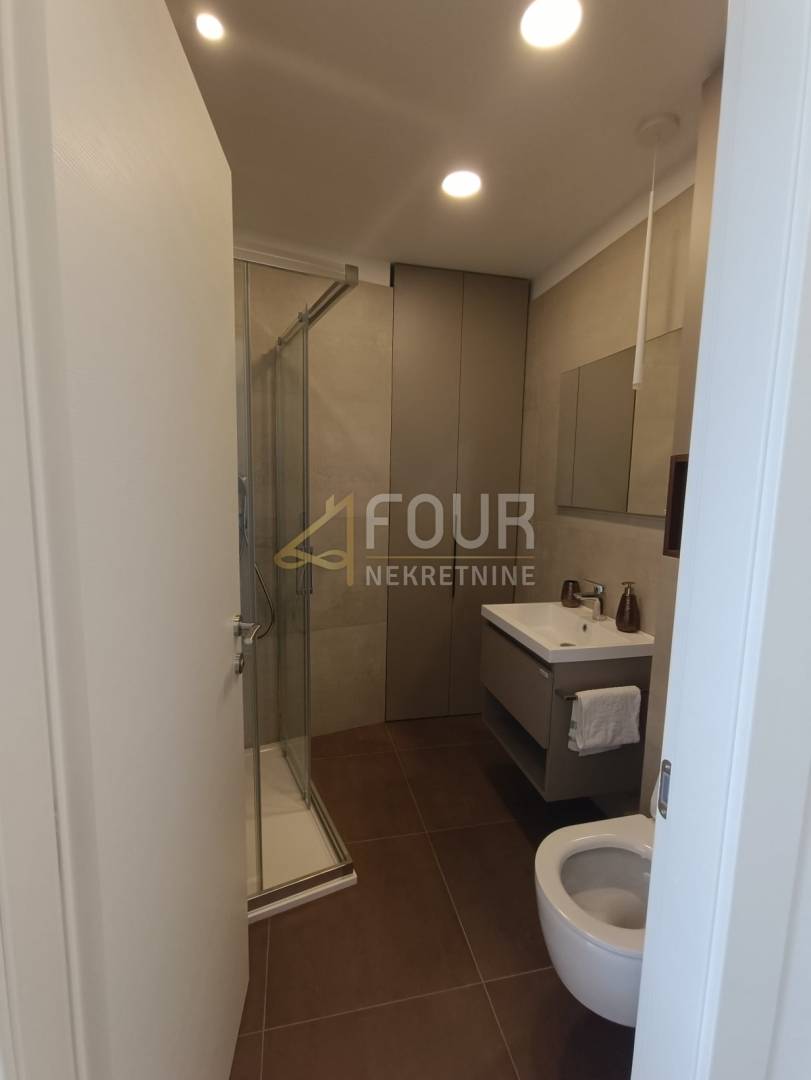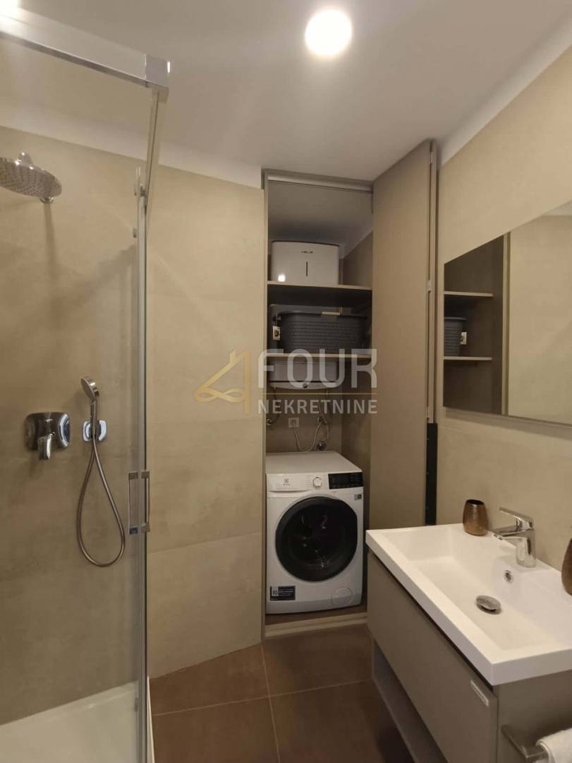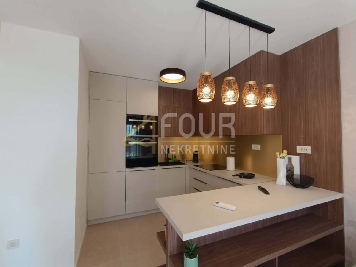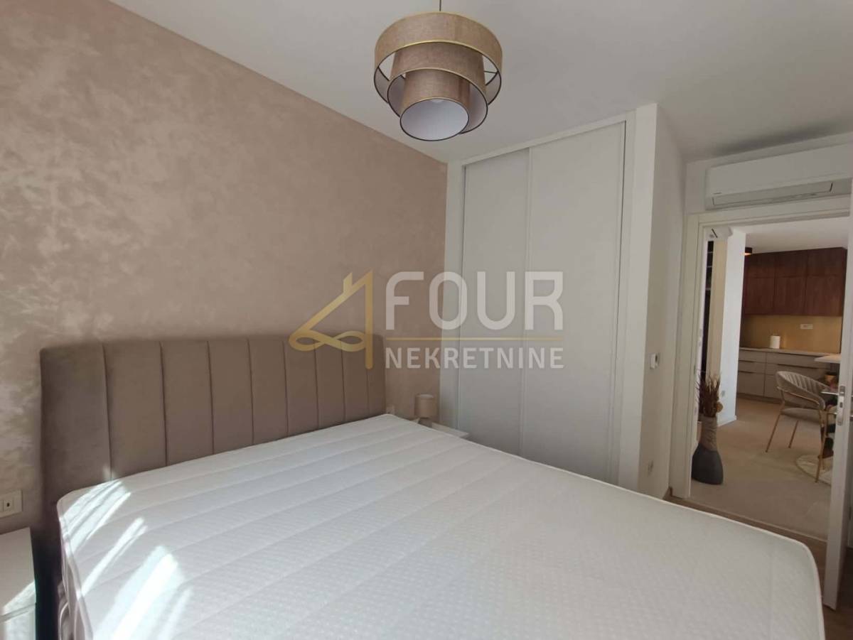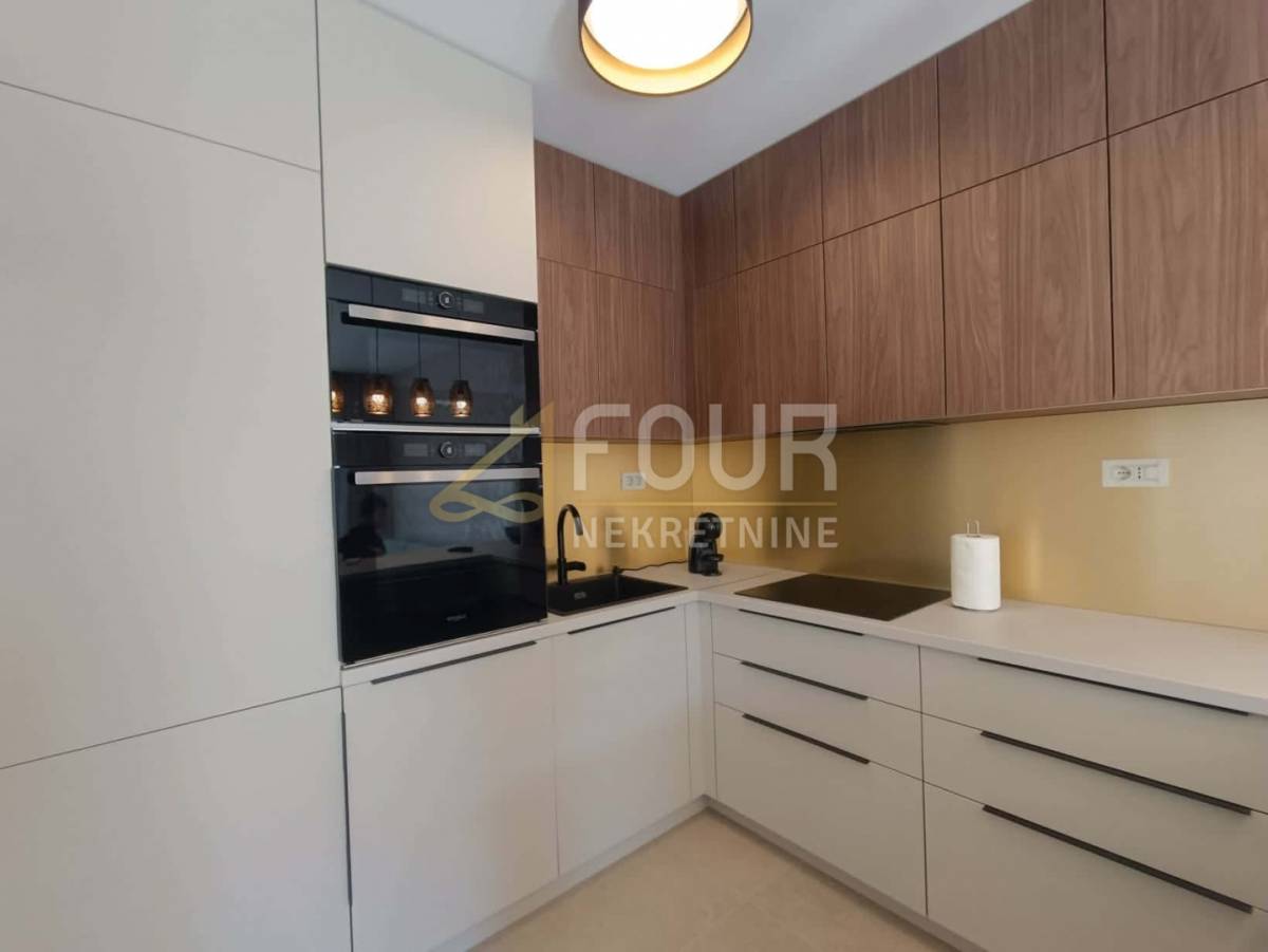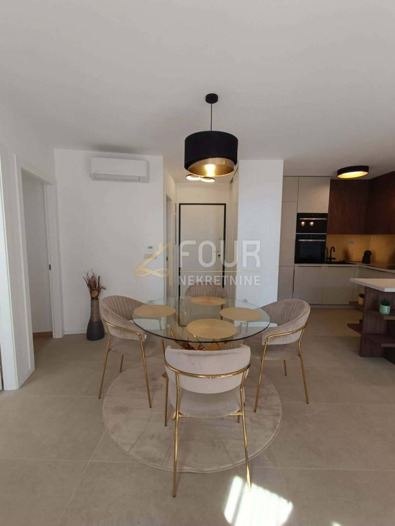 Riječ je o novogradnji u kojoj još nitko nije boravio, a stan je opremljen kvalitetnom opremom uključujući podno grijanje, klima uređaj, ALU stolariju, električne rolete i protuprovalna vrata. Interijer je moderno uređen i potpuno namješten, s uključenim kućanskim aparatima poput perilice i sušilice rublja, pećnice, mikrovalne pećnice, aparata za kavu, kao i kompletnim posuđem i posteljinom.