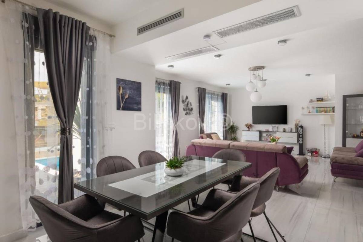 Na prvoj etaži nalazi se kuhinja s trpezarijom i prostranim dnevnim boravkom s izlazom na terasu s bazenom, prostorom za sunčanje.