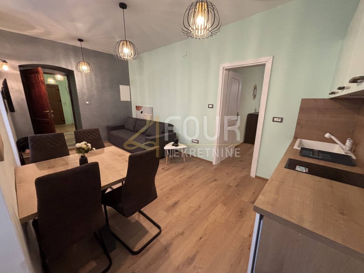 Dugoročno se iznajmljuje potpuno adaptiran i namješten jednosobni stan s dnevnim boravkom u strogom centru Rijeke, udaljen svega pedesetak metara od mora. Smješten je na trećem katu održavane zgrade, južne orijentacije, što mu osigurava puno svjetla tijekom cijelog dana.