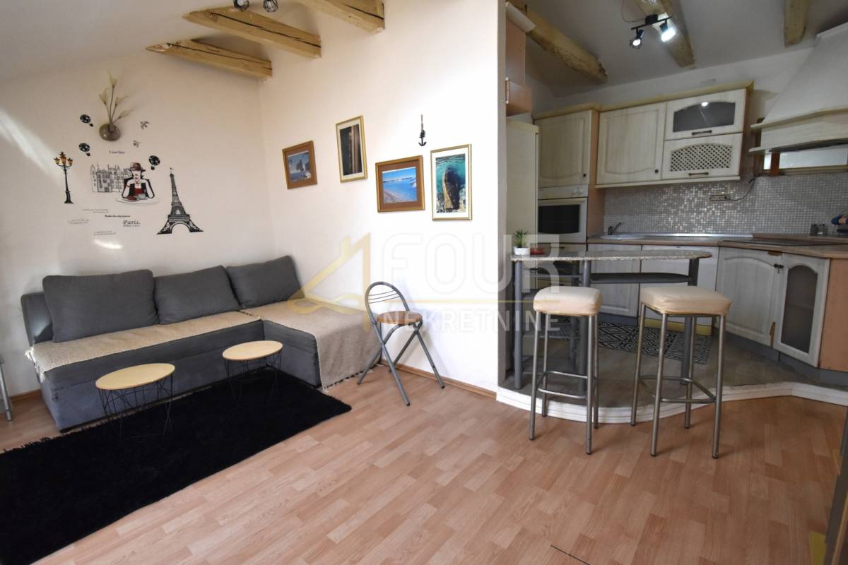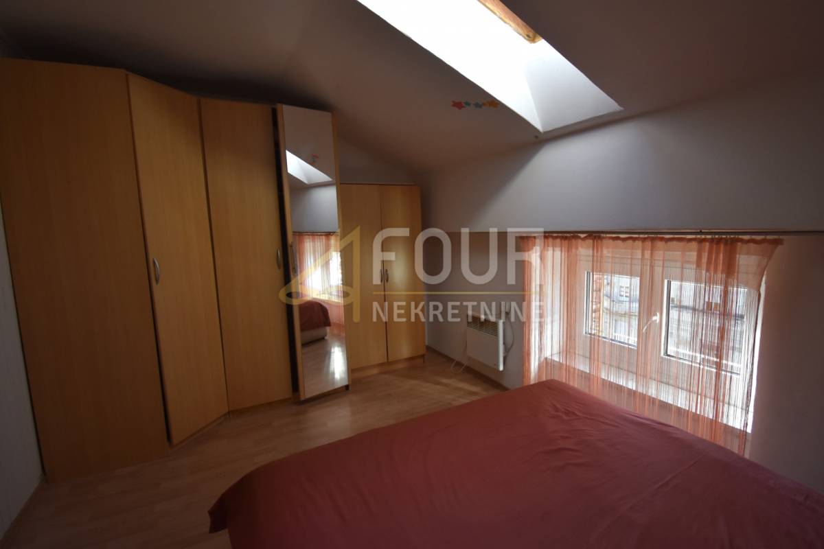 Iznajmljuje se potpuno opremljen i namješten stan u visokom potkrovlju zgrade, površine 47,41 m2.