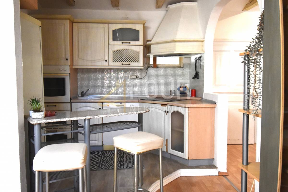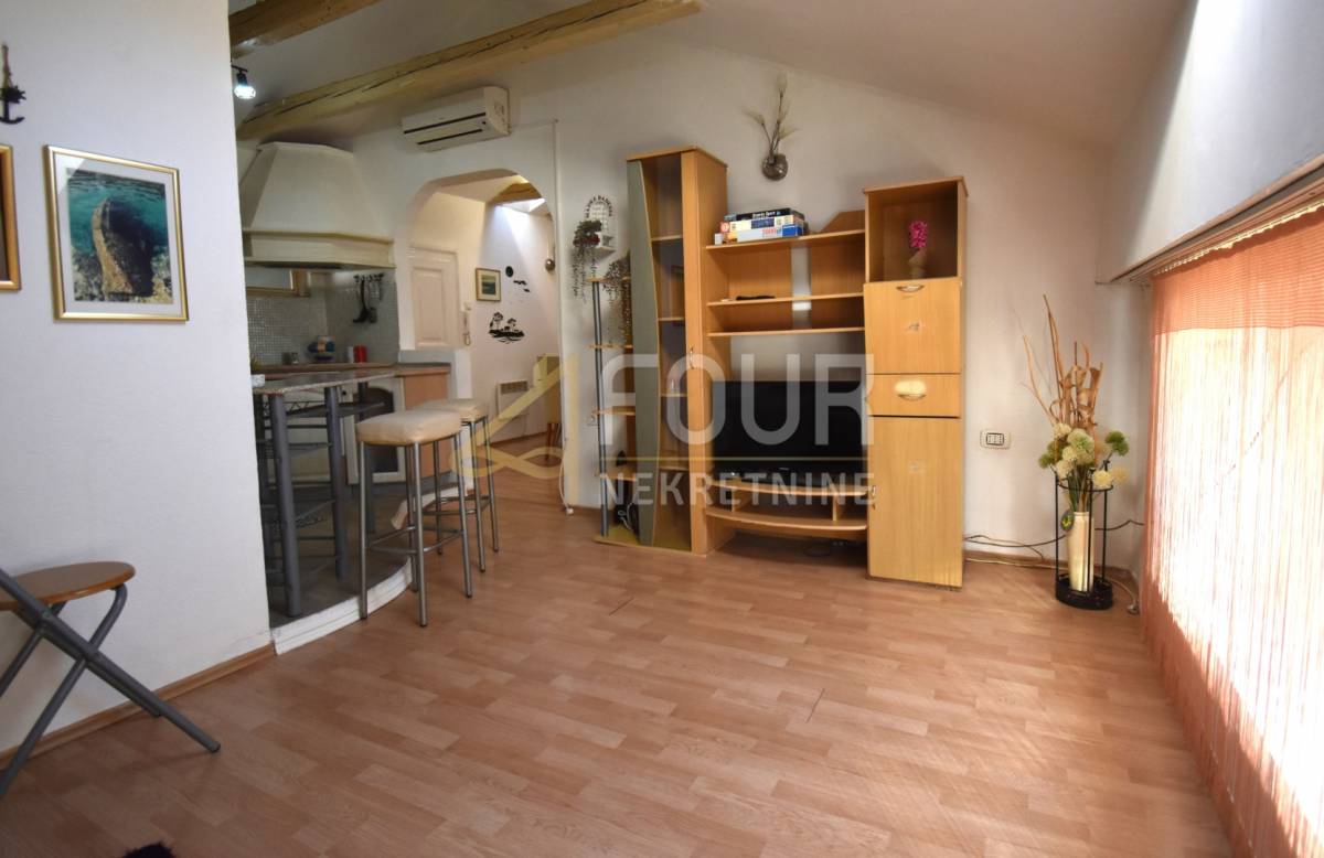 Prostor se sastoji od spavaće sobe s bračnim krevetom, kuhinje s blagovaonicom, dnevnog boravka i kupaonice. Iako je riječ o potkrovlju, većina prostora ima stajaću visinu i dobar osjećaj prozračnosti.