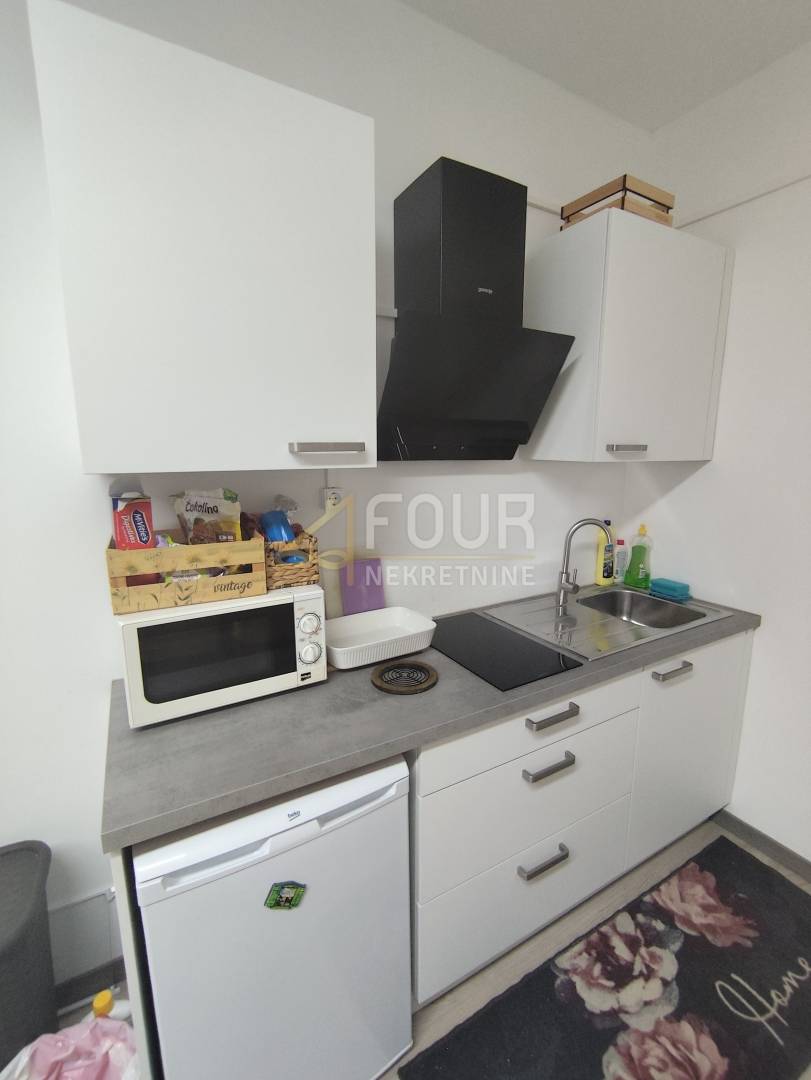 Iznajmljuje se adaptirana garsonijera površine 30 m2, smještena na trećem katu zgrade u samom srcu grada, s prekrasnim pogledom na Korzo. Potpuno je namještena i klimatizirana, opremljena PVC stolarijom te pruža ugodan prostor za život ili radni ured.