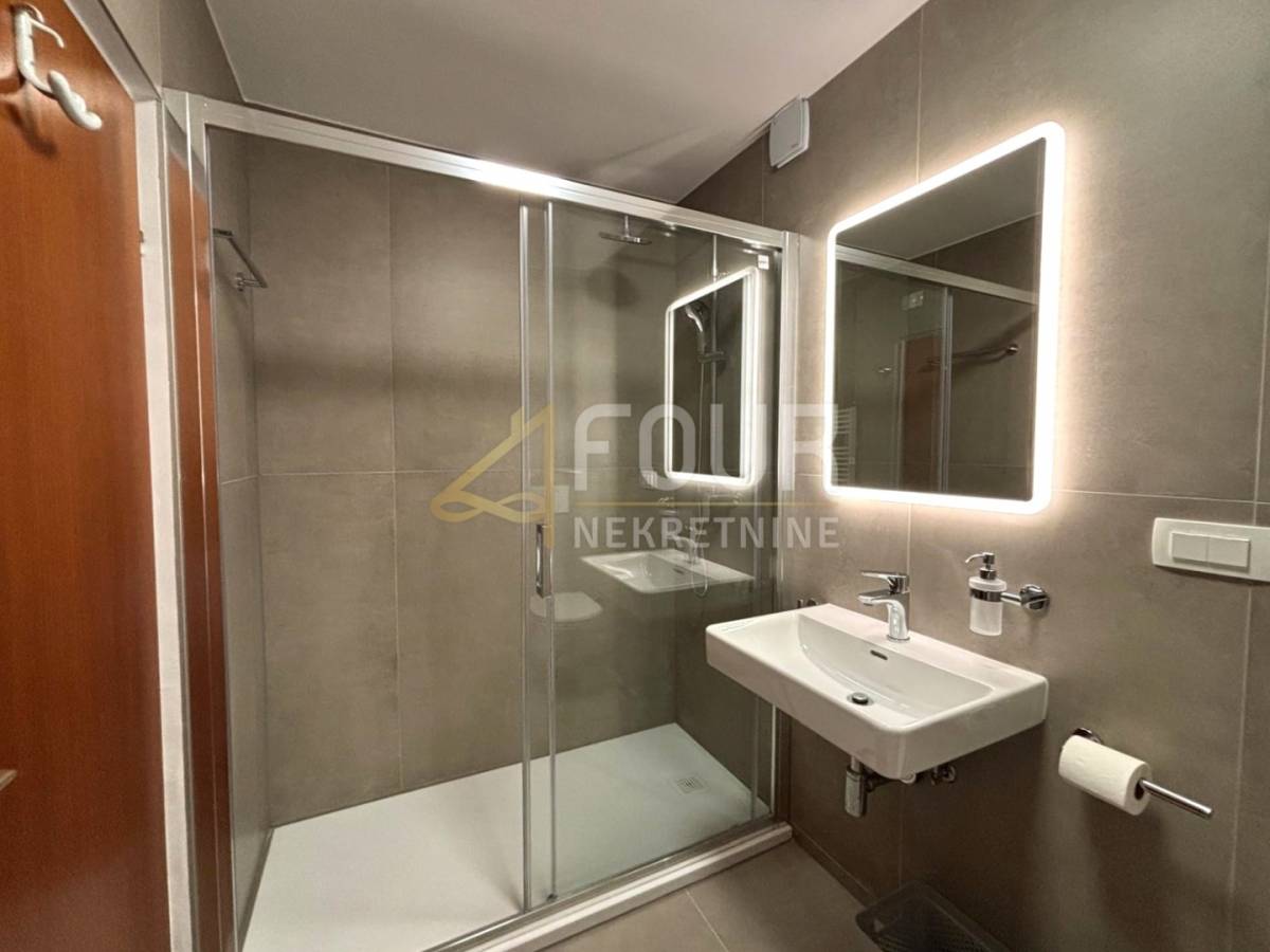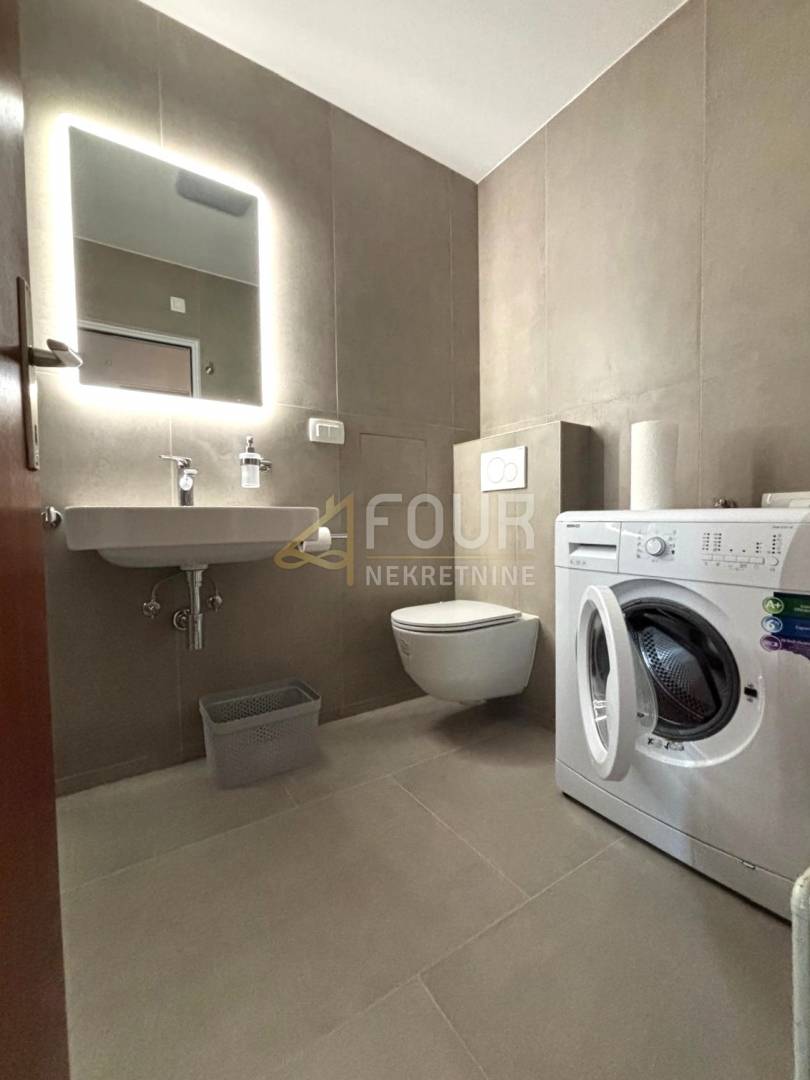 Iznajmljuje se stan površine 70m2, s funkcionalnim rasporedom 2s+db, koji uključuje dvije spavaće sobe, dnevni boravak, kuhinju, kupaonicu i balkon s kojeg se pruža pogled na more. Stan je adaptiran i opremljen za ugodan boravak.