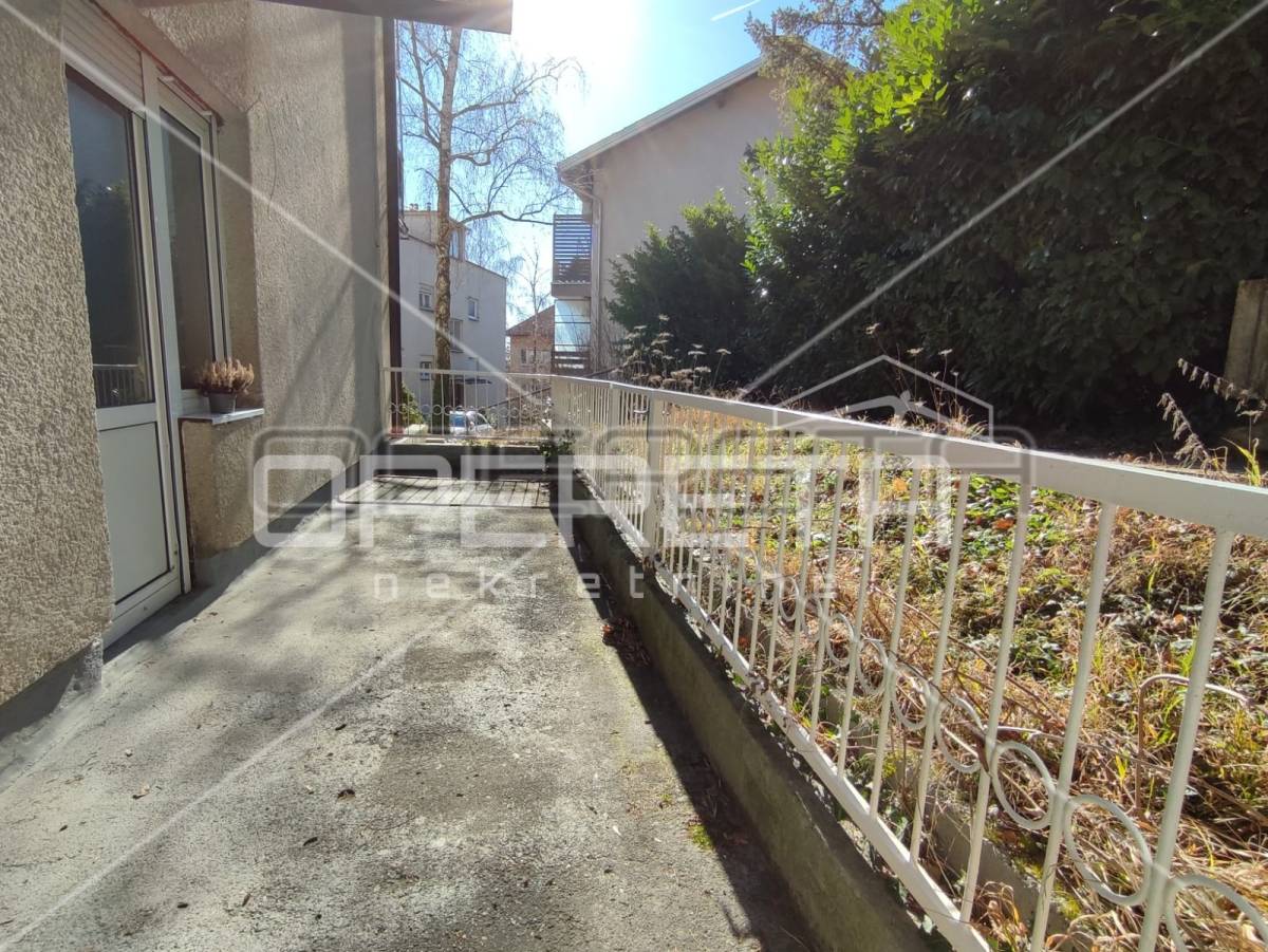 U visokom prizemlju, niti 300 metara od Britanskog trga iznajmljuje se stan koji se sastoji od hodnika, kupaonice s wc-om, kuhinje, dnevne sobe, spavaće sobe i terase. Mir, tišina i zelenilo u samom centru grada. Mogućnost ulaska - odmah.