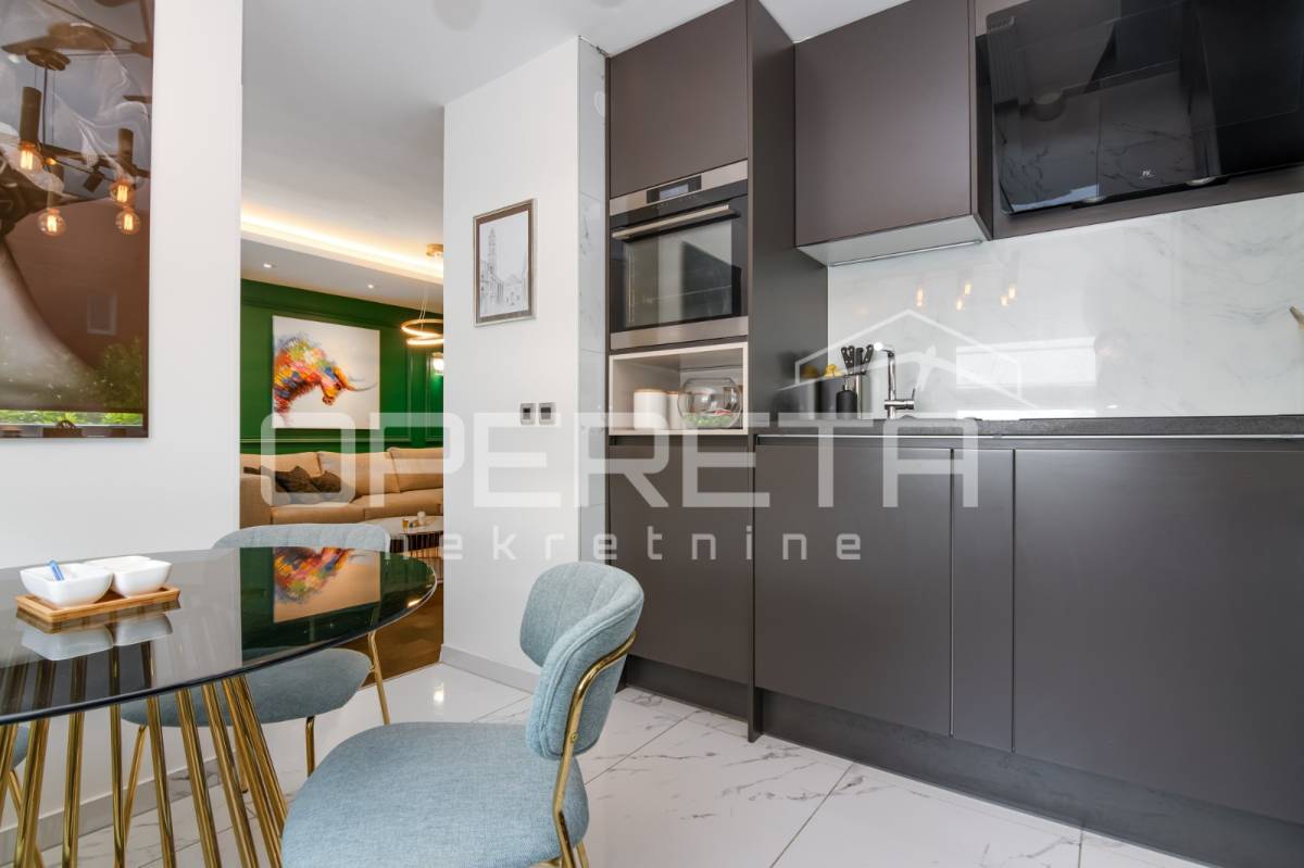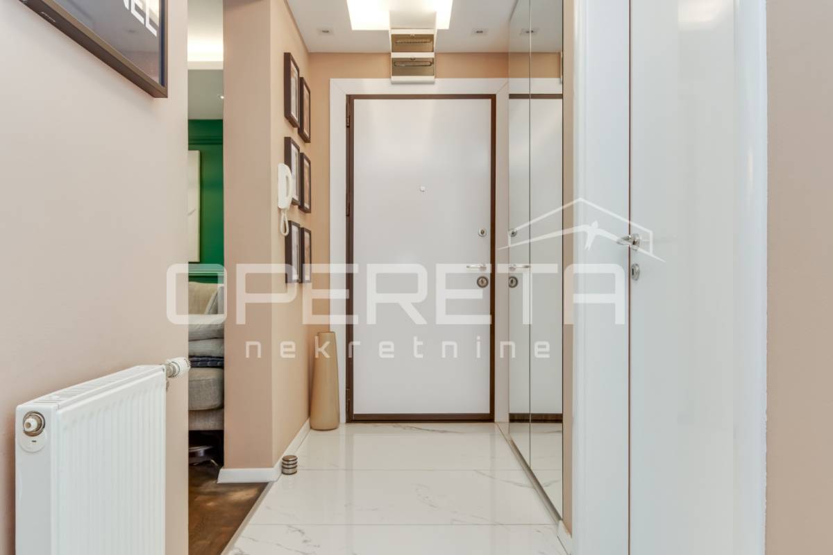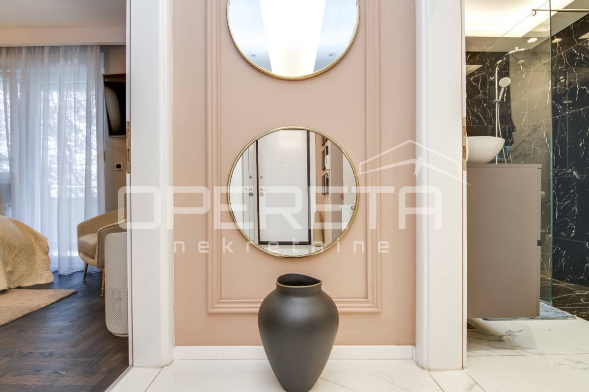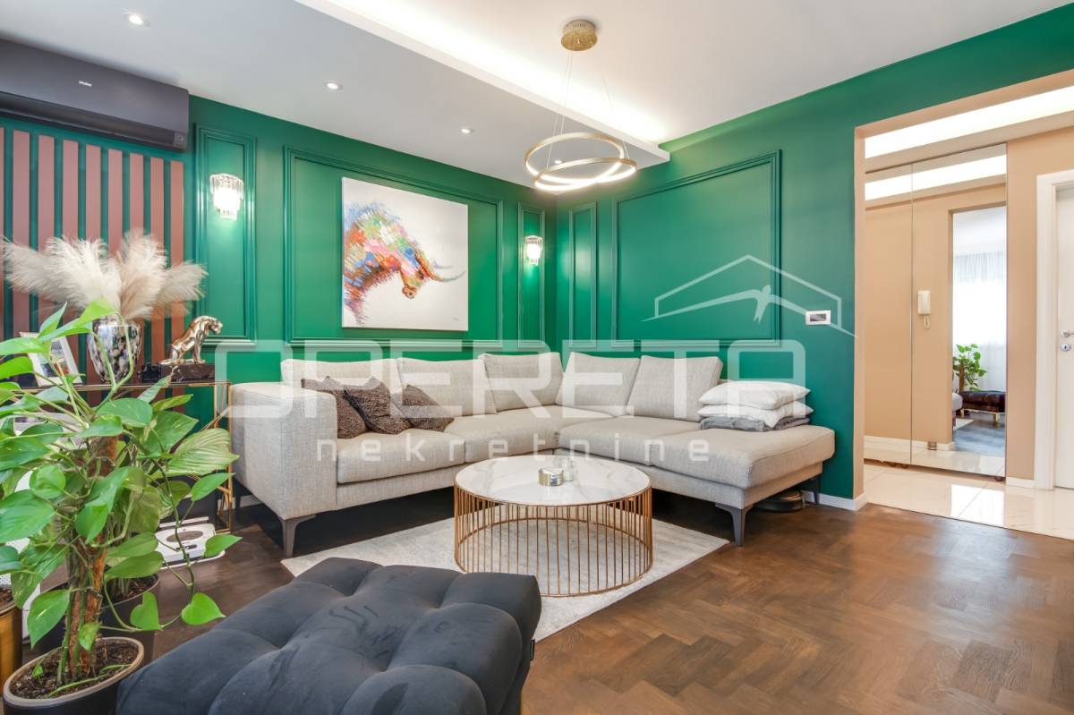 Luksuzan stan na 1.katu manje zgrade, u mirnoj i tihoj ulici. Sastoji se od hodnika, radne sobe, spavaće sobe s walk-in ormarom s izlazom na balkon, kupaonice te dnevnog boravka s kuhinjom i blagovaonicom s izlazom na balkon. Stan je kompletno namješten i opremljen s luksuznim namještajem, opremom i uređajima te prilikom renovacije stana prije par godina korišteni su kvalitetni materijali.
