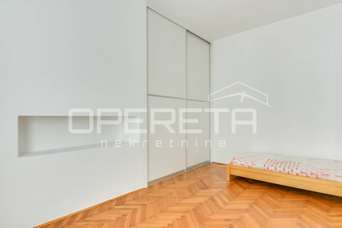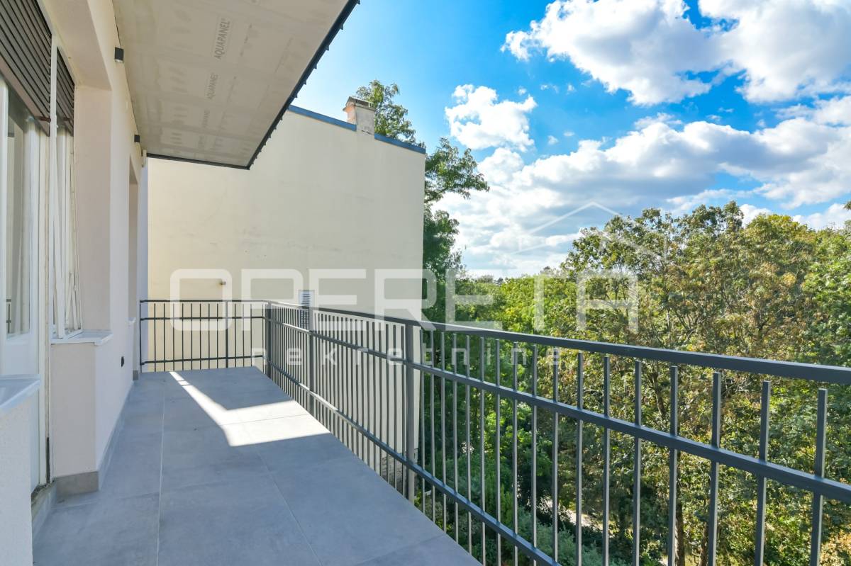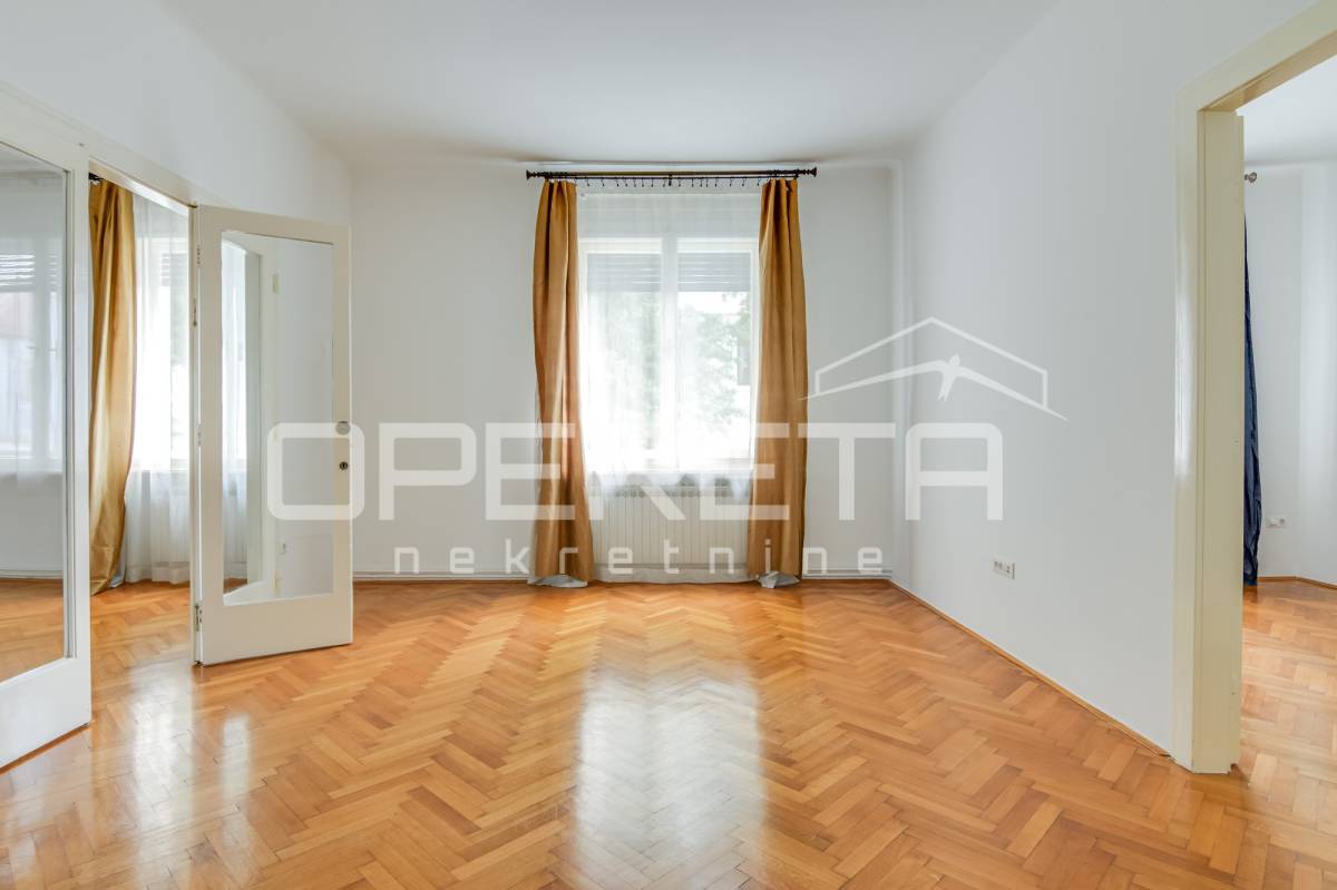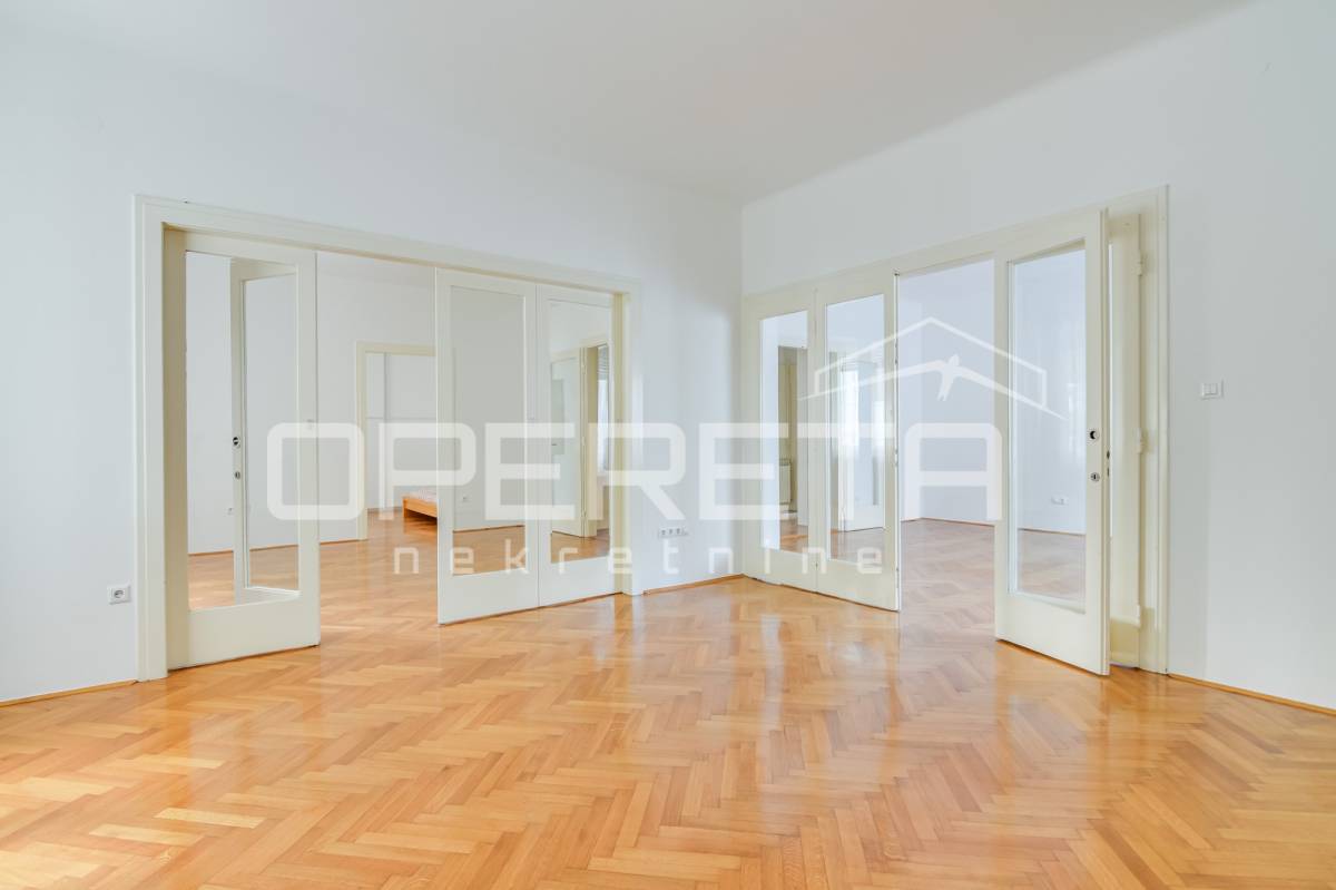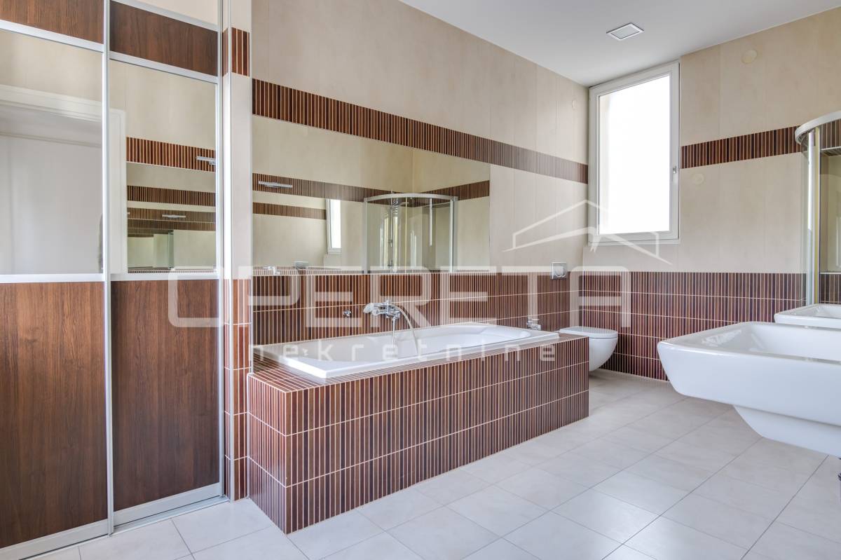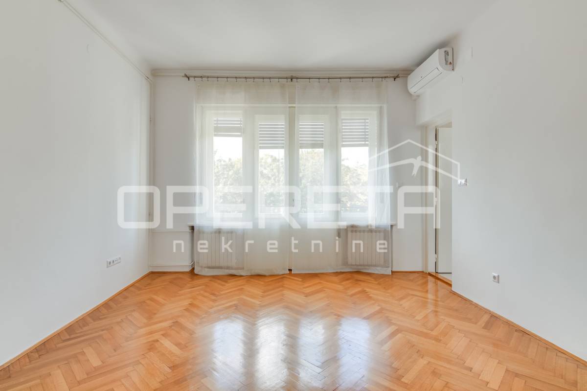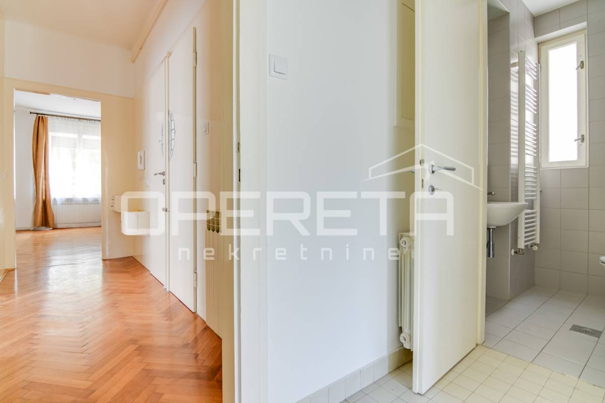 Elegantan, prostran, 5-soban građanski stan površine 160 m2 s odvojenom kuhinjom, spremištem, kotlovnicom, dvije kupaonice i balkonom s kojeg se pruža predivan pogled na Dubravkin put.